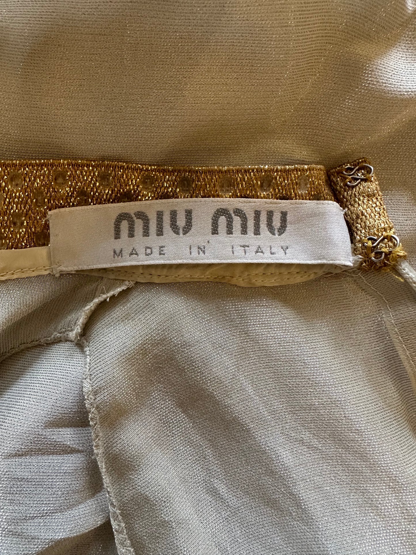 An absolutely, stunning Miu Miu dress from the S/S 2000 collection as seen on the runway! The rhinestone collar is gorgeous along with the sheen of the fabric. The item is a size 42 IT (10 UK) on the label, but would fit a size 8 UK better (seen here on a small 8 UK, 5 7"). In good condition, but there are a couple of small things, so please refer to the last set of images. All crystals are intact!