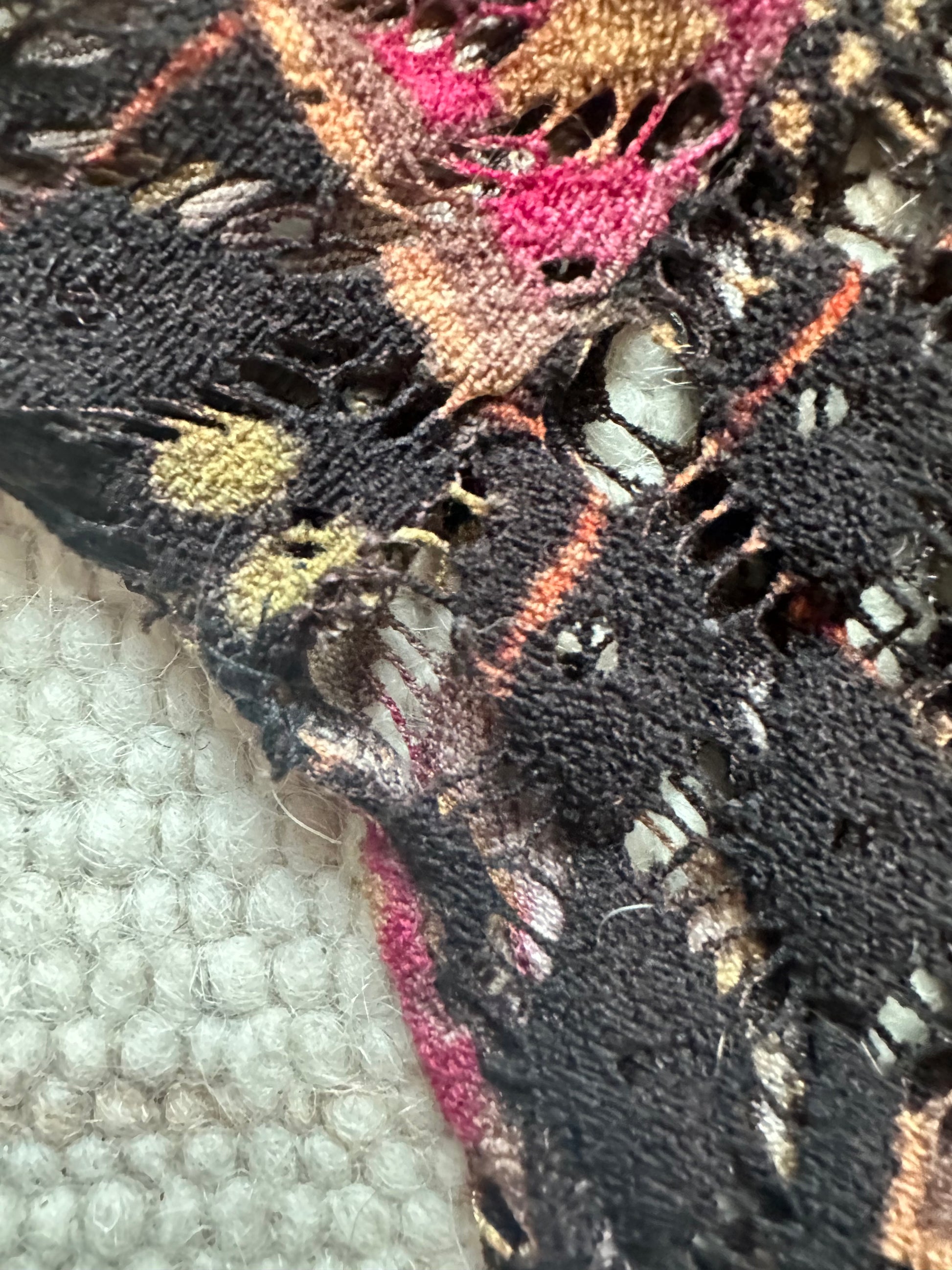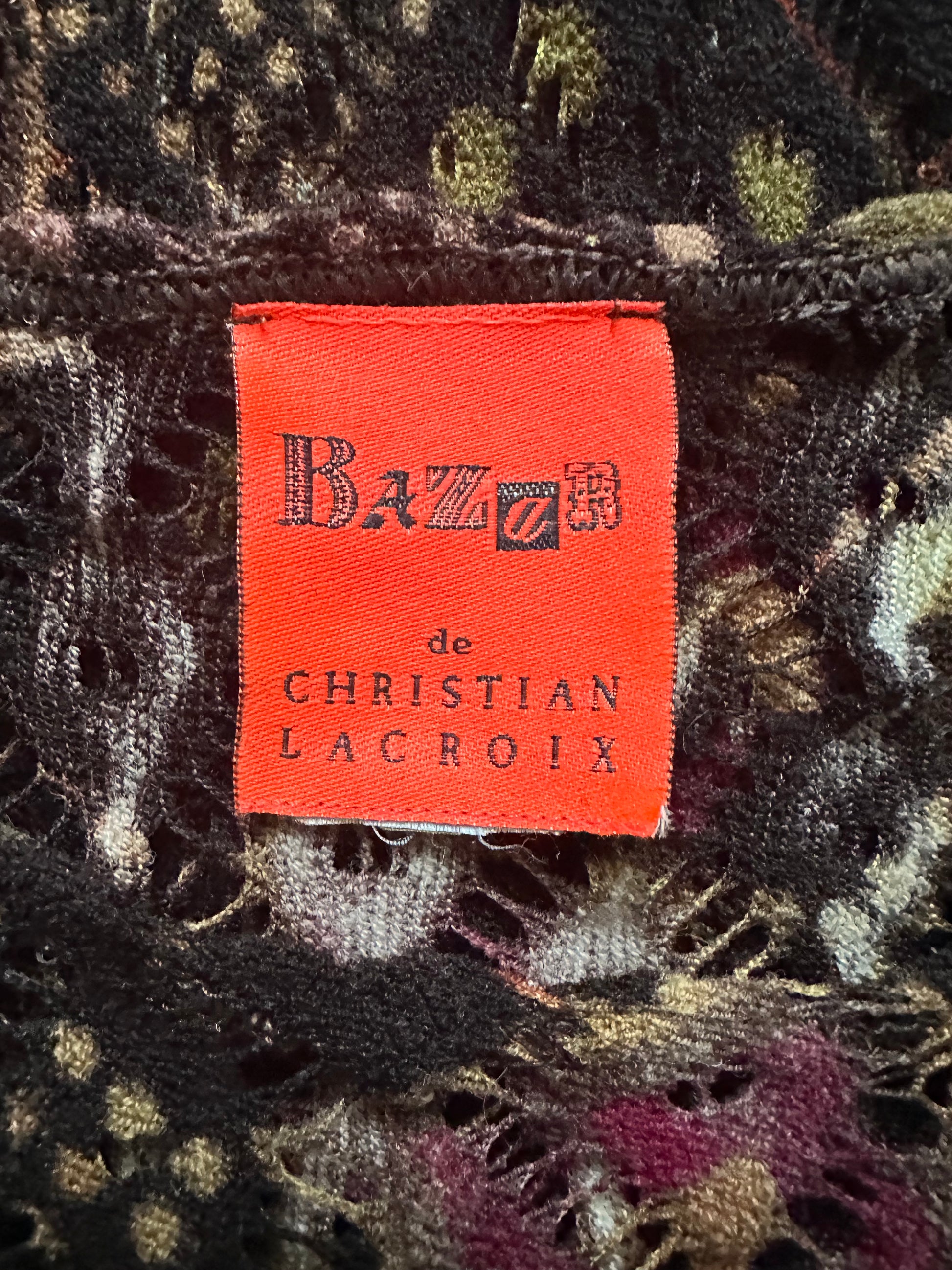 A gorgeous Christian Lacroix Bazar top with an open-knit design from the F/W 1996 Ready to Wear collection. The item is missing the fabric and size labels, but it would best fit a size S-M and there is also some stretch to the piece. The item has been pictured here on a size 40 IT, 5 7". The piece is in good condition apart from one of the holes in the armpit having got slightly bigger.