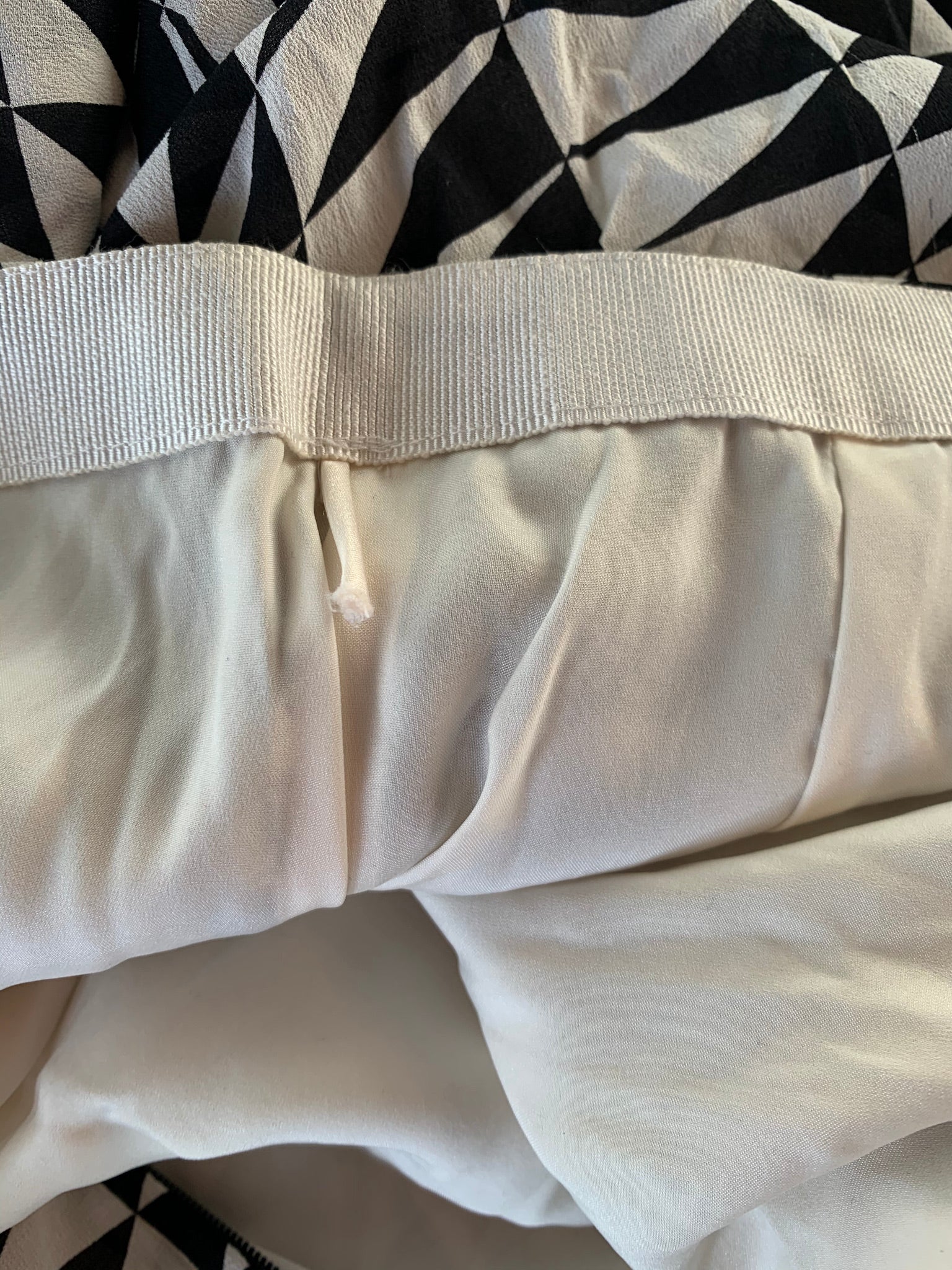Size 42 IT on label, it has been pictured here on a size 8 UK, 5 7". Please refer to the measurements below for more accuracy. There are a few tiny flaws, the clasp at the top of the zipper (separate from it though) has lost its hoop, another could easily be added. On one side, the hanger strap has come off and there are a couple of minuscule catches to the fabric. All of these have been pictured.