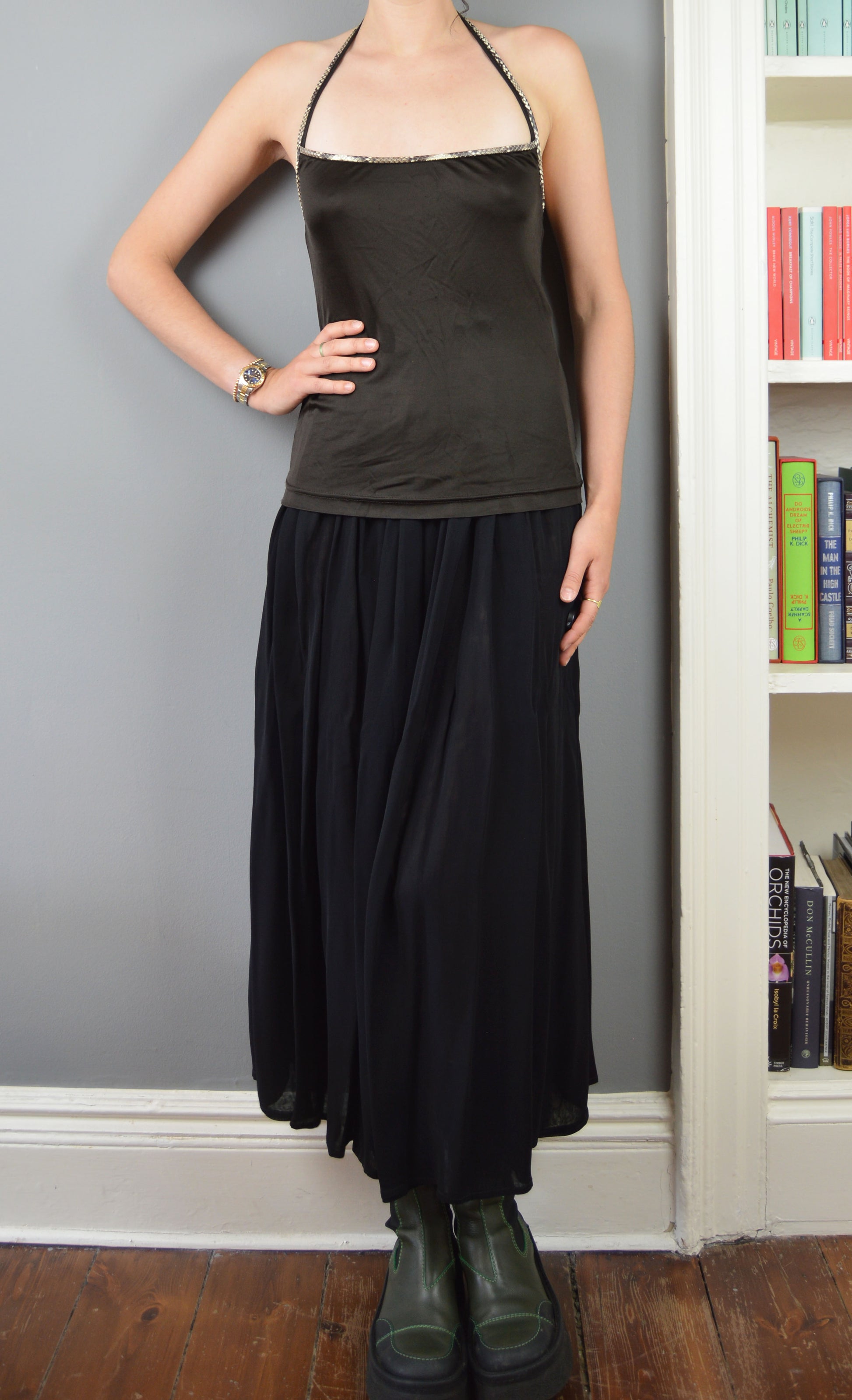 A funky top, perfect for the upcoming summer from the Dolce & Gabbana S/S 2005 runway collection. The size on the label is a 38 IT (6 UK) and it has been pictured here on a size 6/8 UK. The item has one very small snag, barely visible and a stain on the front, which should come out with dry cleaning.