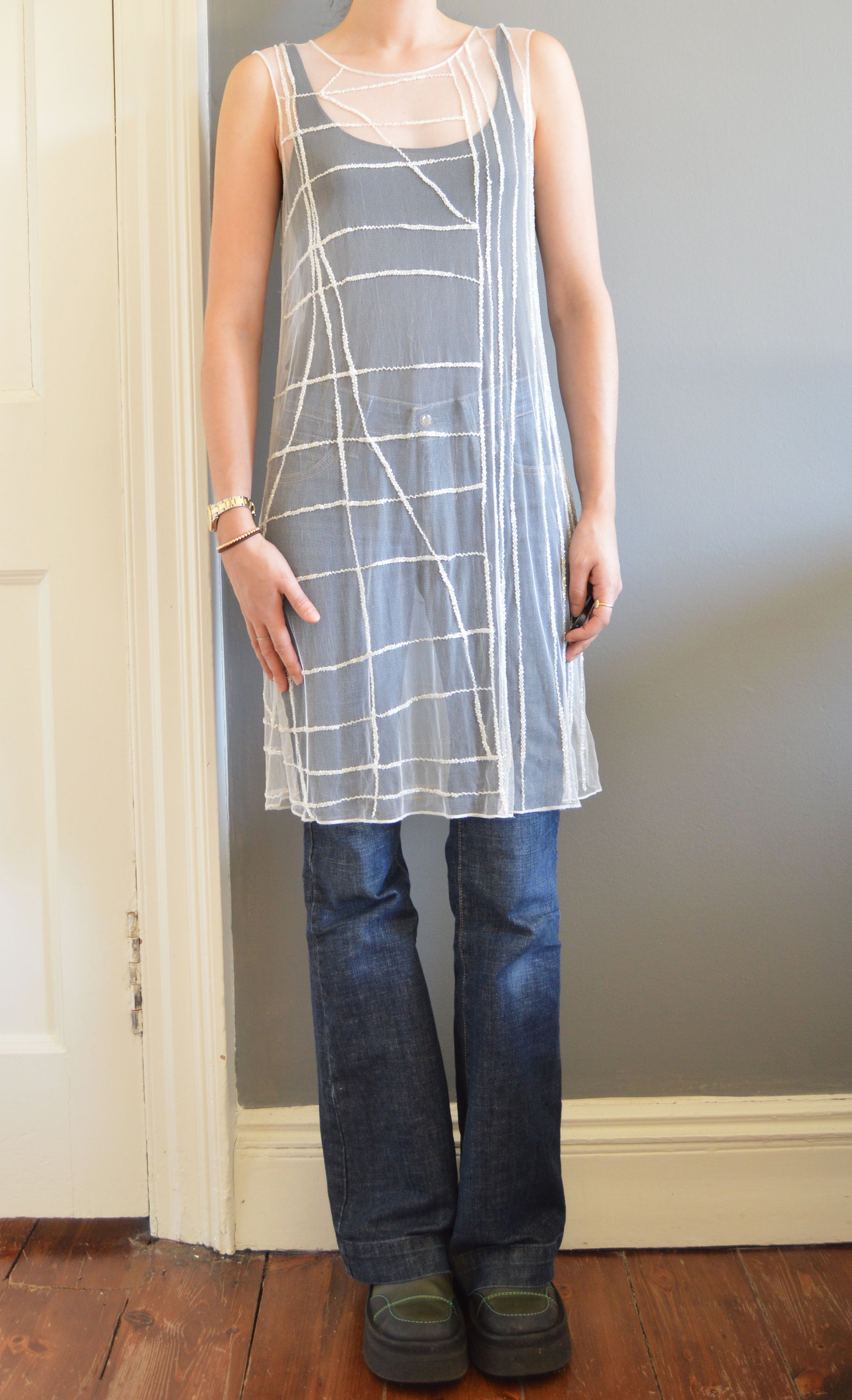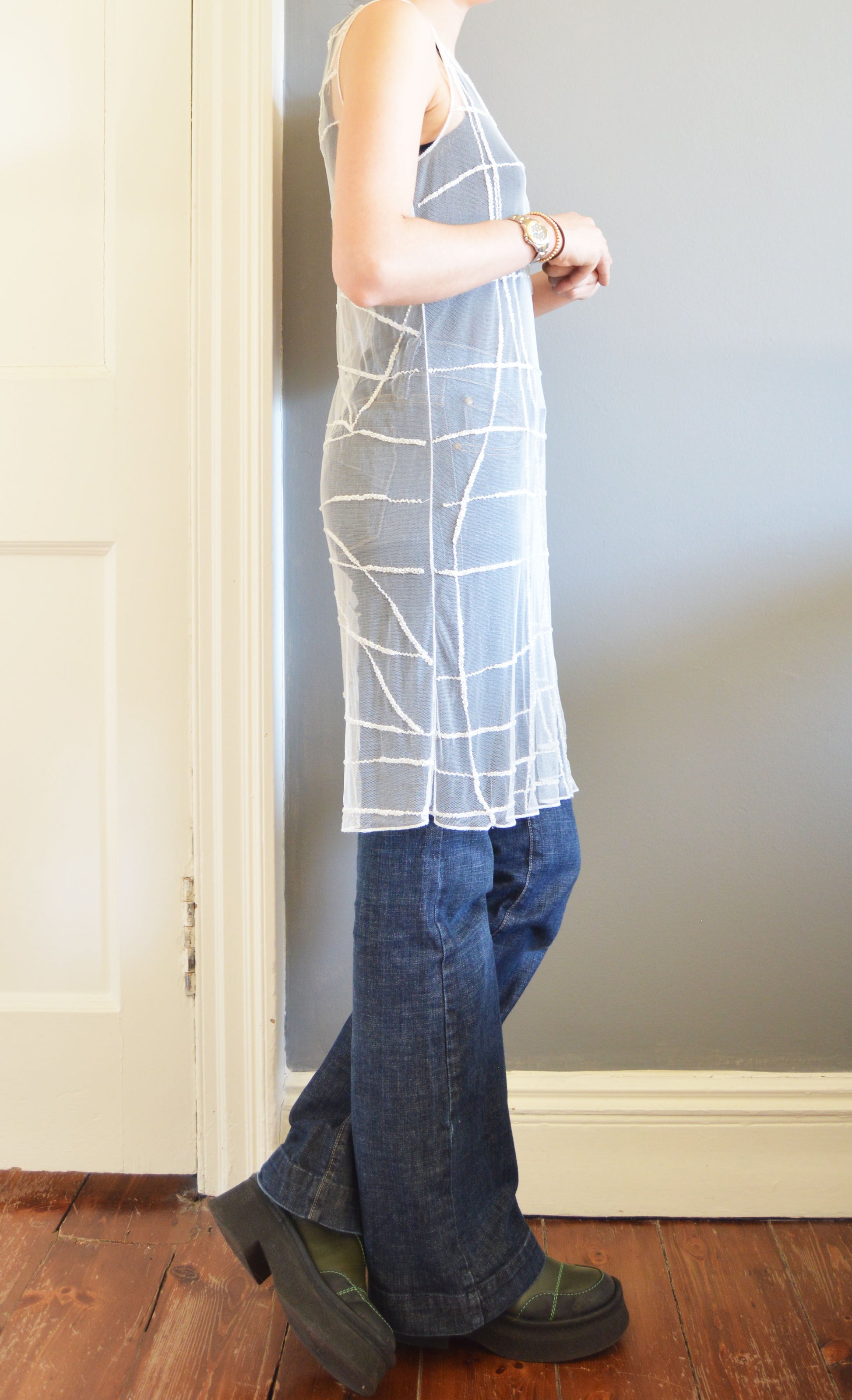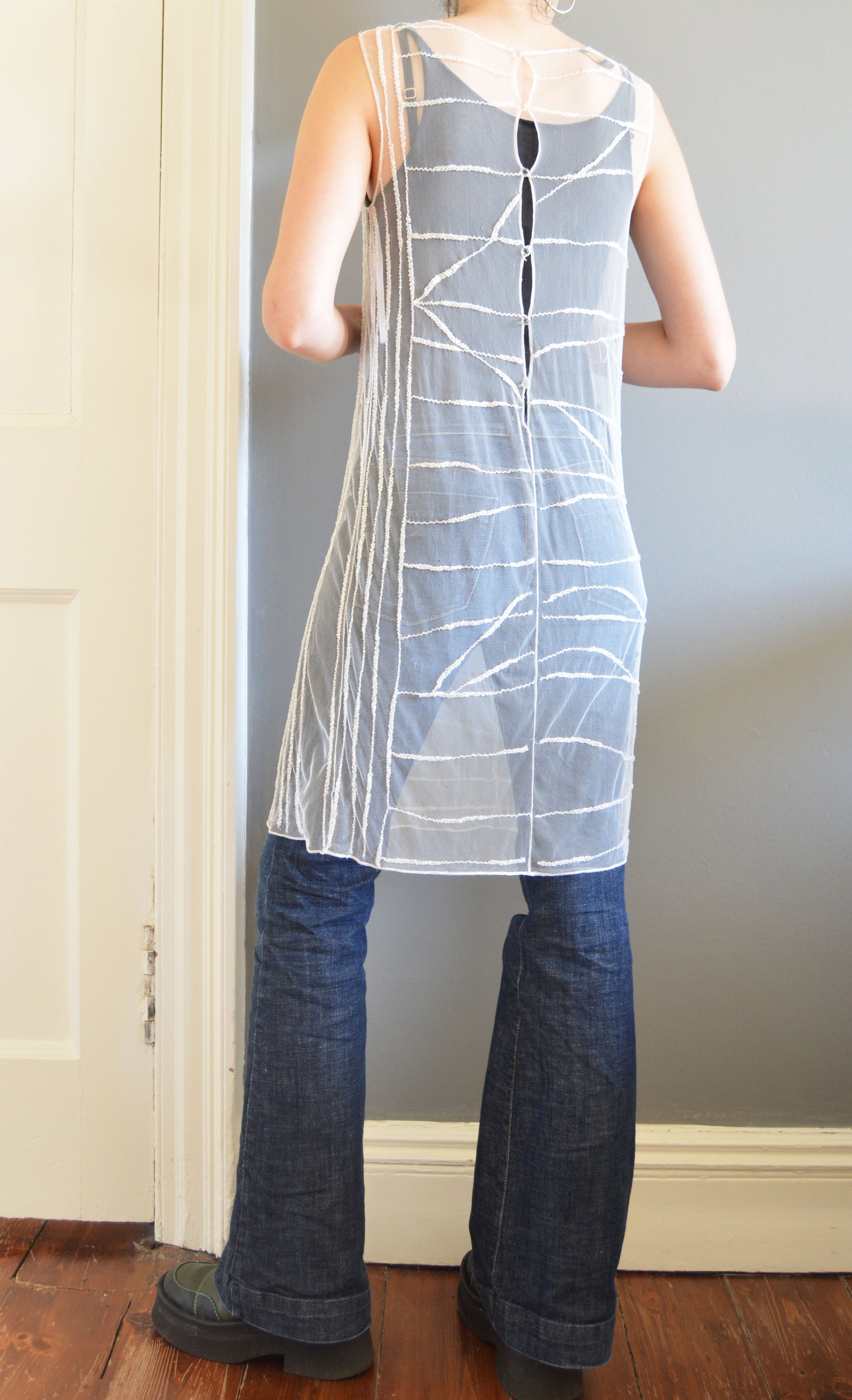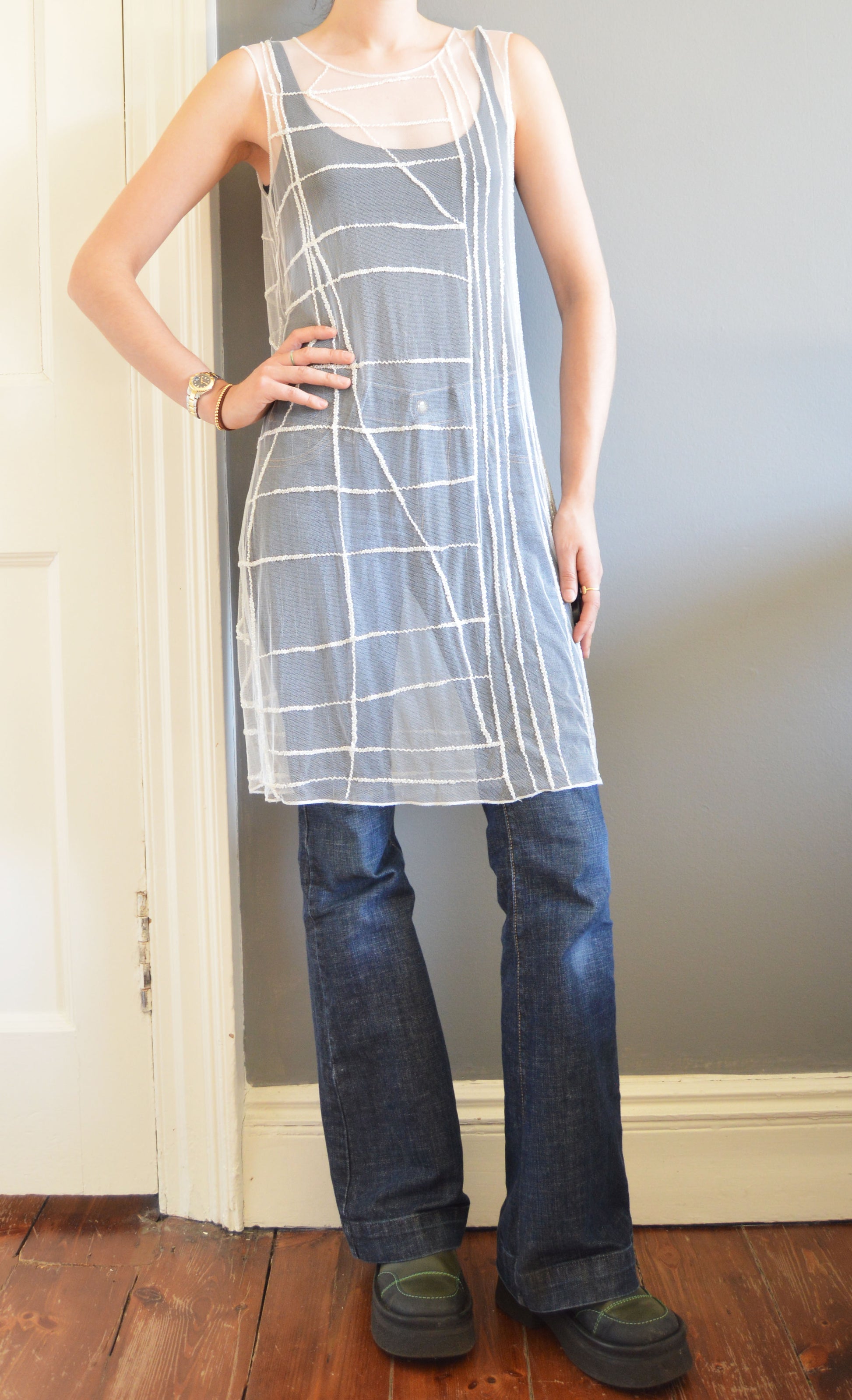 An absolutely stunning piece, featuring the same design as a dress worn on the S/S 1998 runway. The item has one small hole and the label hanging off on one side. Nothing a quick stitch can't fix. It has been pictured here on a size 6/8 UK, 5 7" and features no size label but would fit a variety of sizes.