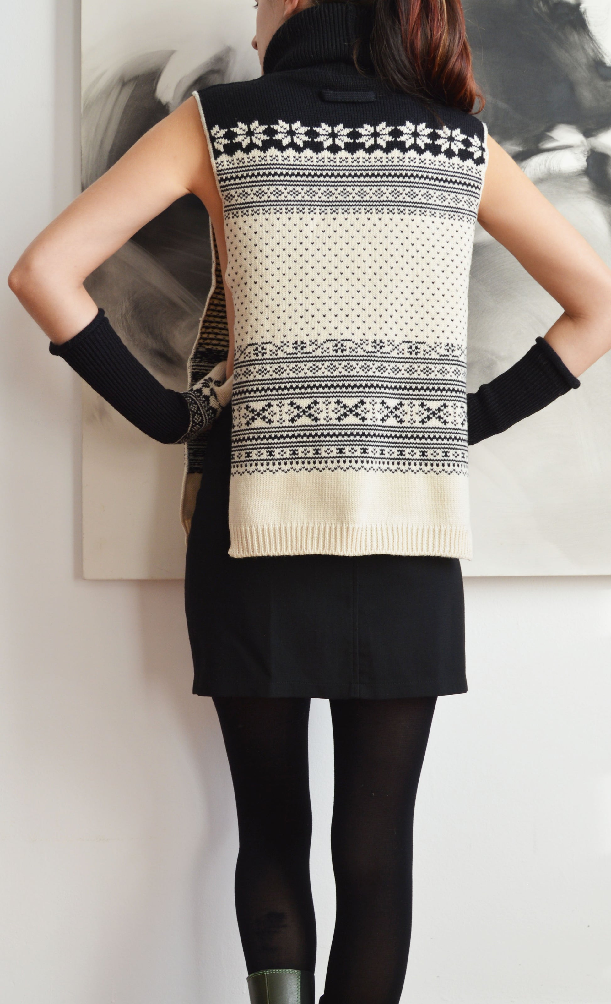 Immaculate Gaultier F/W 1992 set in lovely condition. Pictured here on a size 8 UK, 5 7”. The tank is open at the sides so it would fit a variety of sizes, with regards to the gloves, they are small. So would best fit someone with smaller hands. One small hole at the back, which has been pictured.