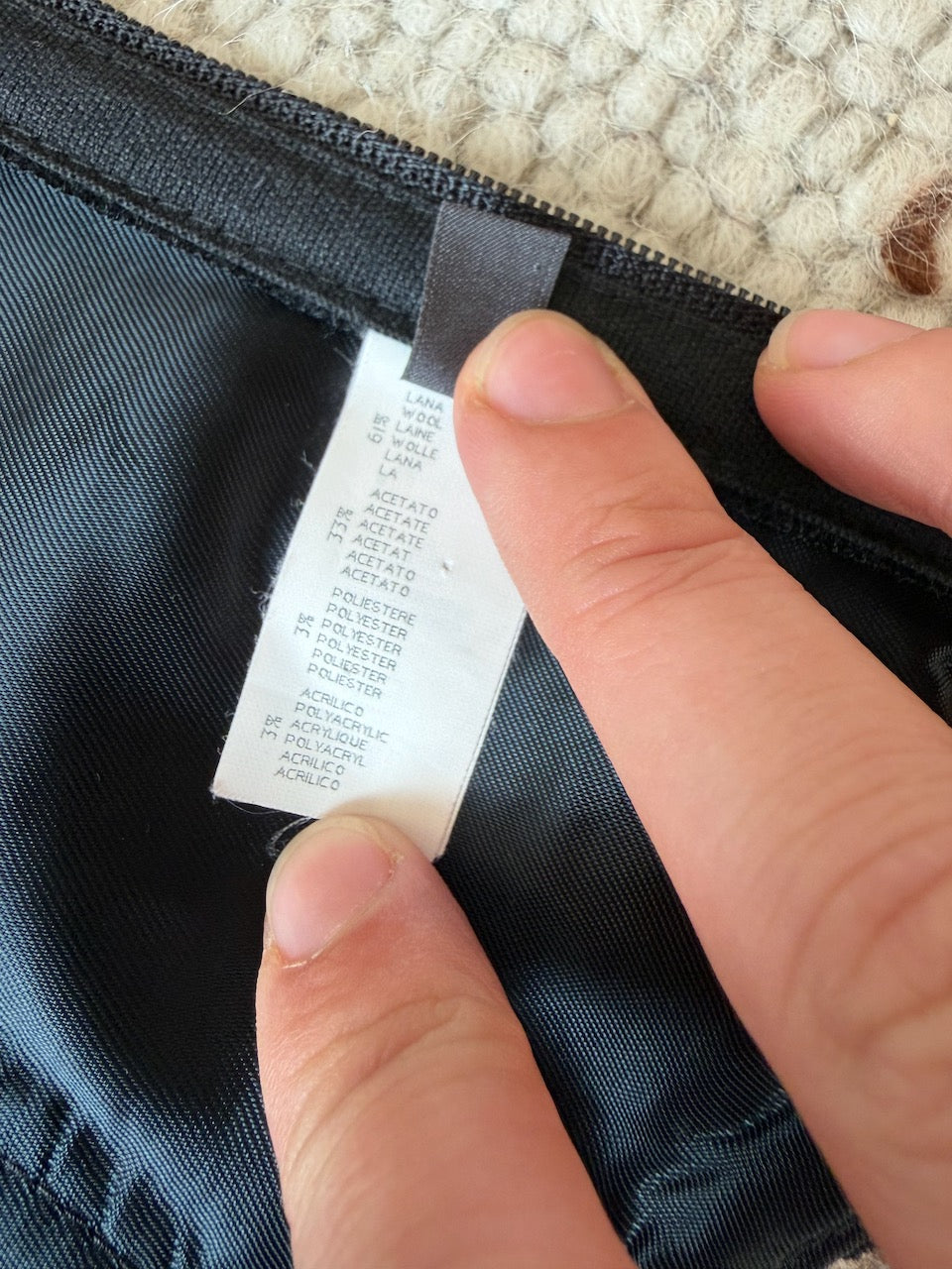 61% wool, 33% acetate, 3% polyester, 3% acrylic