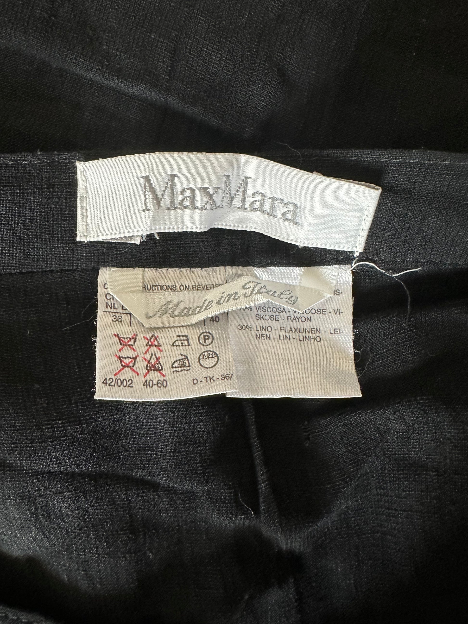A lovely, Max Mara black midi skirt in a viscose and linen blend. The skirt has layers, creating lovely volume to the piece. The size on the label is a 38 FR, but it fits a 36 FR more accurately. Here it has been pictured on a size 36 FR, 5 7". In perfect condition.