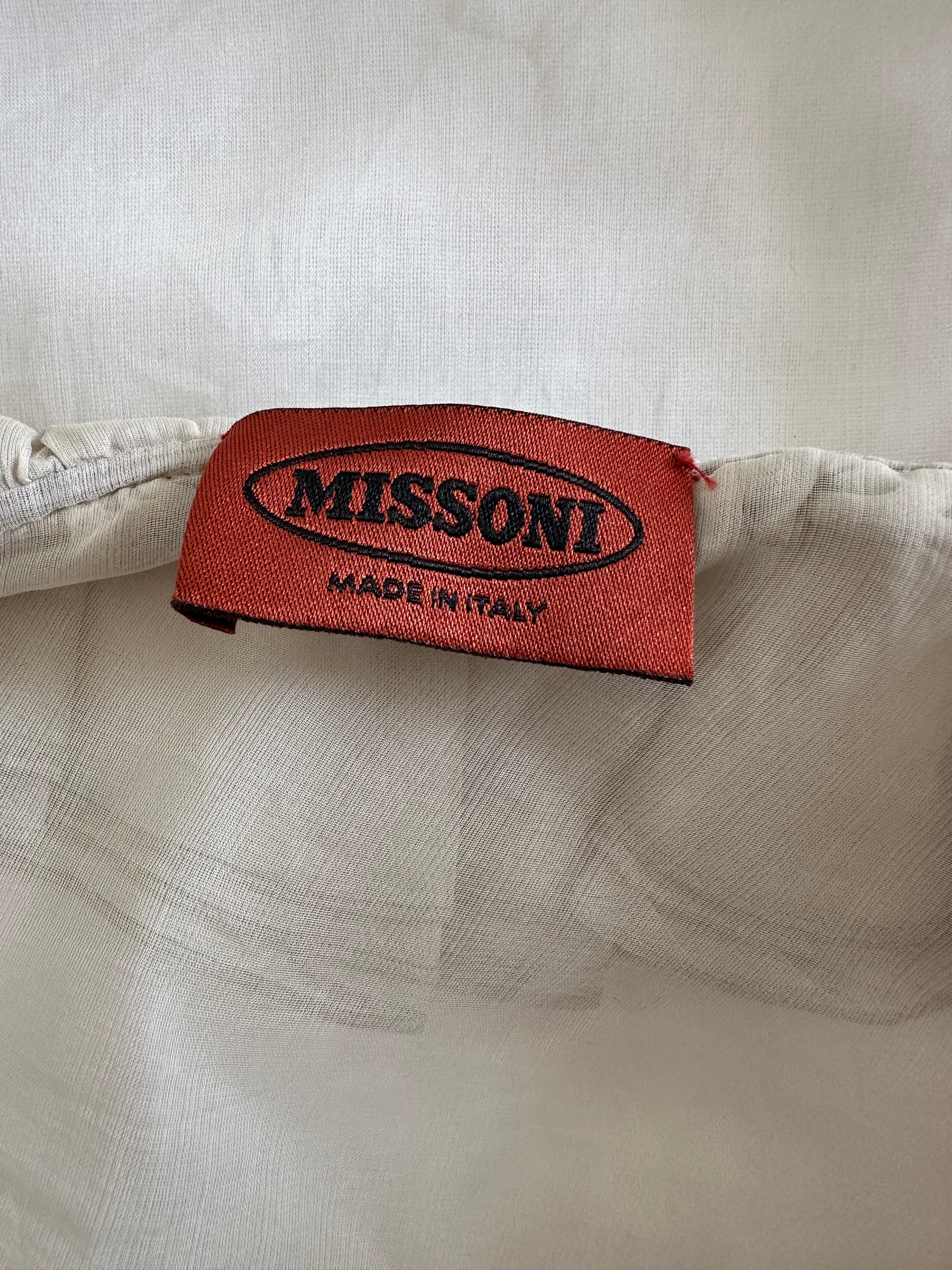 A gorgeous Missoni silk blouse with tiered ruffle sleeves. The size on the label is a 42 IT and it has been pictured here on a size 40 IT, 5 7" and fits well. Please refer to the measurements below for more information. In great condition with no flaws.