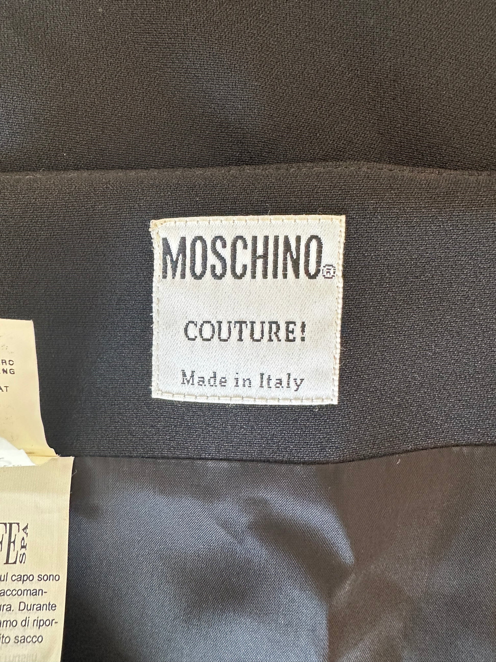 An absolutely, stunning Moschino Couture pencil skirt. The skirt has beautiful open lace tendrils adding to its drama. The size on the label is a 40 IT, and it has been pictured here on a size 40 IT, 5 7". Please refer to the measurements below for more detail. In great condition.