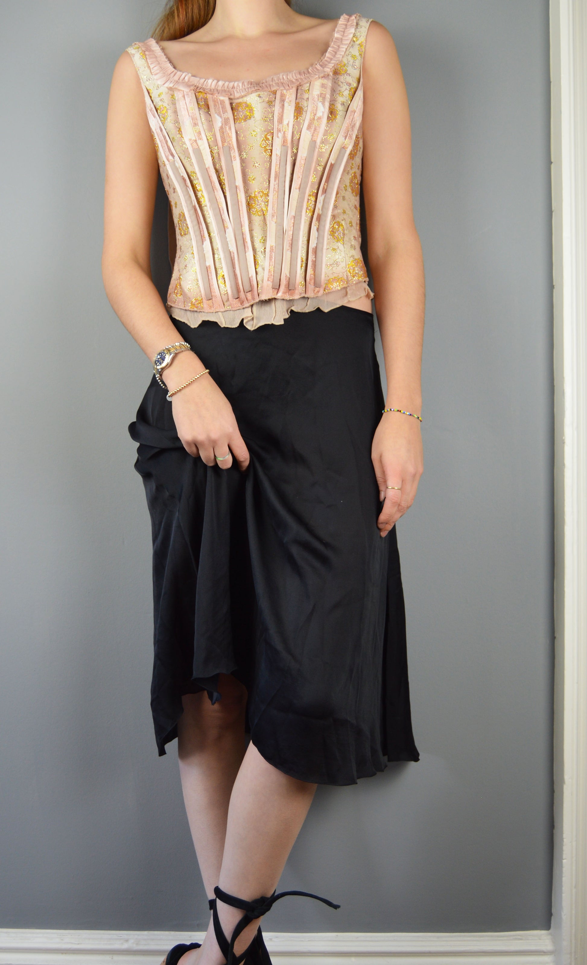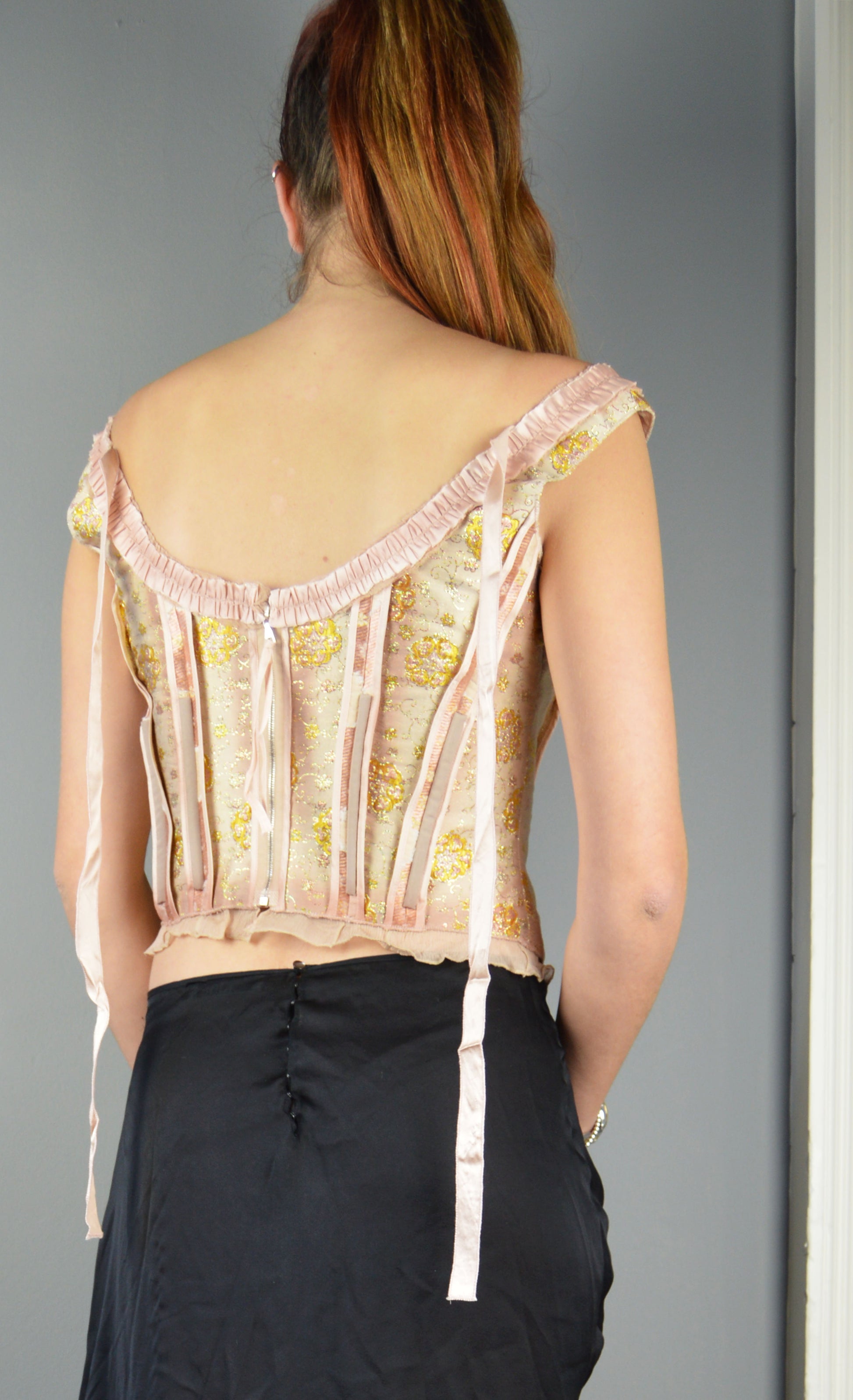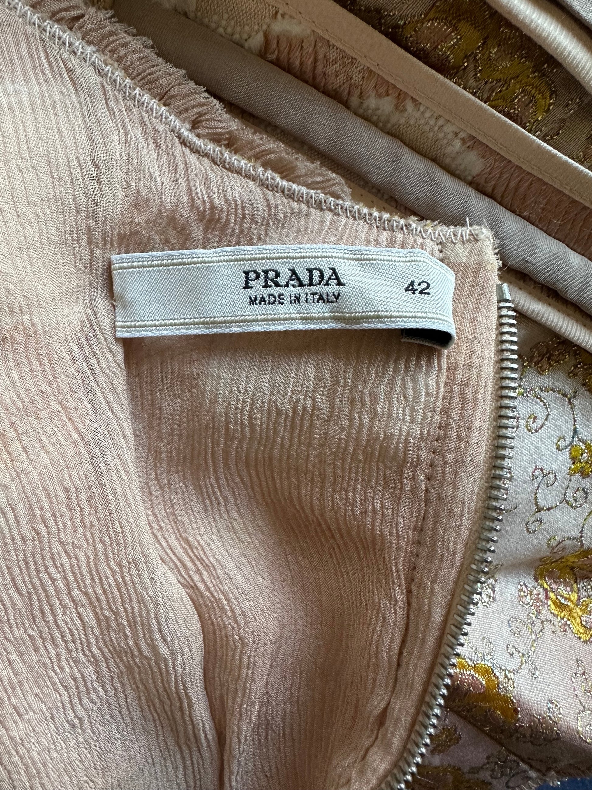 An absolutely stunning Prada corset in gold and blush pink. The size on the label is a 42 IT (10 UK) and it has been pictured here on a size 6/8 UK, 5 7". Best fit for a size 8 UK. In perfect condition with no flaws. Please refer the measurements below for more detail.