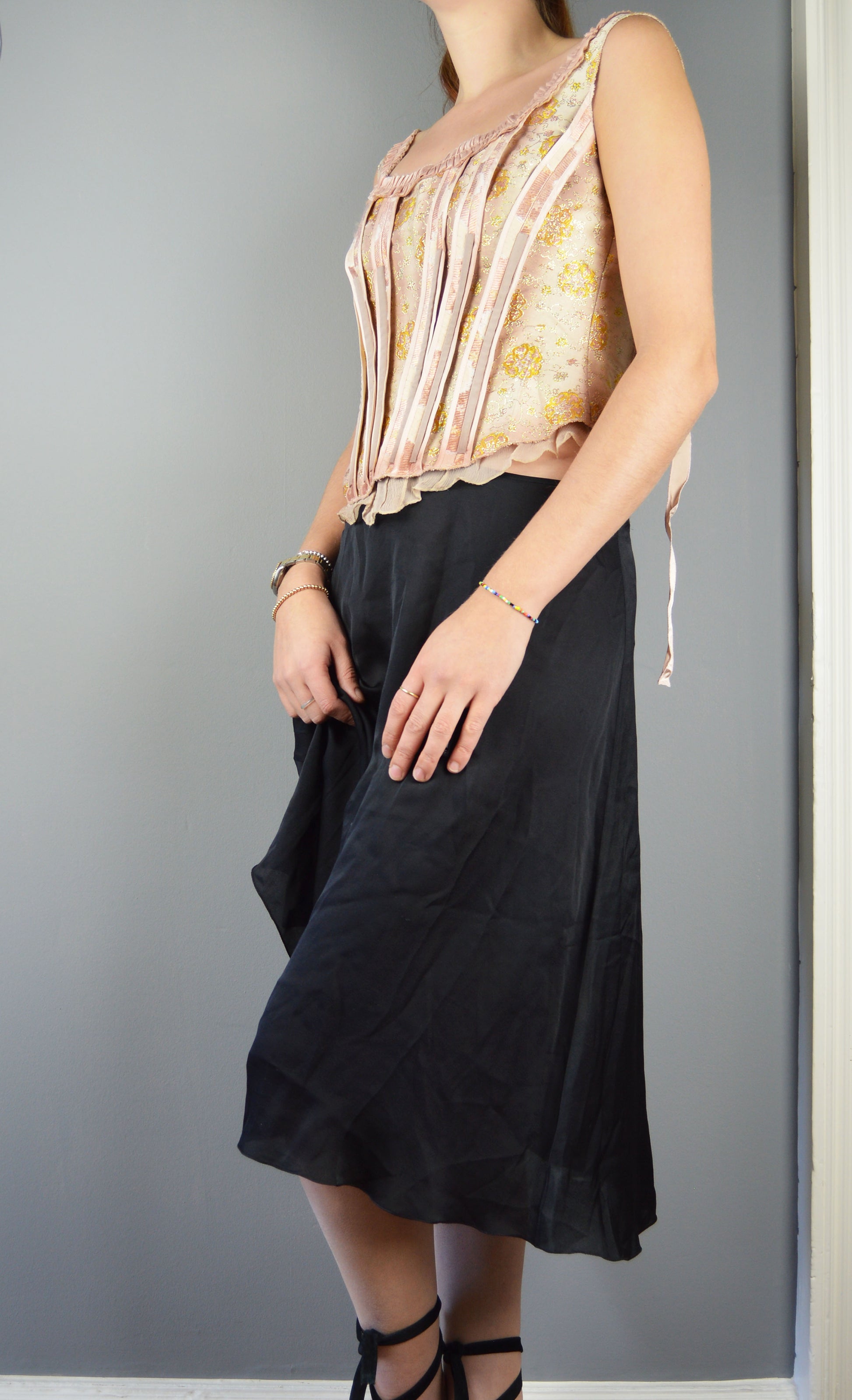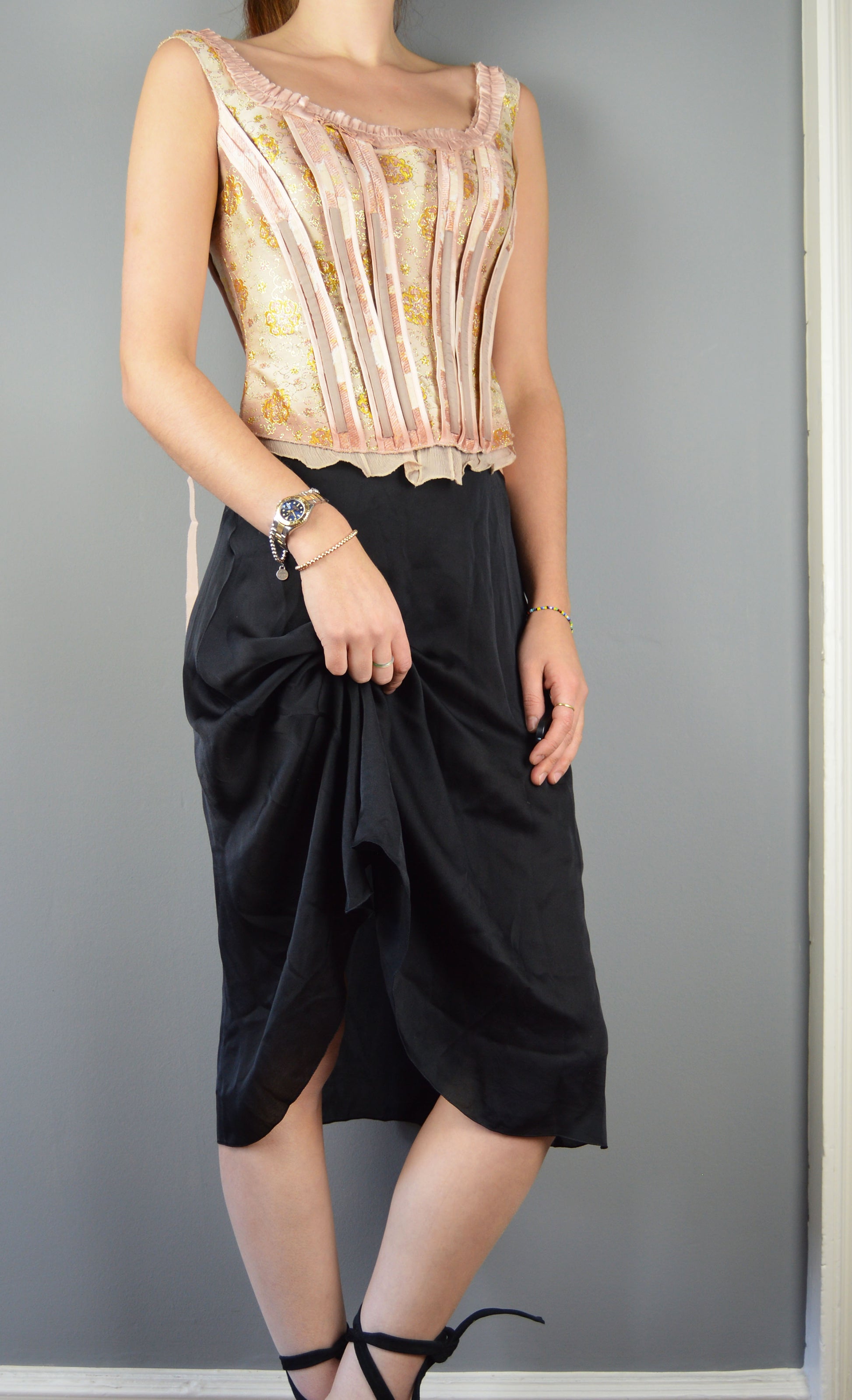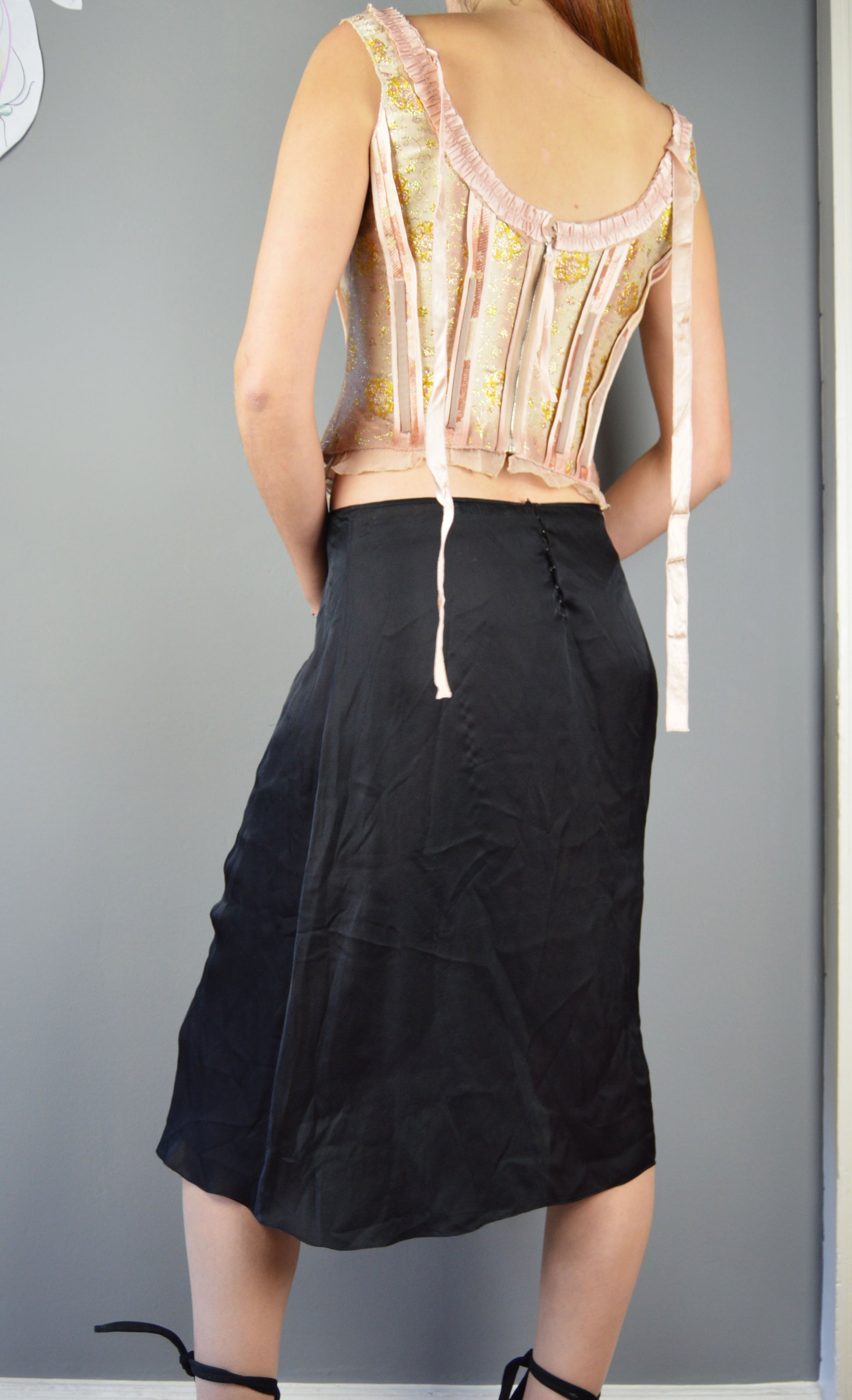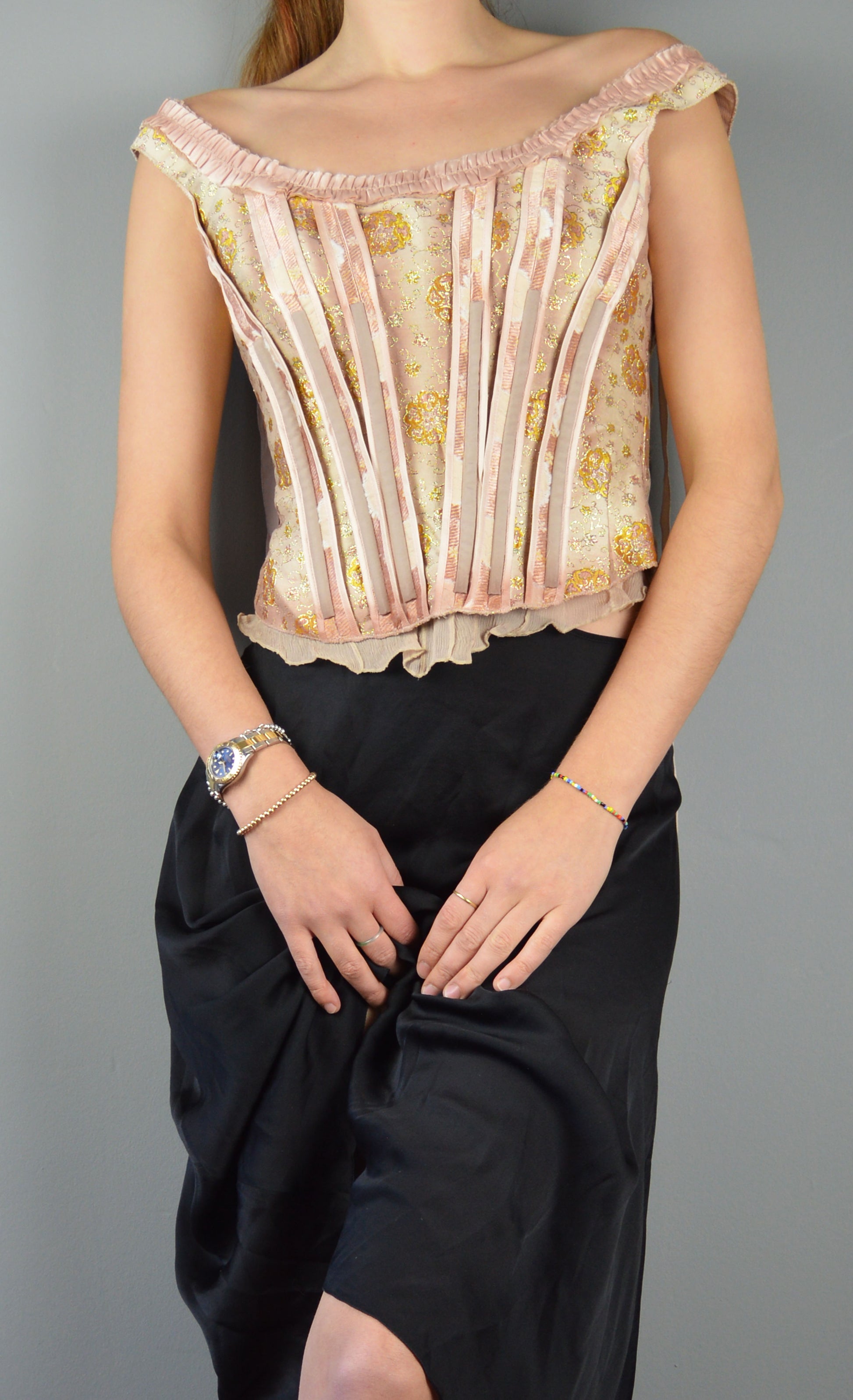 An absolutely stunning Prada corset in gold and blush pink. The size on the label is a 42 IT (10 UK) and it has been pictured here on a size 6/8 UK, 5 7". Best fit for a size 8 UK. In perfect condition with no flaws. Please refer the measurements below for more detail.