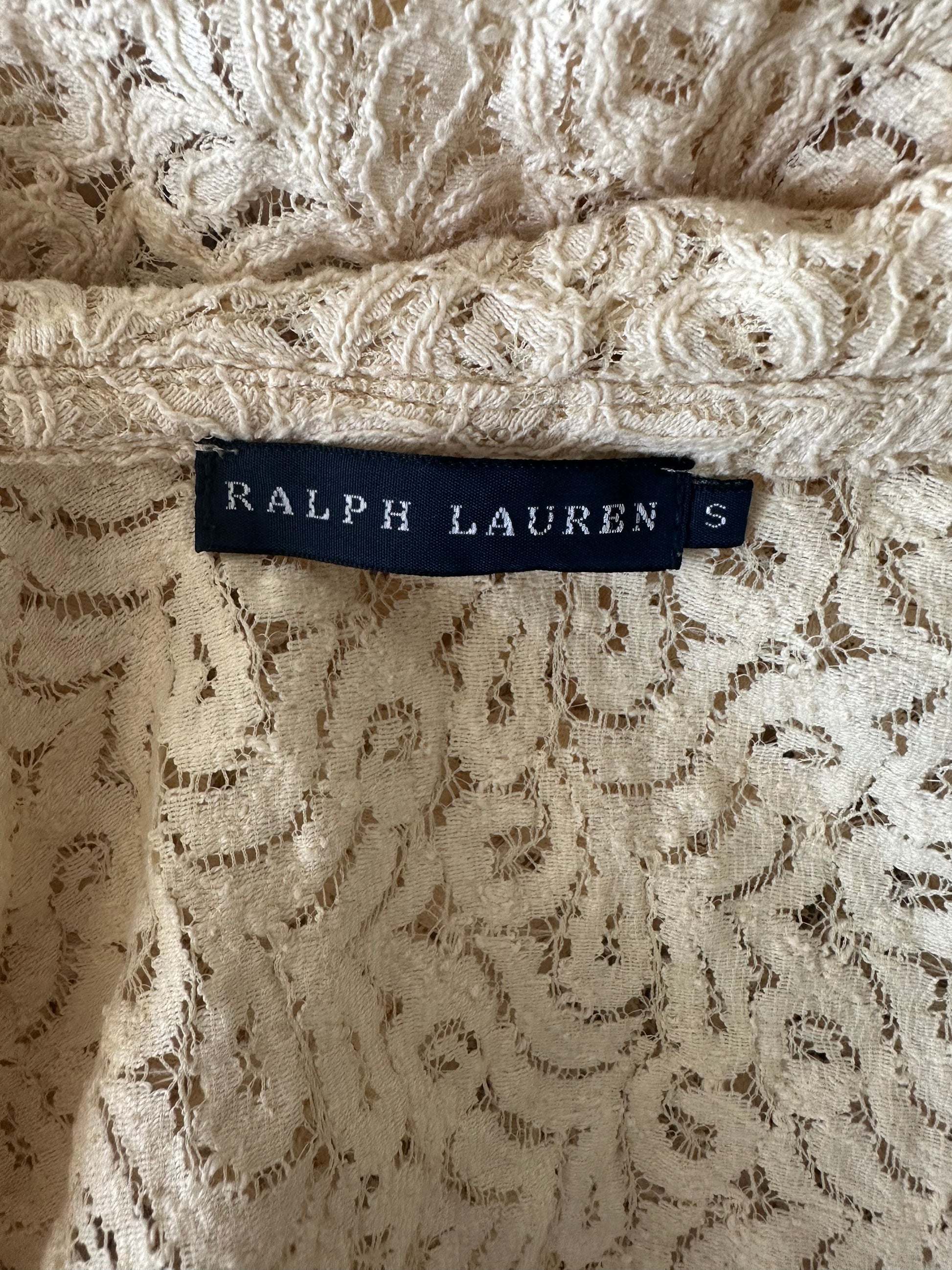 A gorgeous, Ralph Lauren cream lace blouse with frill down accented throughout. The piece is in perfect condition with no flaws but the buttons do come loose easily, this can be remedied easily with a couple of stitches. The item is a size S and has been pictured here on a size 40 IT, 5 7" and fits very well. Please refer to the measurements below for more detail, there is no stretch to the piece.