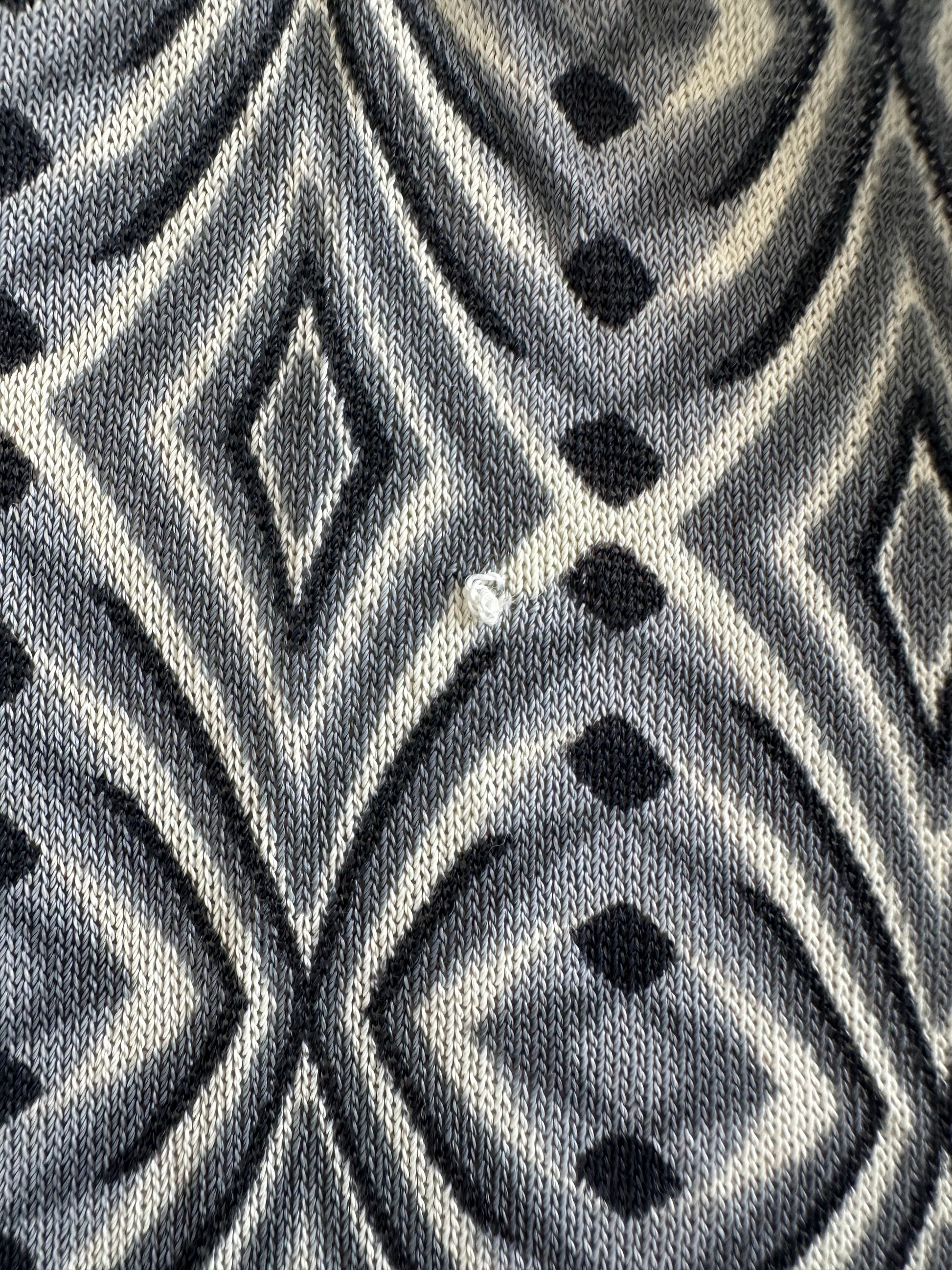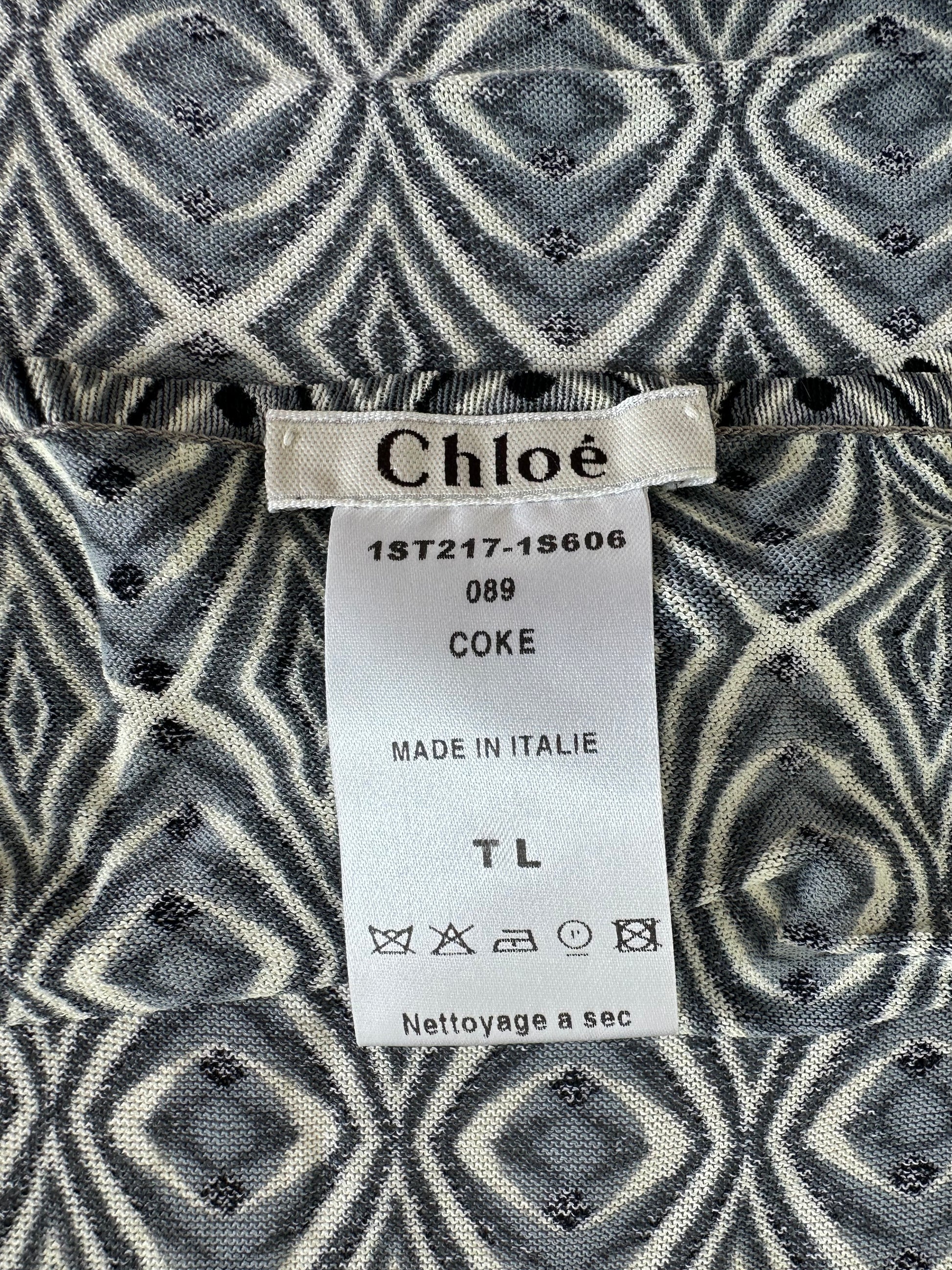 A lovely Chloé backless halter top in a chevron style print. The size on the label is a L but it would probably fit a M best. It has been pictured here on a size S (40 IT, 5 7"). In great condition apart from a small snag on the front, which has been pictured.