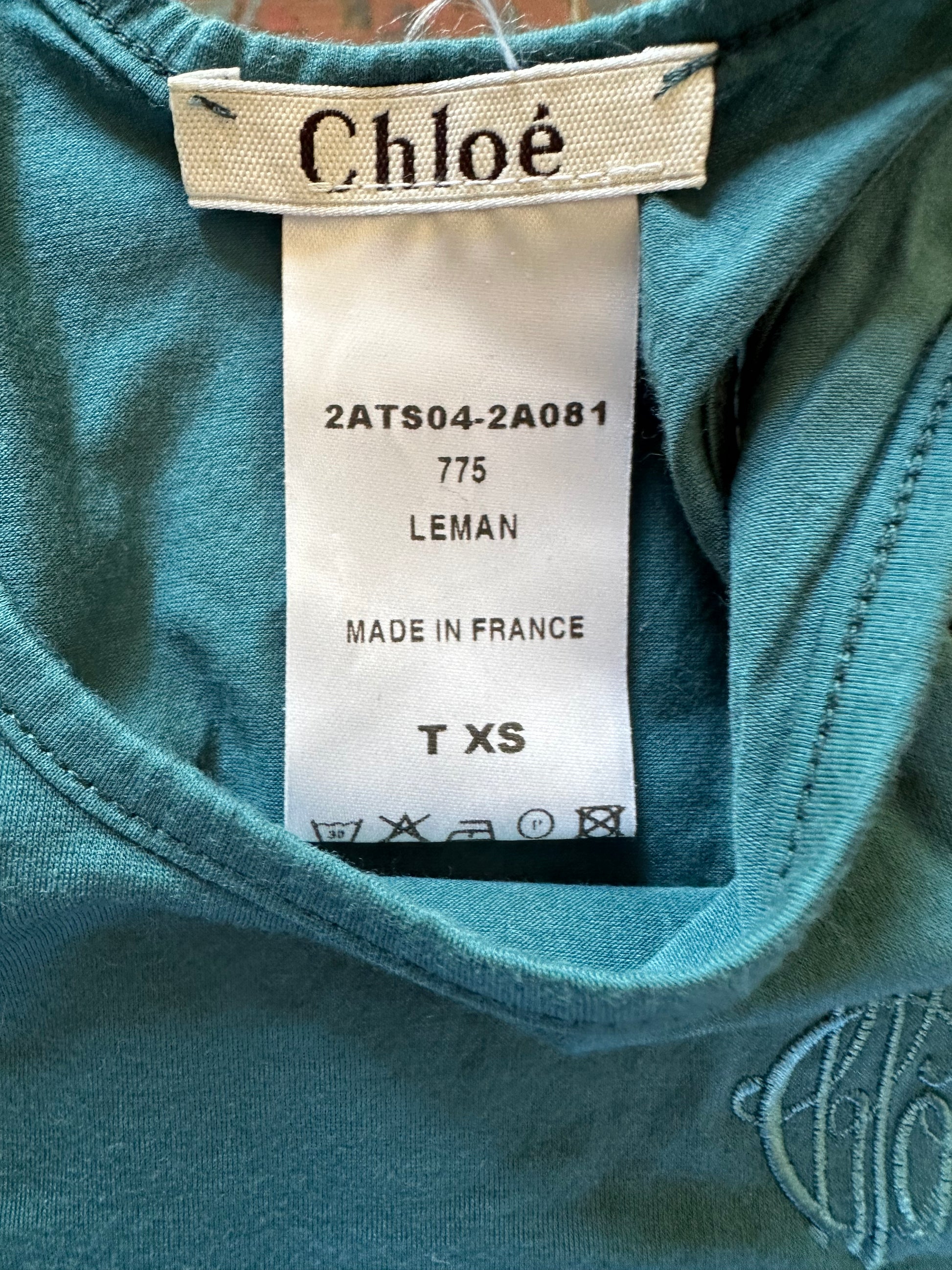 A cute, little vintage Chloé tank top in a lovely teal hue. Size XS on the label, which is accurate. Please refer to the measurements below (taken lying flat). Pictured here on a size 40 IT, 5 7" and it's a tight fit. In perfect condition with no flaws.