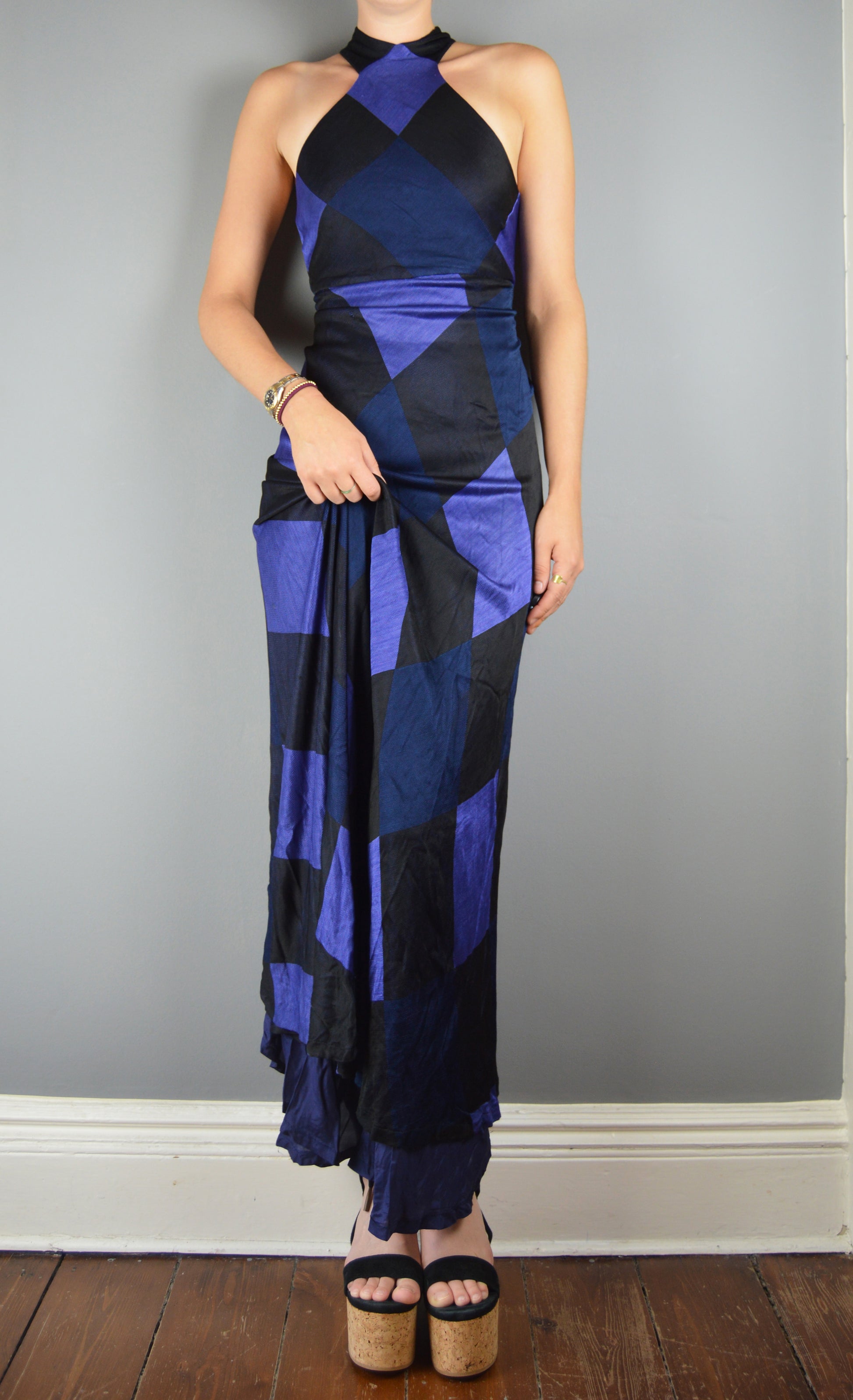 A wonderful, vintage dress from the Chloe F/W 1997 runway collection. There is no size label, and it has been pictured here on a size 6/8 UK, 5 7". Best suited for a size 6 UK, but please refer to the measurements below for more information. Unfortunately, the item is not in the best condition partly due to its age. It has various snags on the fabric and a few small holes, an example of which has been pictured.