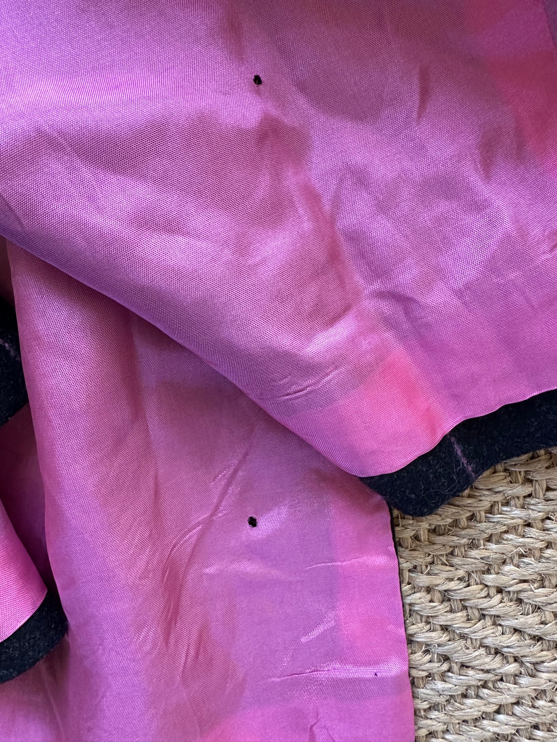 An undeniably gorgeous Chloé F/W 1998 wool coat in a pink and grey check. There are no size or fabric labels but it fits a size 40 IT, 5 7" very well so please refer to the measurements below for more information. In great condition apart from two holes in the lining (please refer to the last images).