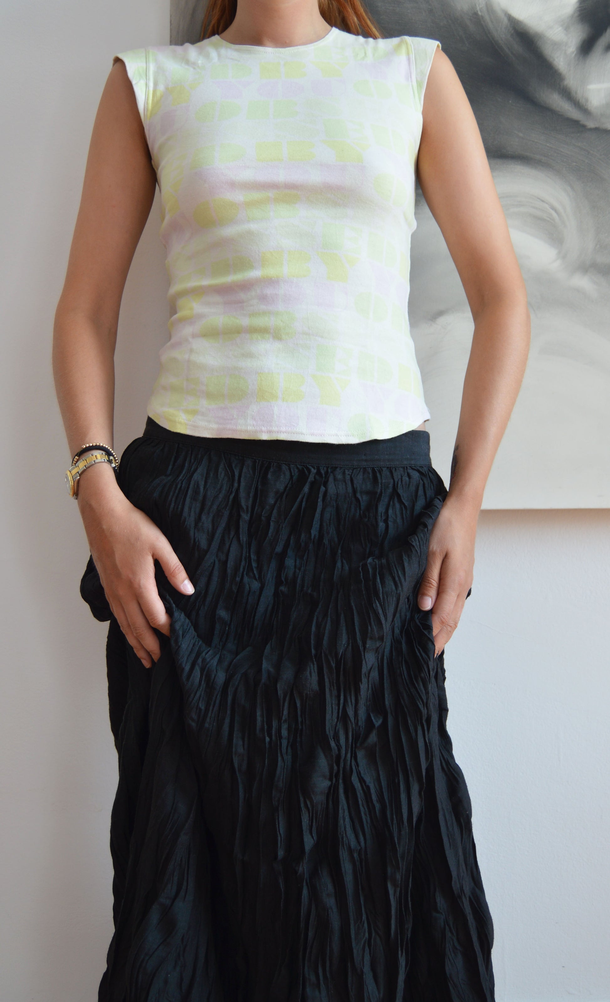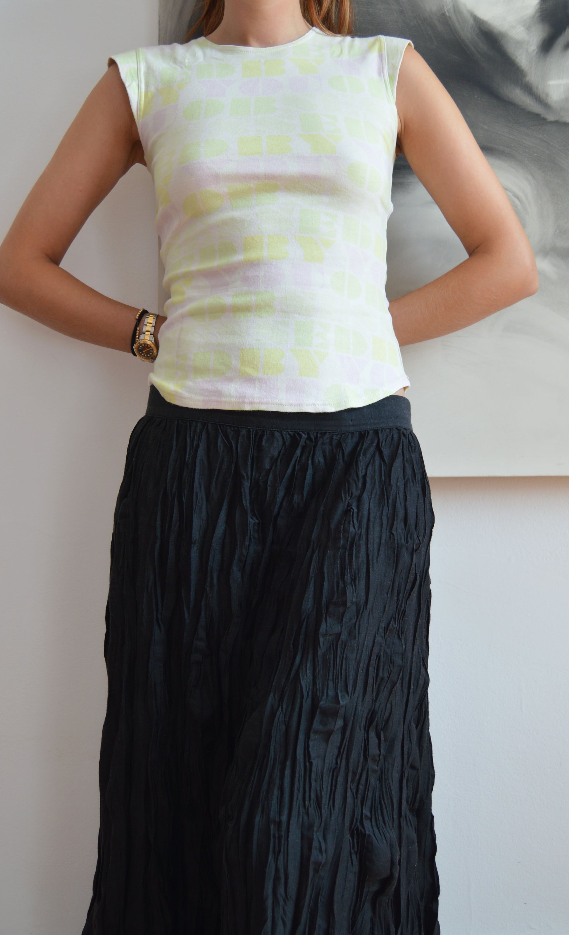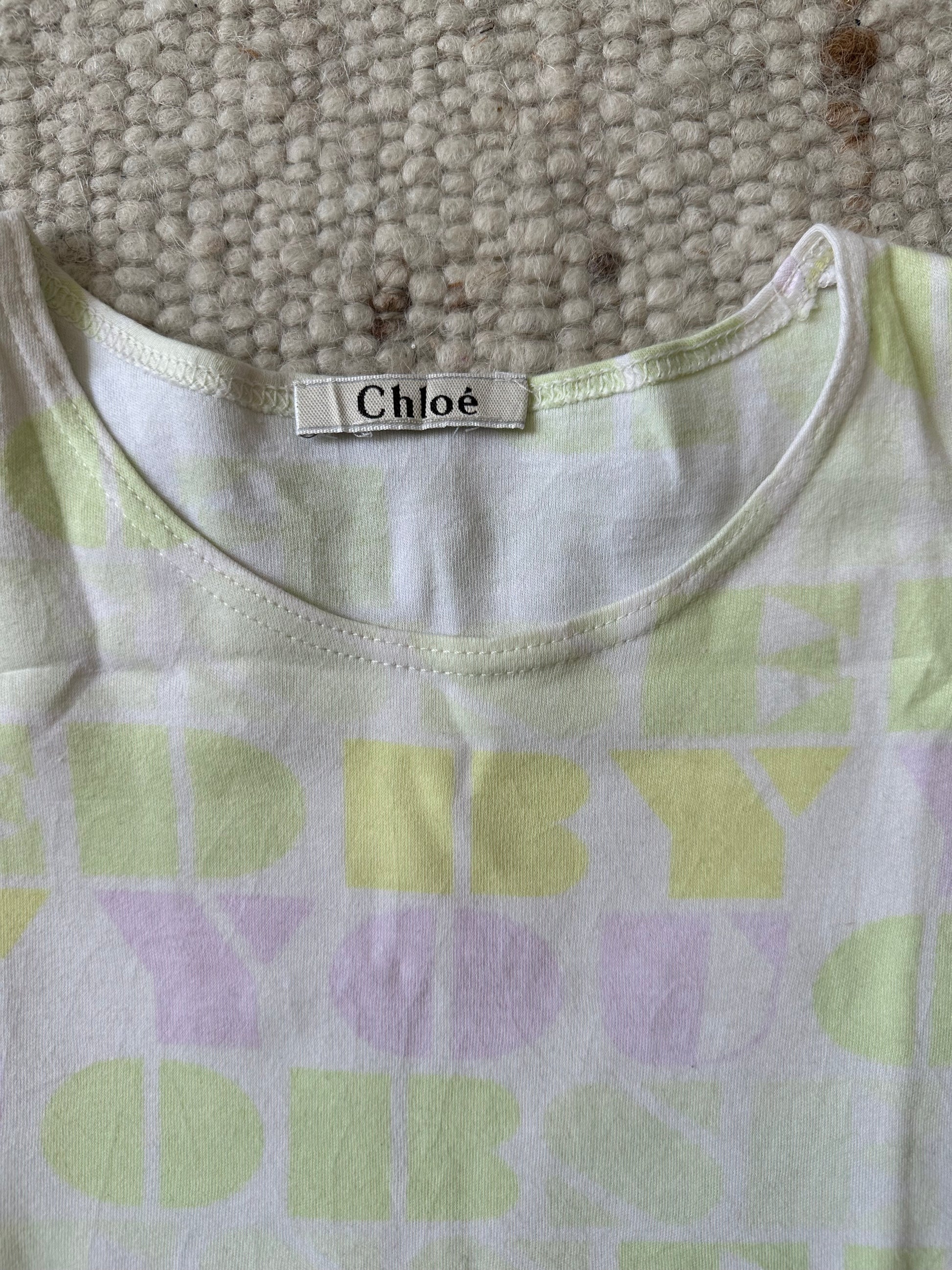 A gorgeous vintage Chloé t-shirt with a worded print. There is no size or fabric label but it fits like an S. It has been pictured here on a size 40 IT, 5 7". In great condition with no flaws.