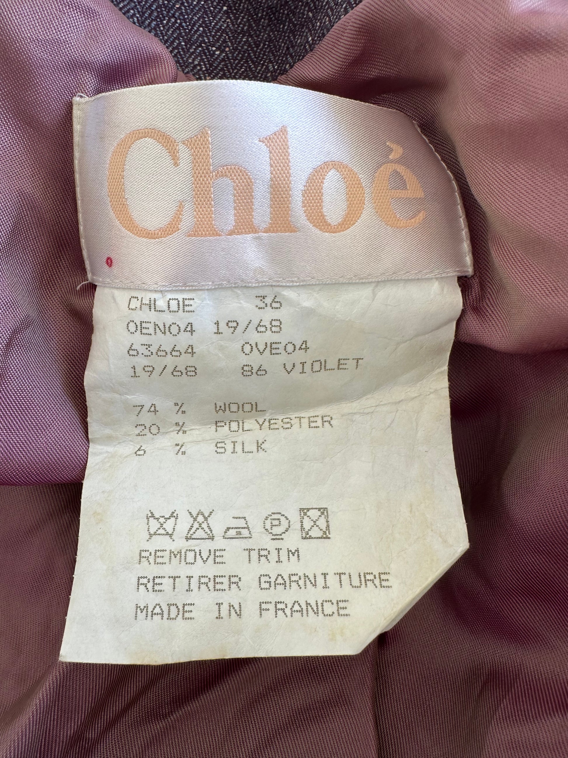 A stunningly well cut Chloé wool jacket from the 90s. The size on the label is a 36 FR (40 IT) and it has been pictured here on a size 40 IT, 5 7". In fits very snugly so perhaps best for a size 38 IT. In fine condition apart from some wear to the interior and exterior armpit areas (these have been pictured).