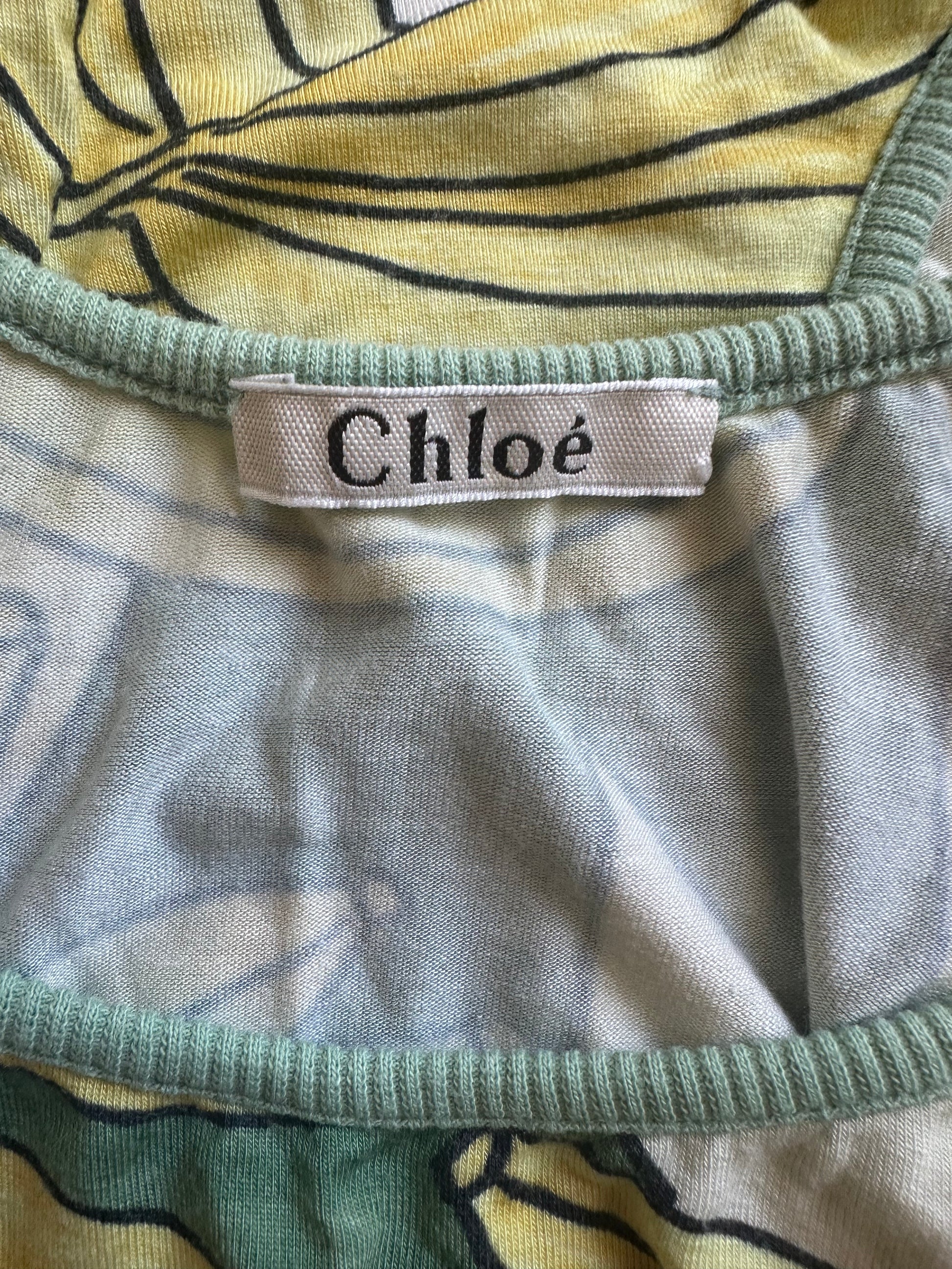 An absolutely, gorgeous Chloé S/S 2004 iconic banana print top with cut outs at the side. Such an amazing collectors item. There is no size label but it has been pictured here on a size 40 IT, 5 7" and fits well. In great condition with just general fading to the item.