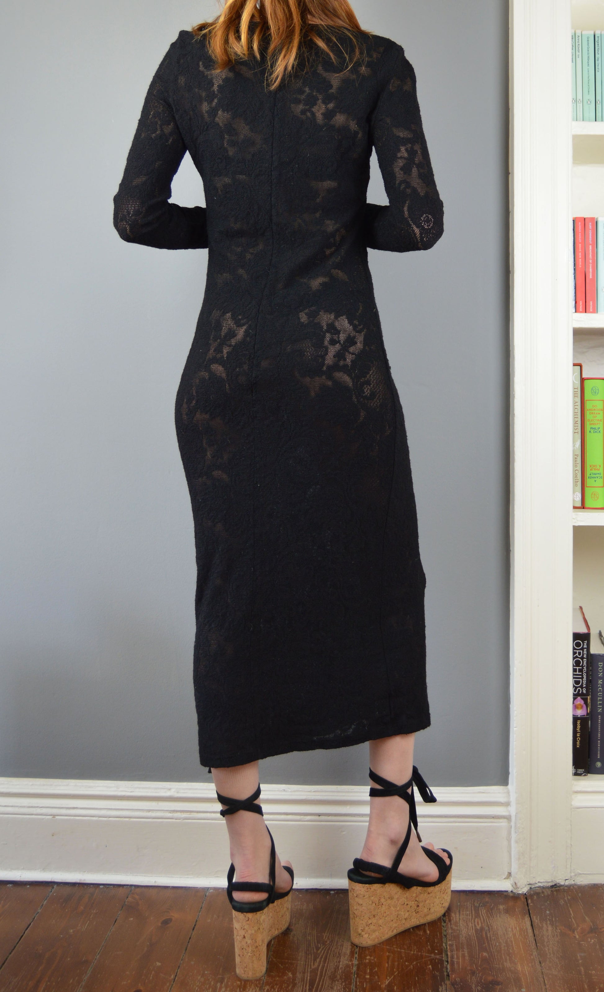 A fantastic, lace midi dress by Dolce & Gabbana's D&G line. A lovely piece that is in great condition. The size on the label is a 42 IT (10 UK) and the item has been pictured here on a size 6/8 UK, 5 7". The best fit would be for a 10-12 UK, and there is some stretch to the piece. Below are measurements taken with the garment lying flat.