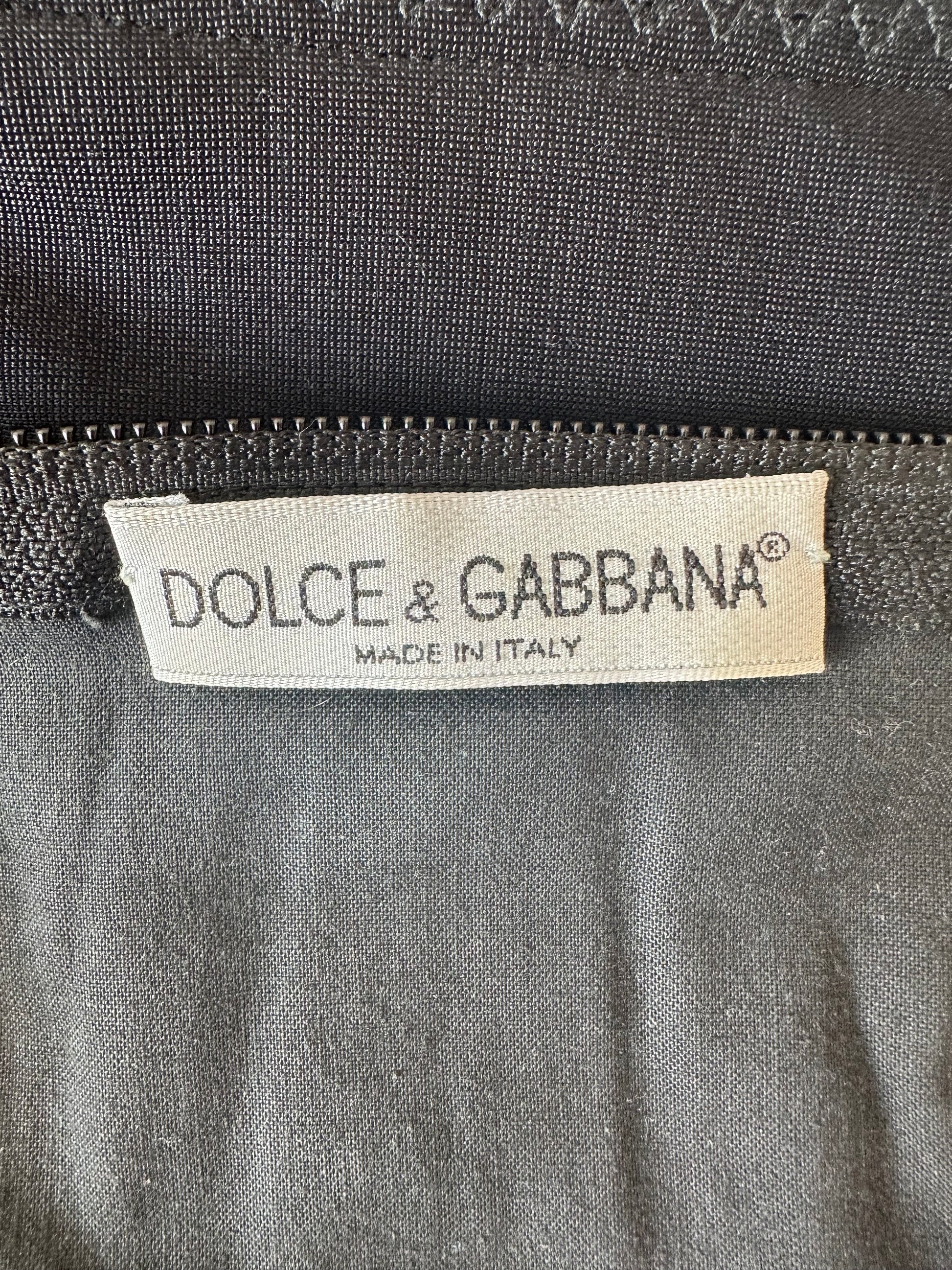 The most stunning and gloriously fitted Dolce & Gabbana dress. This dress features a zip up the front as well as on the back. It is a size 40 IT and has been pictured here on a size 40 IT, 5 7" and it fits very well. In perfect condition, with no flaws. There is also internal boning to give extra structure to the piece.