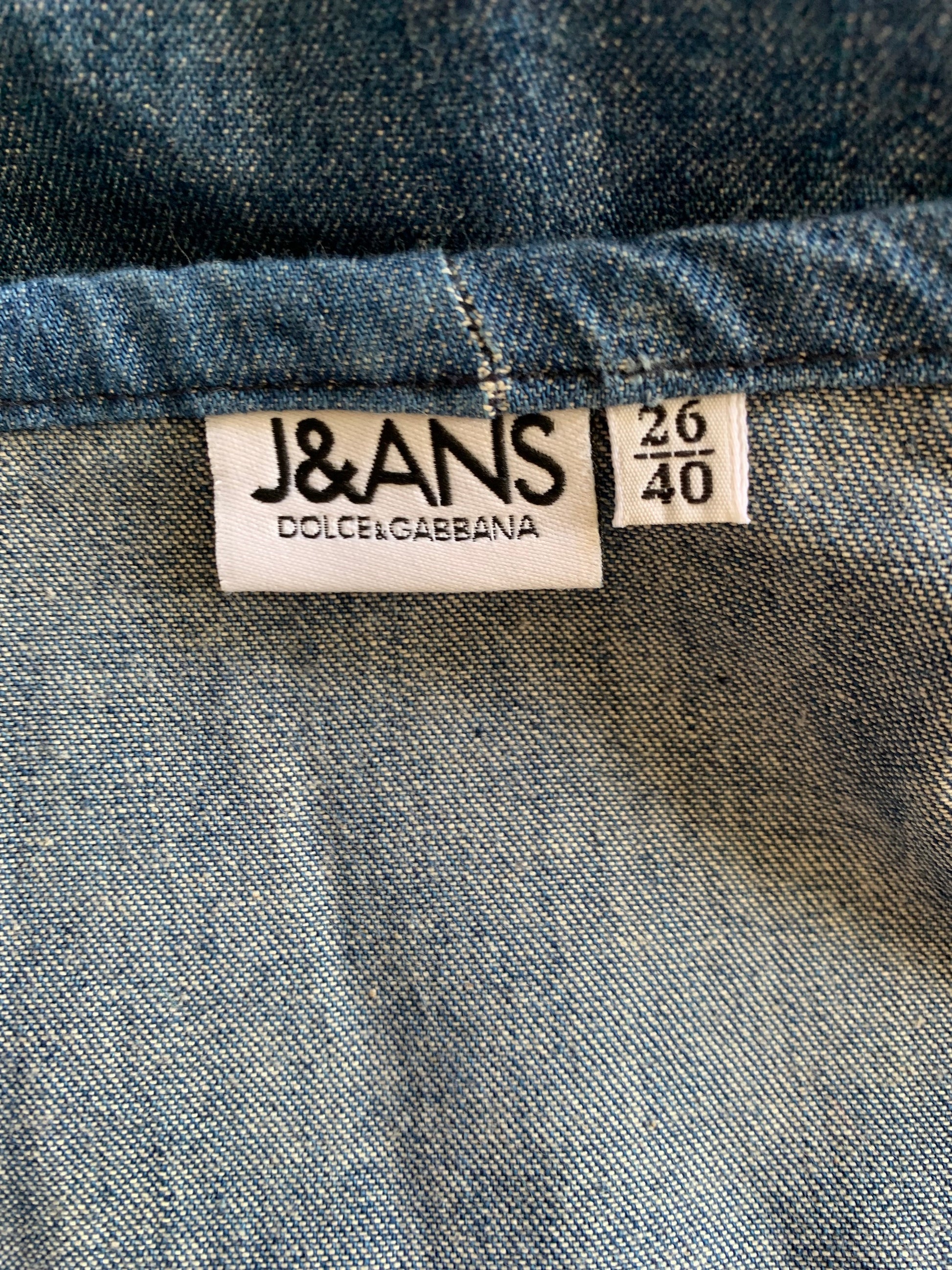 A lovely Dolce & Gabbana J&ANS denim wrap skirt, which as been pictured here on a size 6/8 UK, 5 7". The size on the label is a 26/42, coming to a 8 UK, but it would also fit a size 10 UK. In great condition apart from one mended hole, which has been pictured. The perfect piece for transitioning from Spring to Summ.er