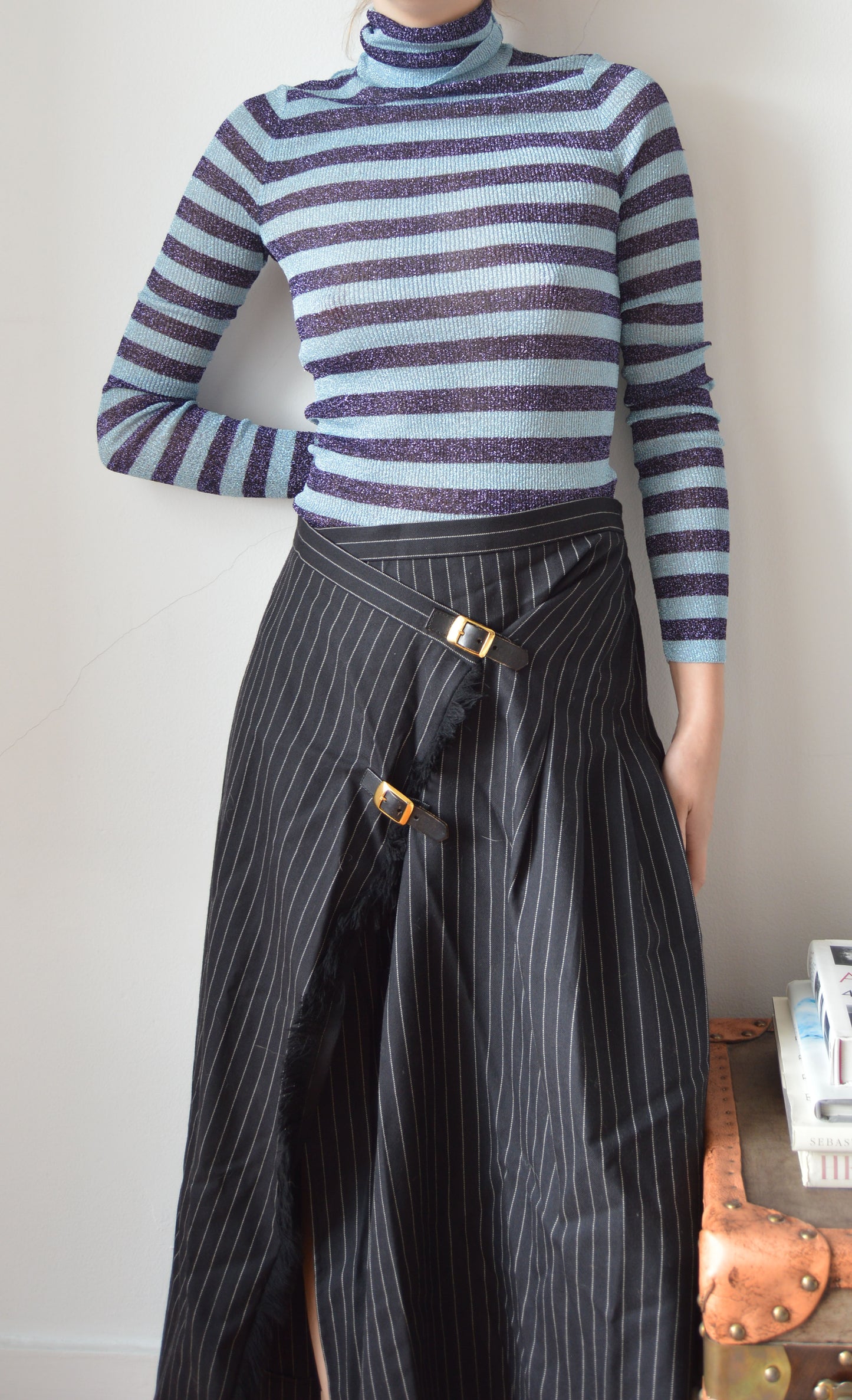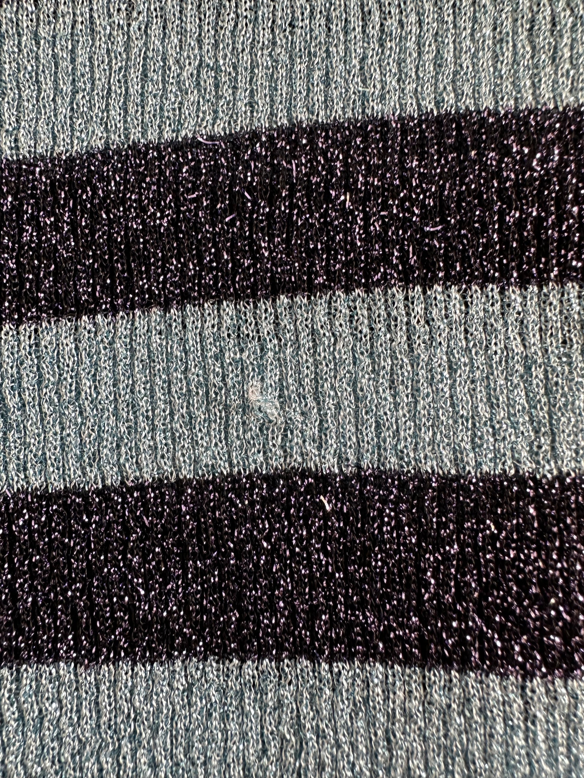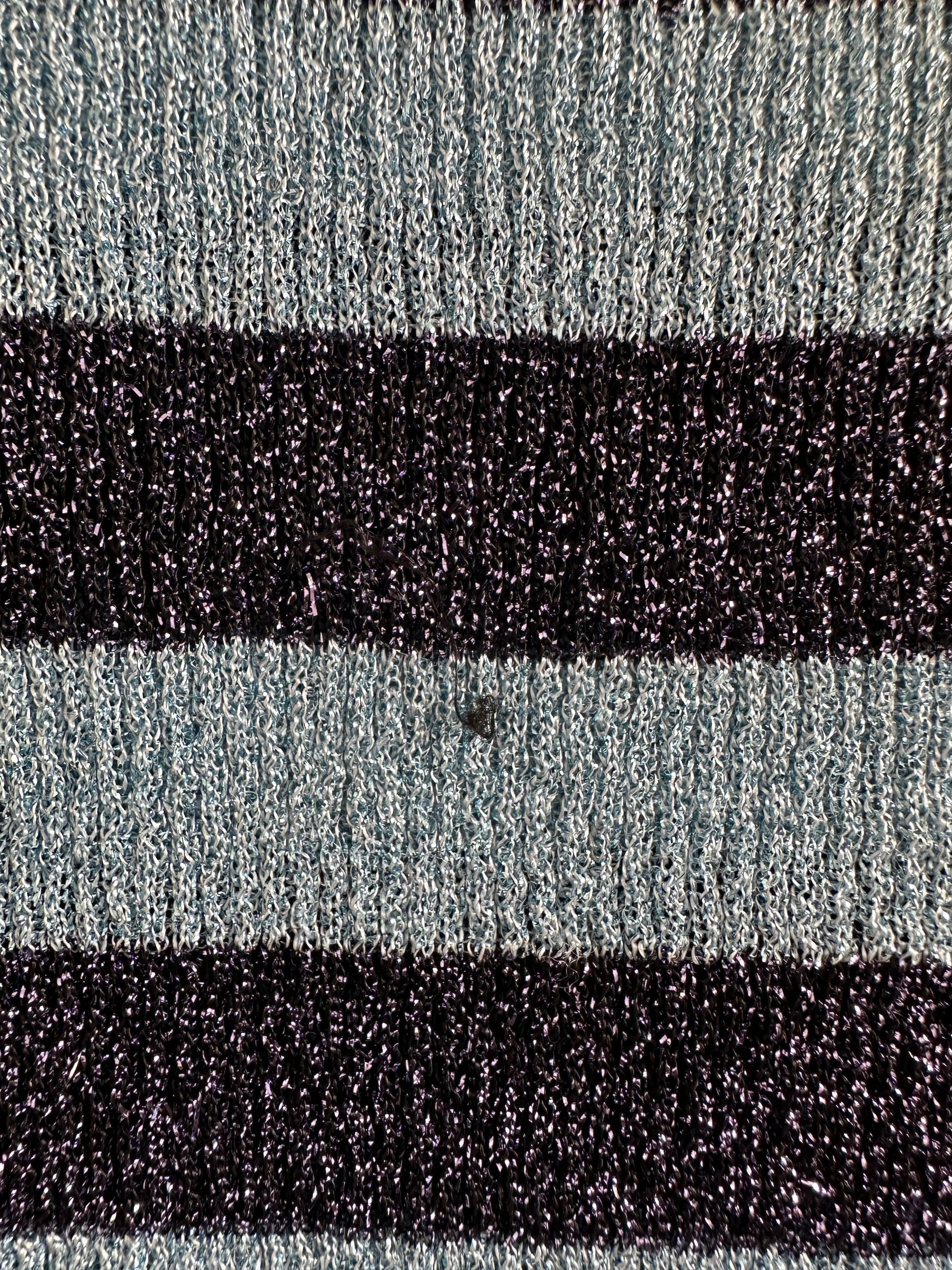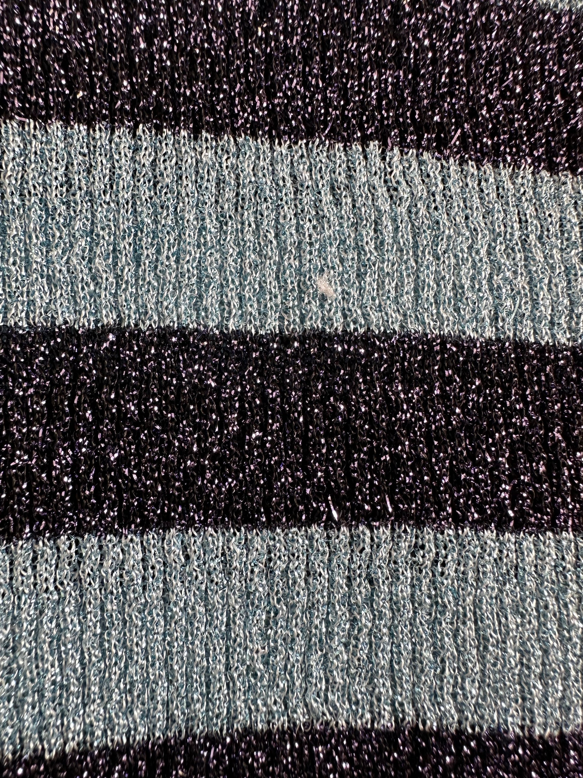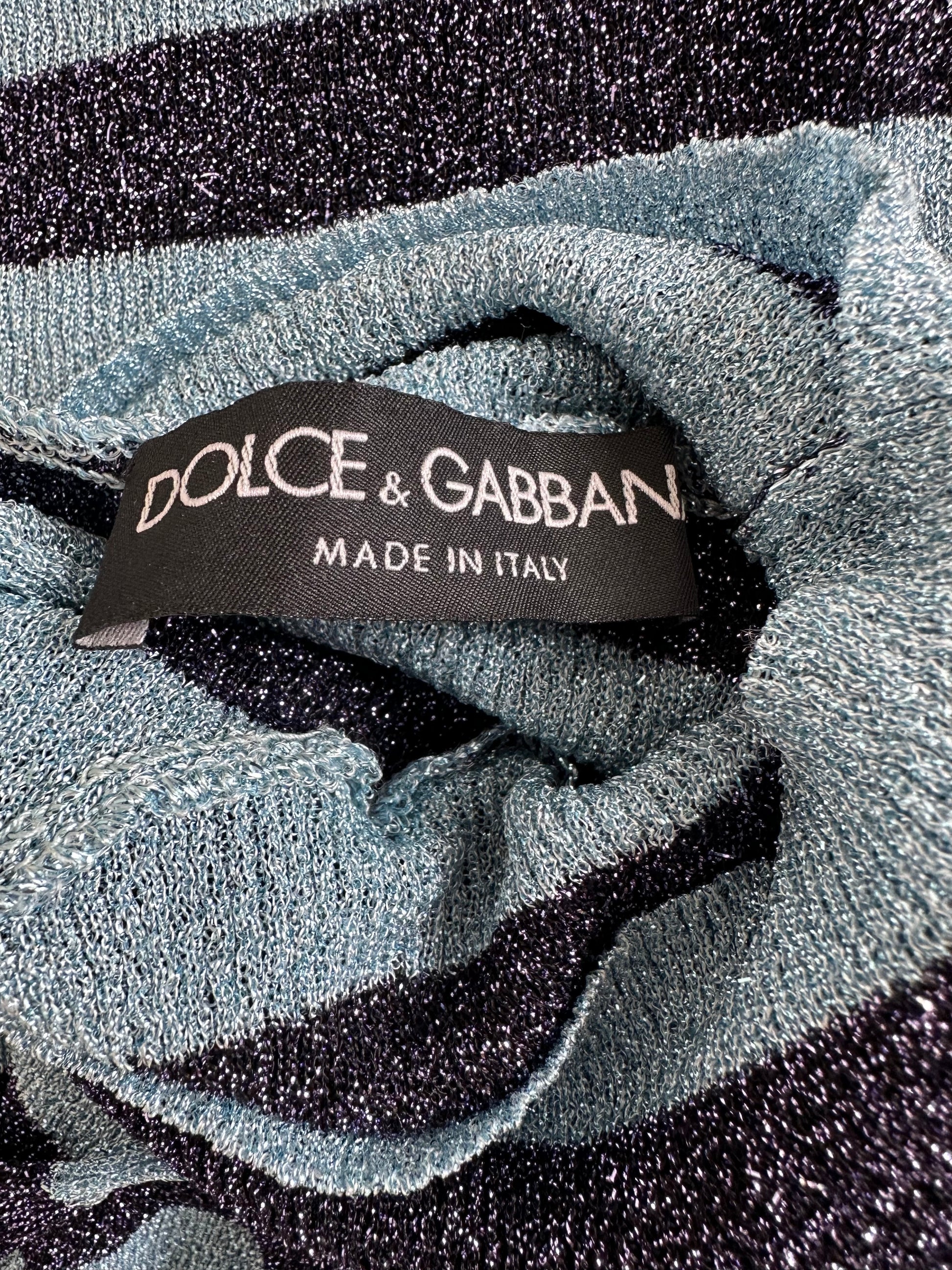 We have another Dolce & Gabbana F/W 2000 sparkly turtleneck. This time in my favourite colour combination of light blue and purple. The turtleneck is a size 42 IT and it has been pictured here on a size 40 IT, 5 7". There are a couple of snags (not large) here and there but otherwise the item is in great condition.