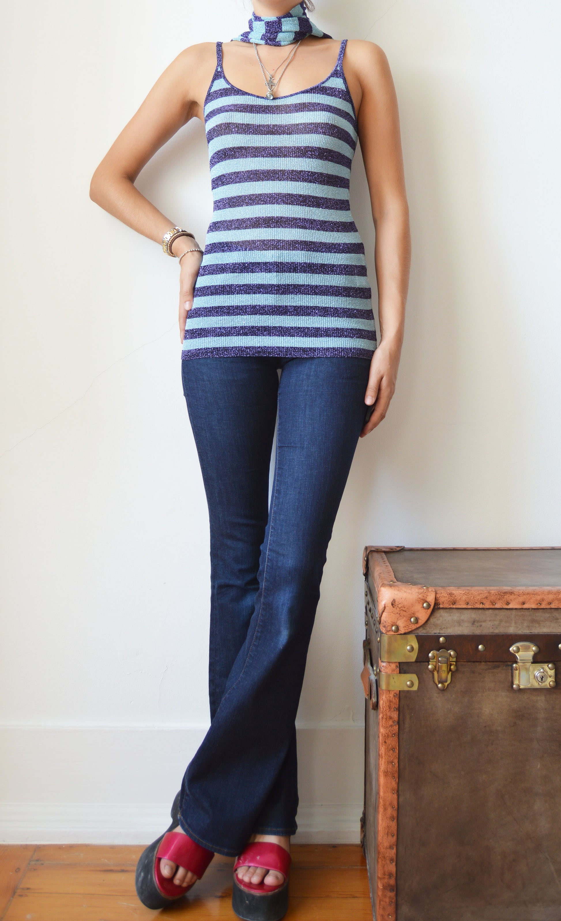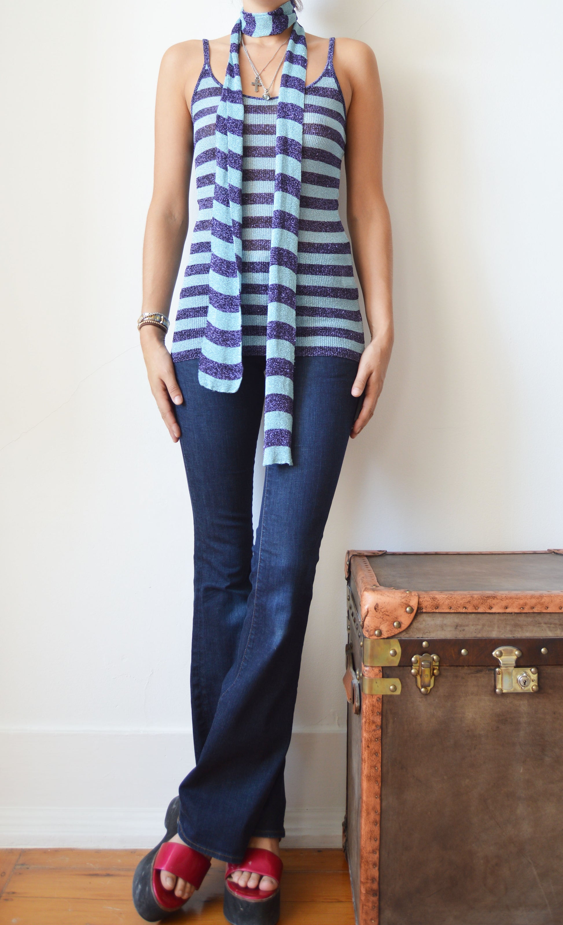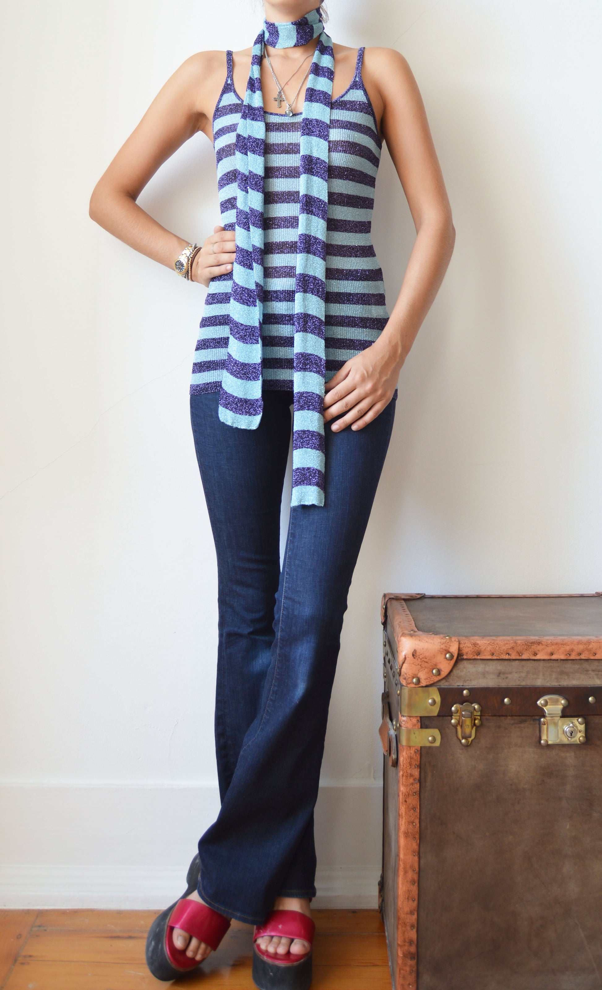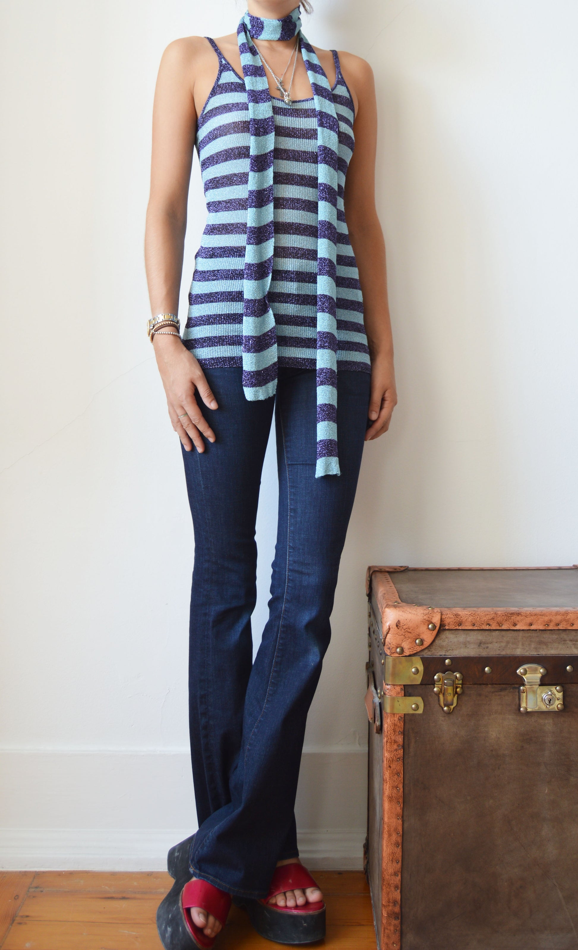 An absolutely gorgeous set comprised of a scarf and vest from the Dolce & Gabbana F/W 2000 collection. The size on the label is a 44 IT but it would fit also fit a size 42 IT very well and there is quite a bit of stretch in the fabric. It has been seen here on a size 40 IT, 5 7". The items are in perfect condition.