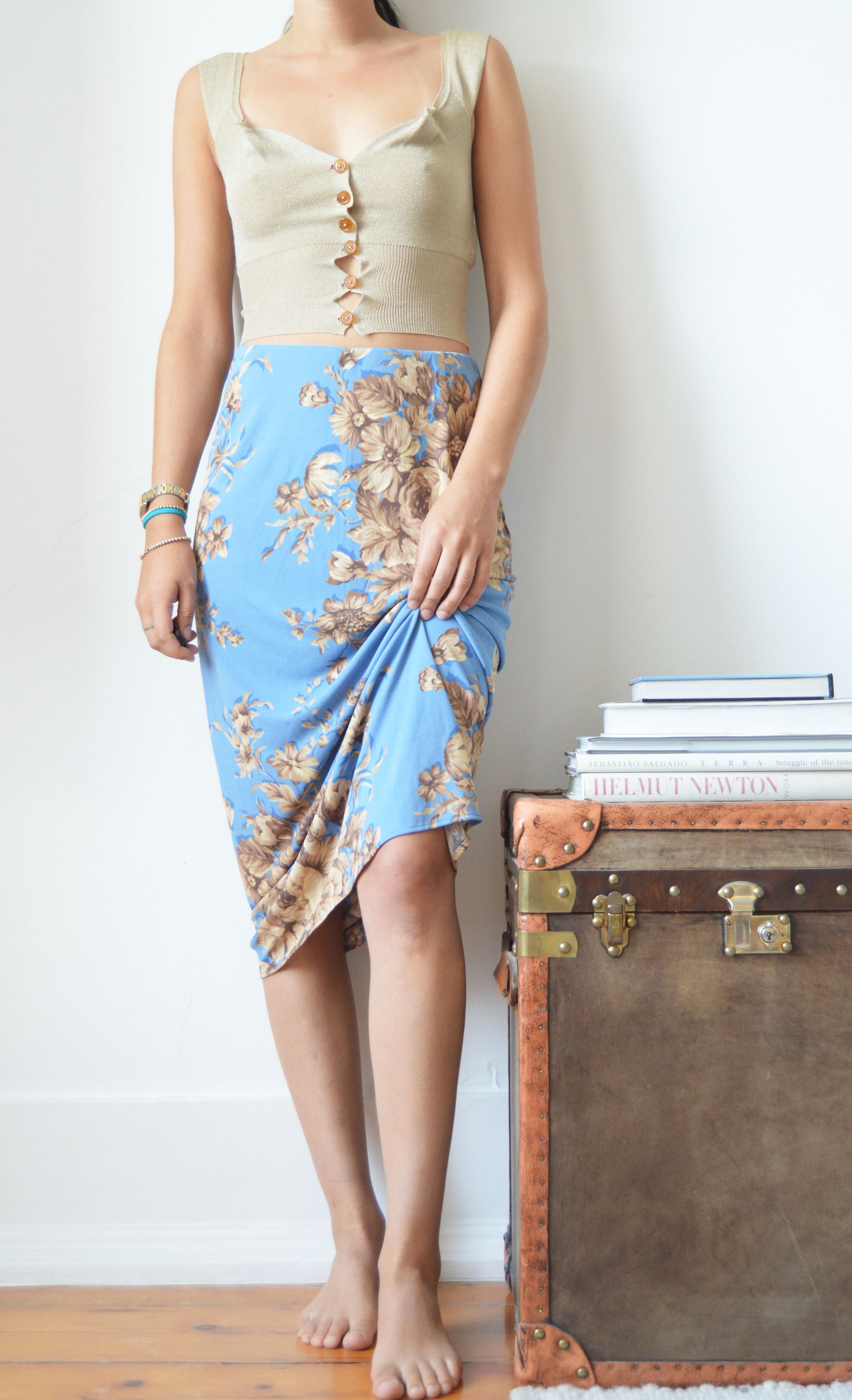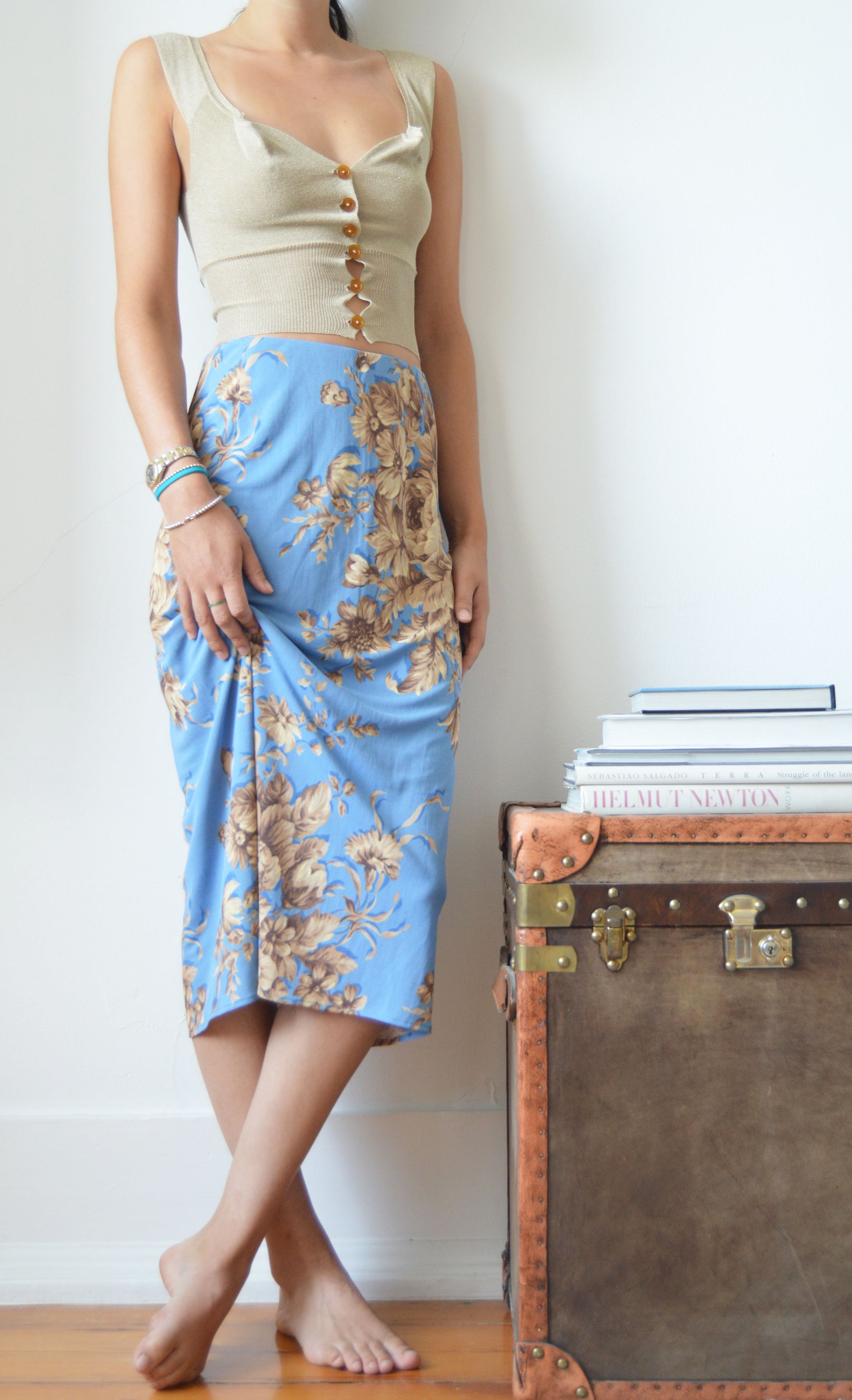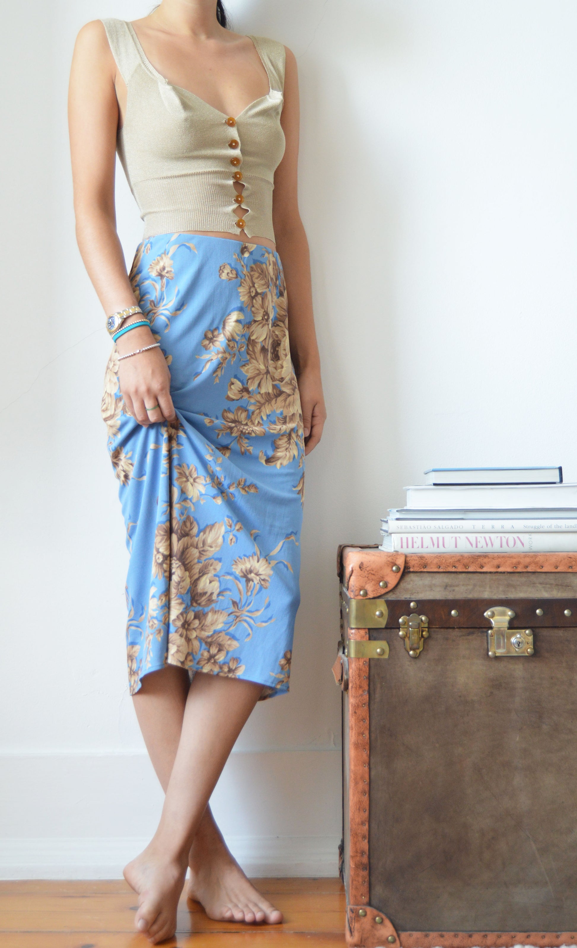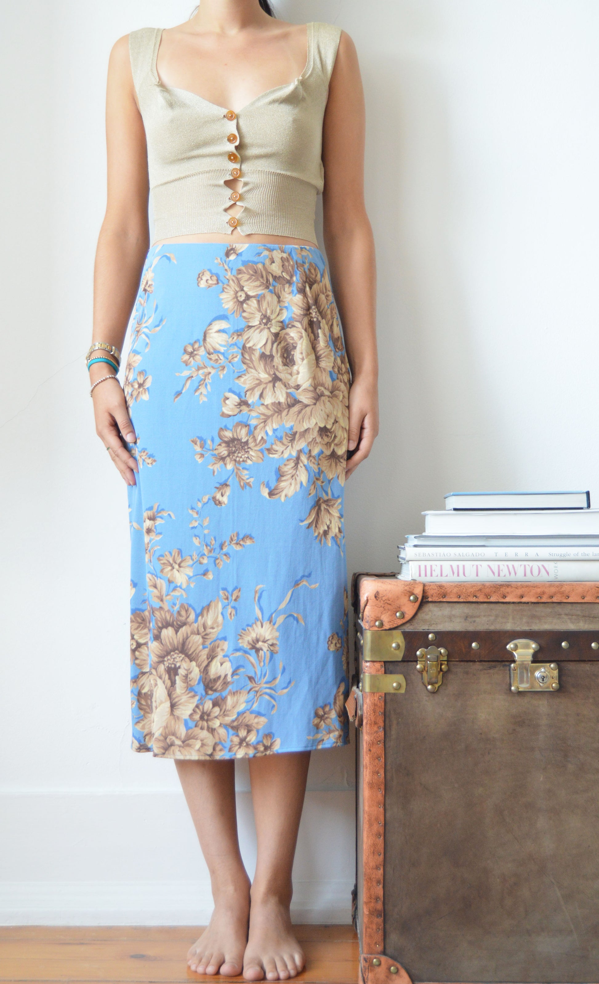 A gorgeous, vintage Dolce & Gabbana S/S 1997 floral midi skirt. The size on the label is a 42 IT (10 UK) and it has been pictured here on a size 40 IT, 5 7" and still fits quite well. Please refer to the measurements below for further information. The skirt is in great condition.
