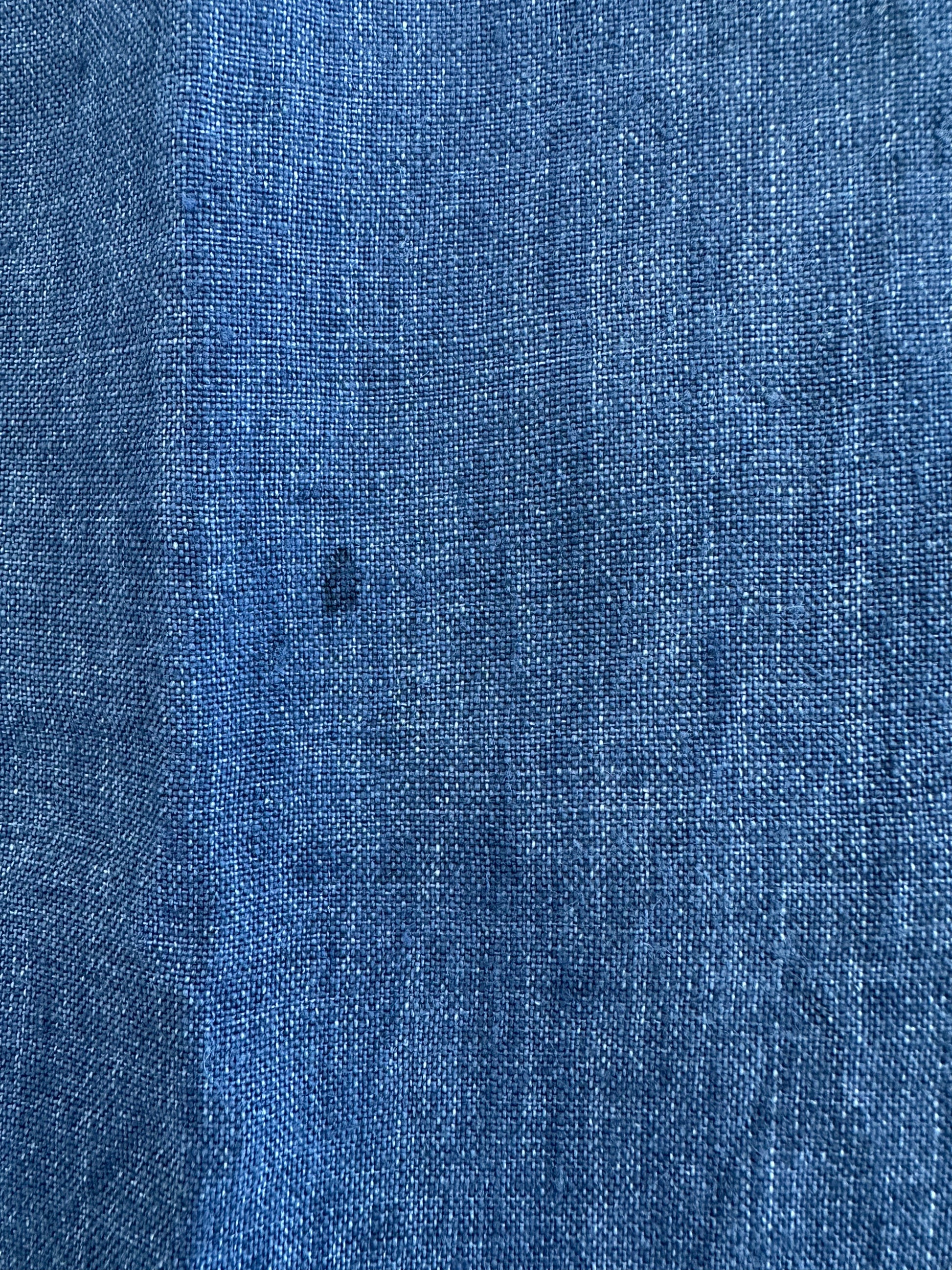 A gorgeous Gaultier Jeans linen wrap skirt in a lovely blue tone. The size on the label is a M and it has been pictured here on a size 40 IT, 5 7". It is in overall good condition apart from one mark, which has been pictured.