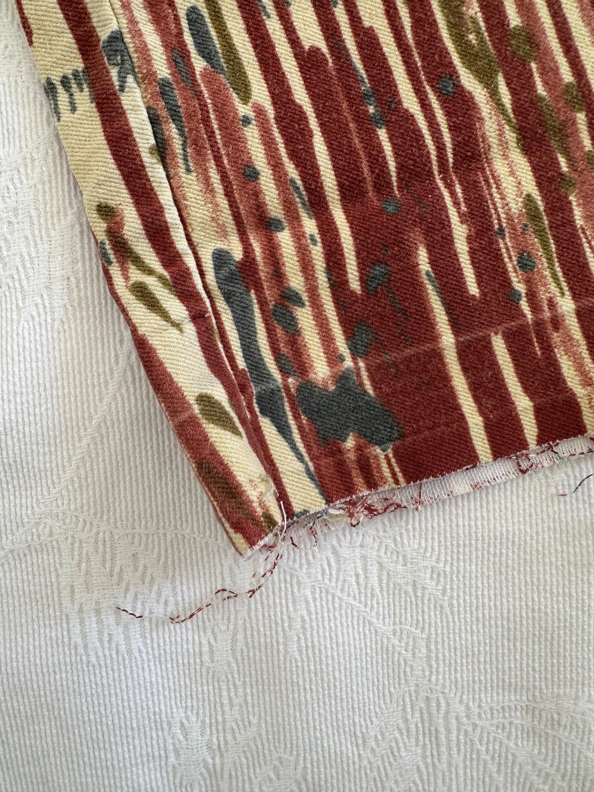 A wonderful pair of vintage Gaultier Jeans with a paint splatter design. The size on the label is a M but they come up a little smaller so please refer to the measurements below. Pictured here on a size 40 IT, 5 7". In good condition apart from a small snag and being un-hemmed.