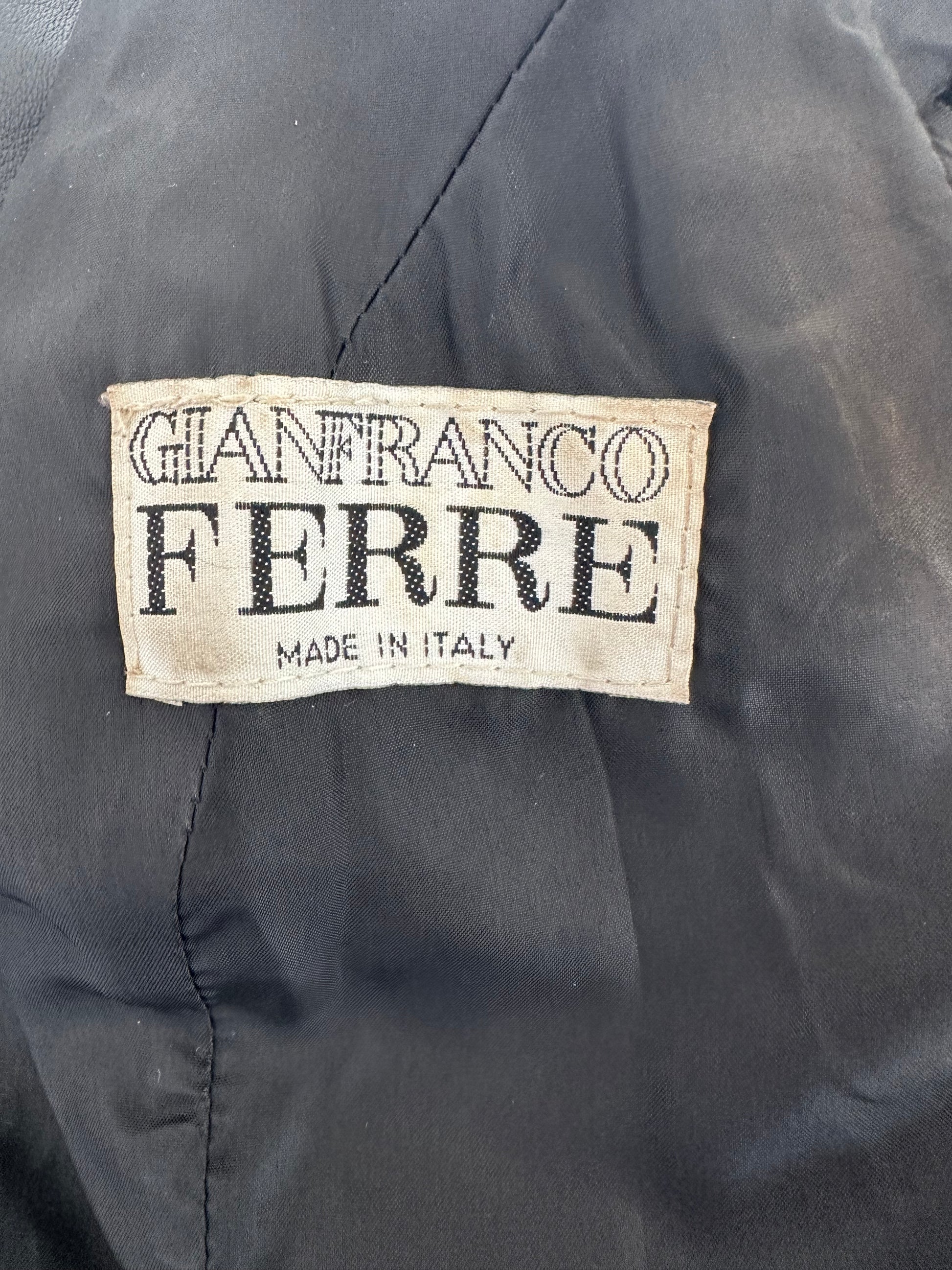 A fabulous Gianfranco Ferré leather jacket with decorative buttons on the sleeves and the main part of the jacket. The size on the label is a 44 IT and it has been pictured here on a size 40 IT, 5 7". The jacket is not in the best condition, with marks and the ripped at the armpits inside. But it still has life as a very cool piece.