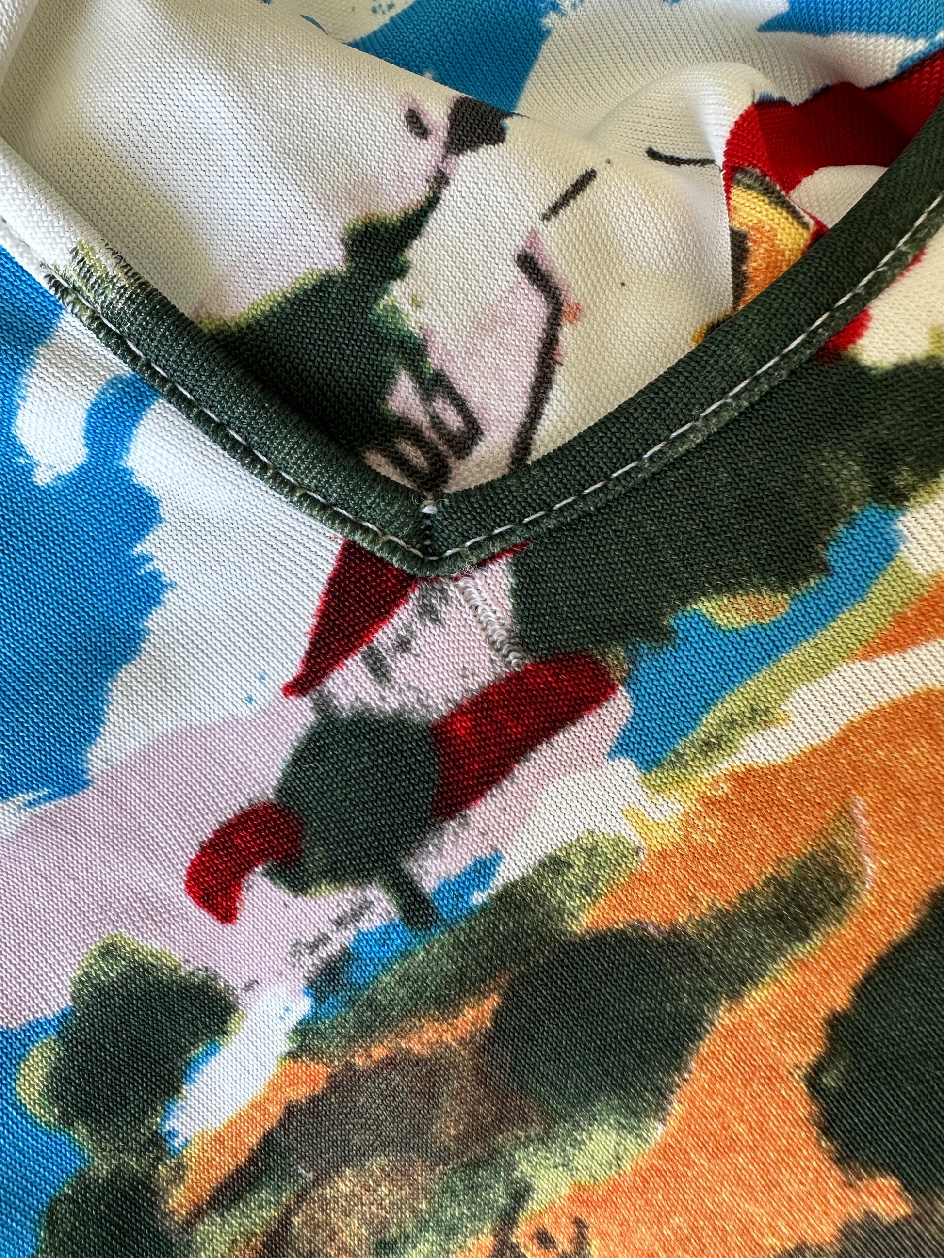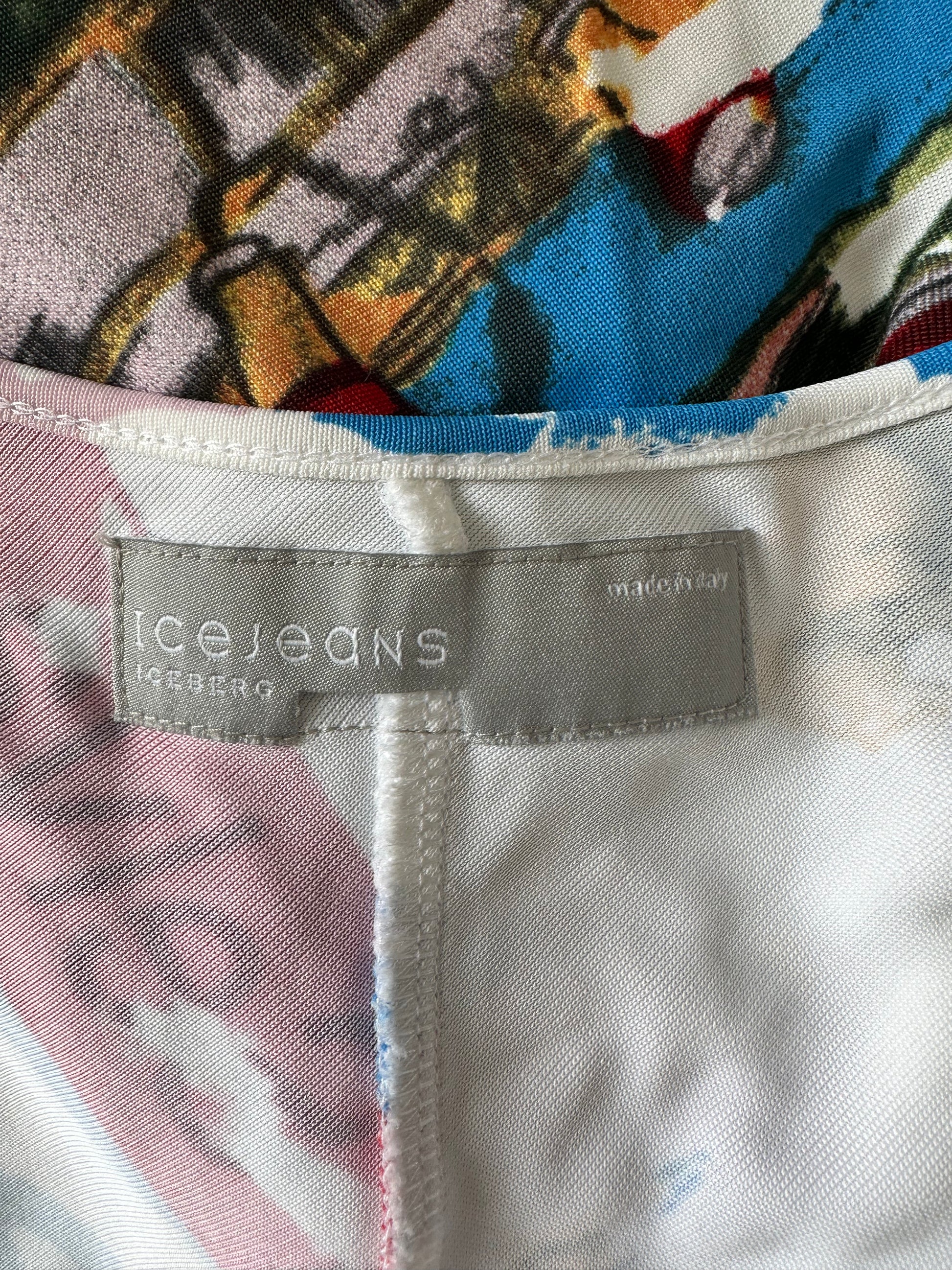 A funky Iceberg Jeans halter neck dress with an abstract city print. There is no size label on the piece, and it has been pictured here on a size 40 IT, 5 7" and fits well. Please refer to the measurements below for further information. In good condition, apart from the missing fabric and size labels and one tiny fabric run which has been pictured.