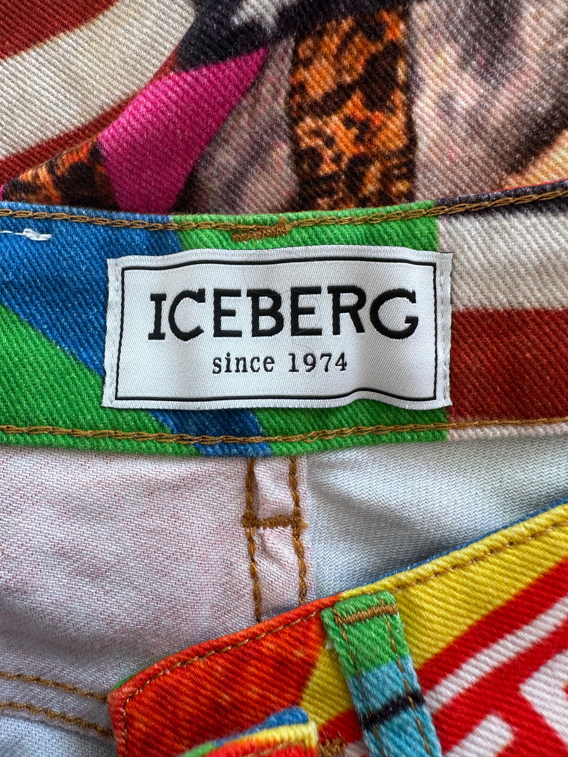 A very funky pair of Iceberg x Peter Blake jeans from S/S 2020. The size on the label is a 28 and they have been pictured here on a size 40 IT, 5 7" and they are a little large on the waist. Please refer to the measurements below for more detail. The jeans are high waisted, with a tighter leg.