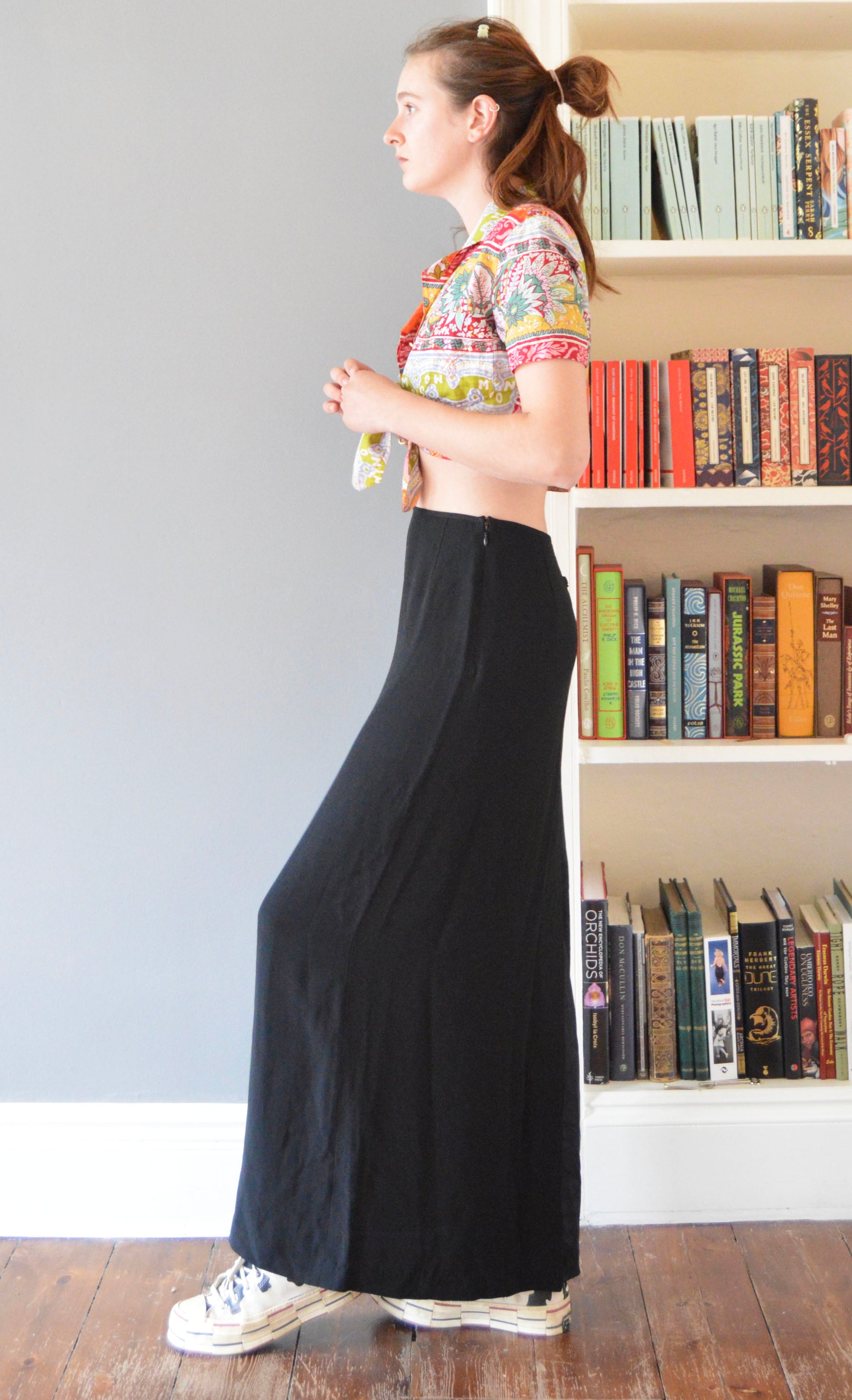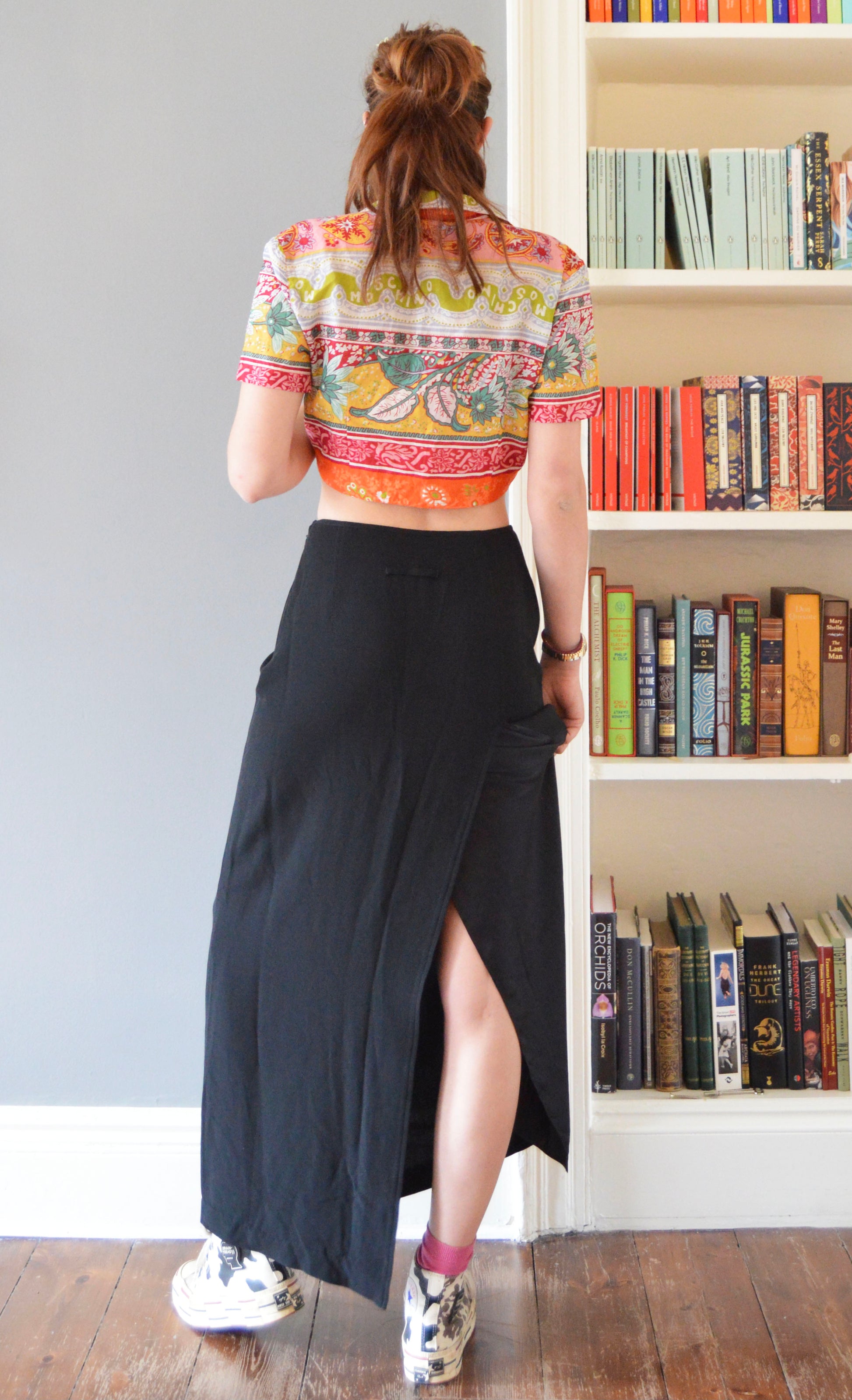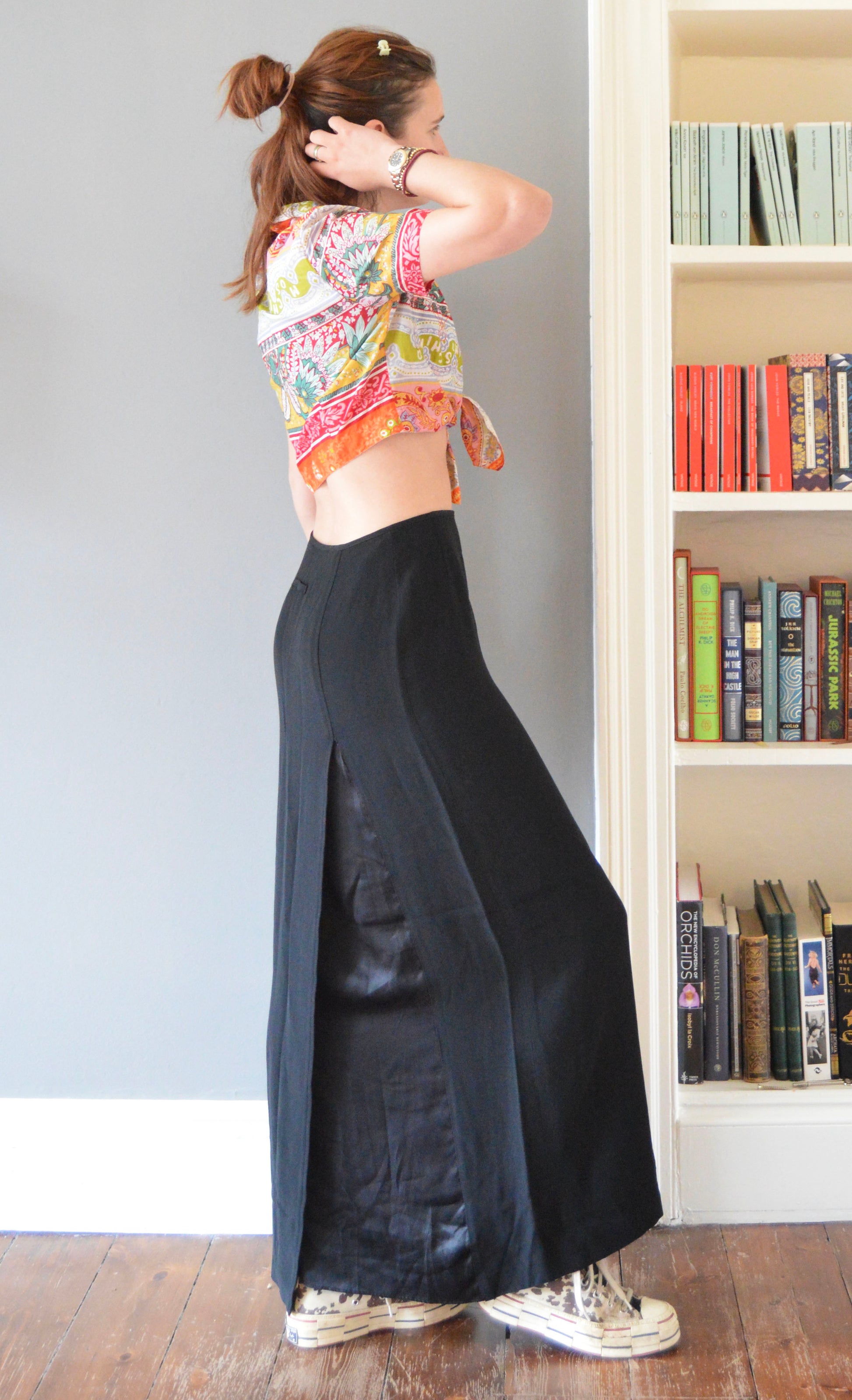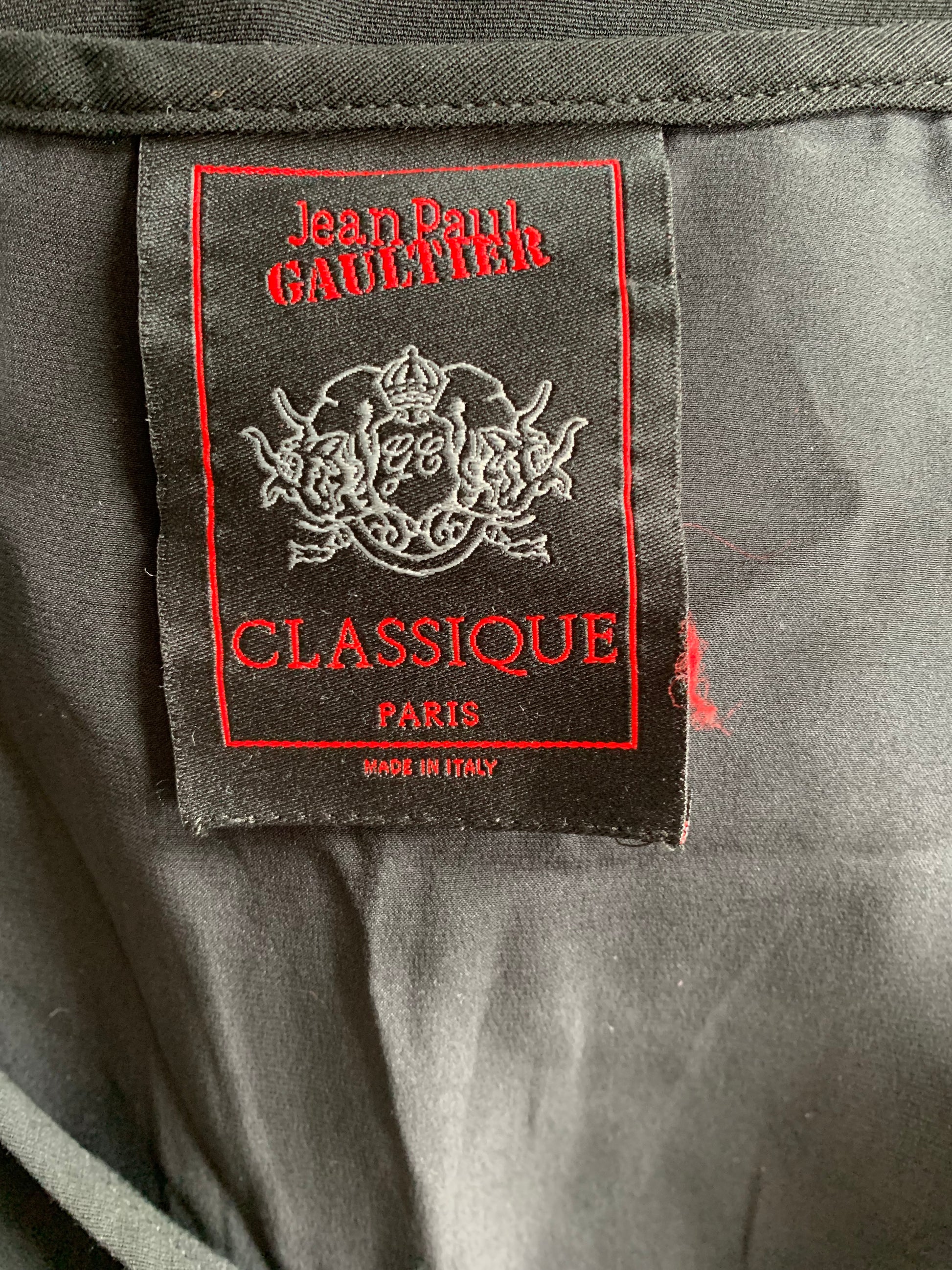 Beautiful vintage Gaultier Classique simple black skirt. That being said, there is a lovely silk insert being used to add contrast to the slit on the back. Please refer to the images for more details of this. The size on label states that it is a 10 UK, and it has been pictured here on a size 8 UK, 5 7". Please refer to the measurements below for more accuracy.