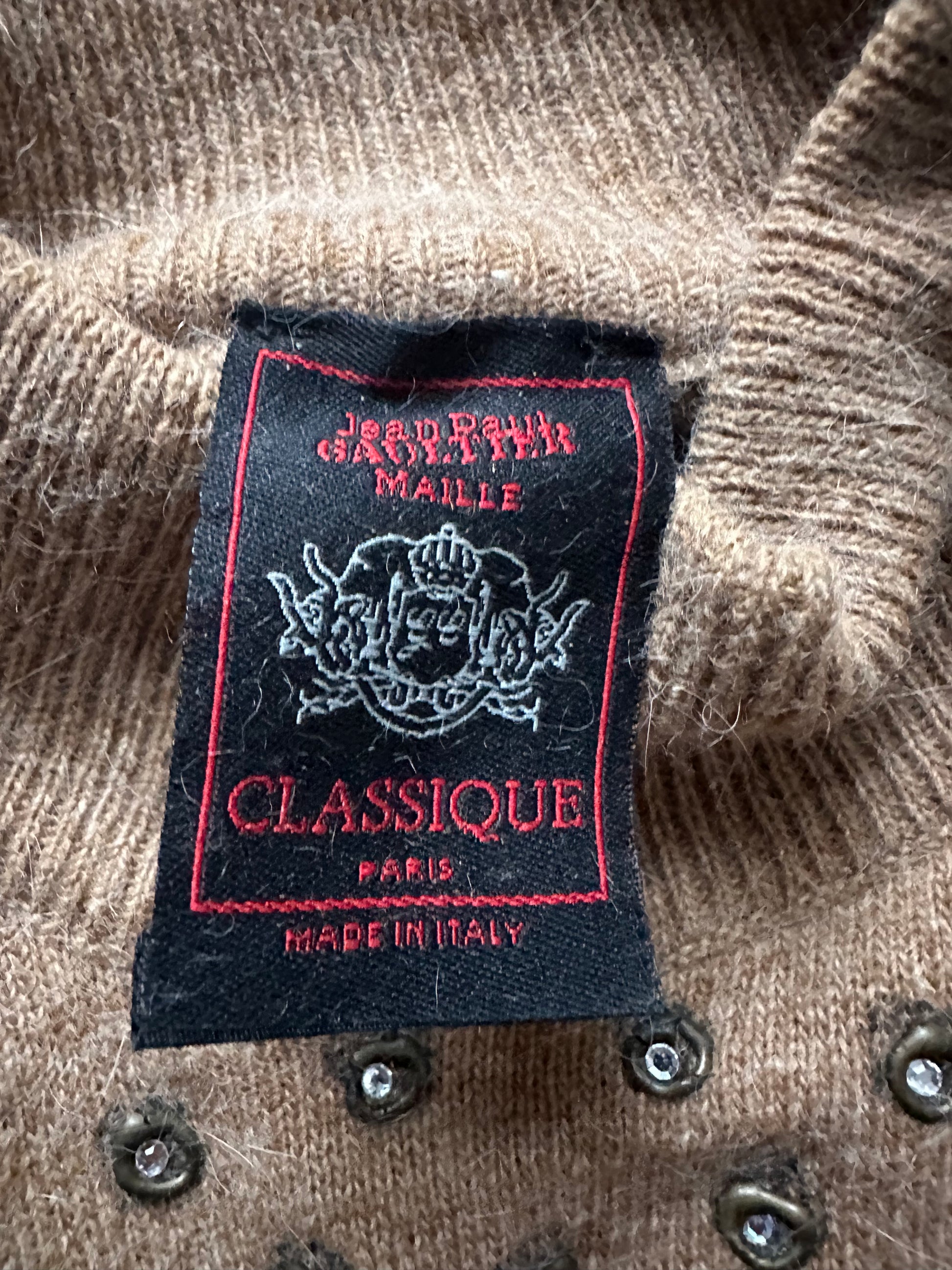 A lovely, vintage Jean Paul Gaultier Classique knitted tank top featuring crystals surrounded by metal rivets. The size on the label is a M, and it has been pictured here on a size 40 IT, 5 7" so please refer to the measurements below for more detail. The piece is in perfect condition.