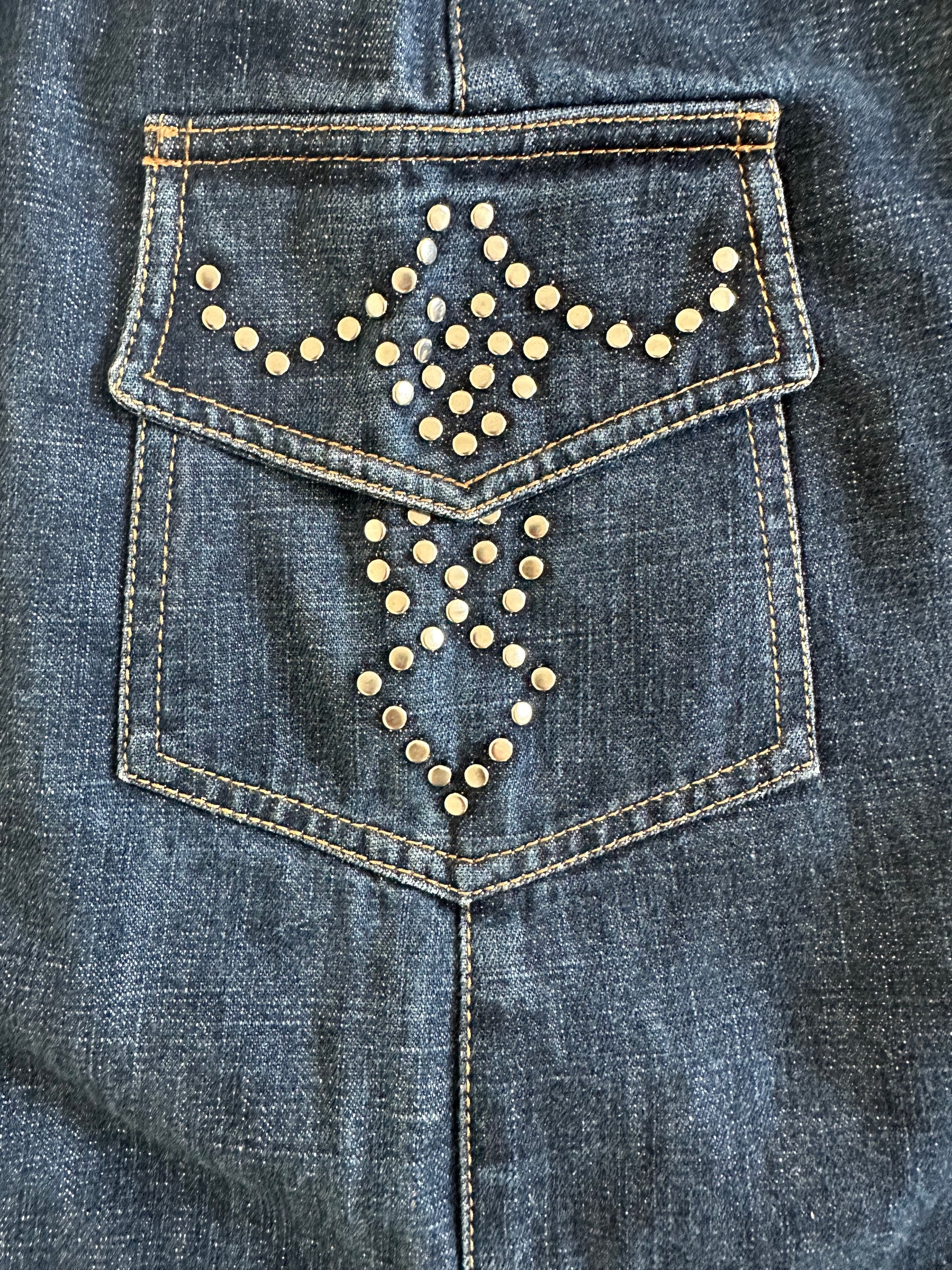 A gorgeous matching denim set by Kenzo Jeans consisting of a cropped jacket and a mid length skirt. The size on the skirt is a 40 FR and has been pictured here on a size 36 FR, 5 7". Unfortunately the jacket does not have a size label and definitely fits smaller so please refer to the measurements below. Both pieces are in great condition with only general fading from age. If you are interested in one piece rather than both then please get in touch.