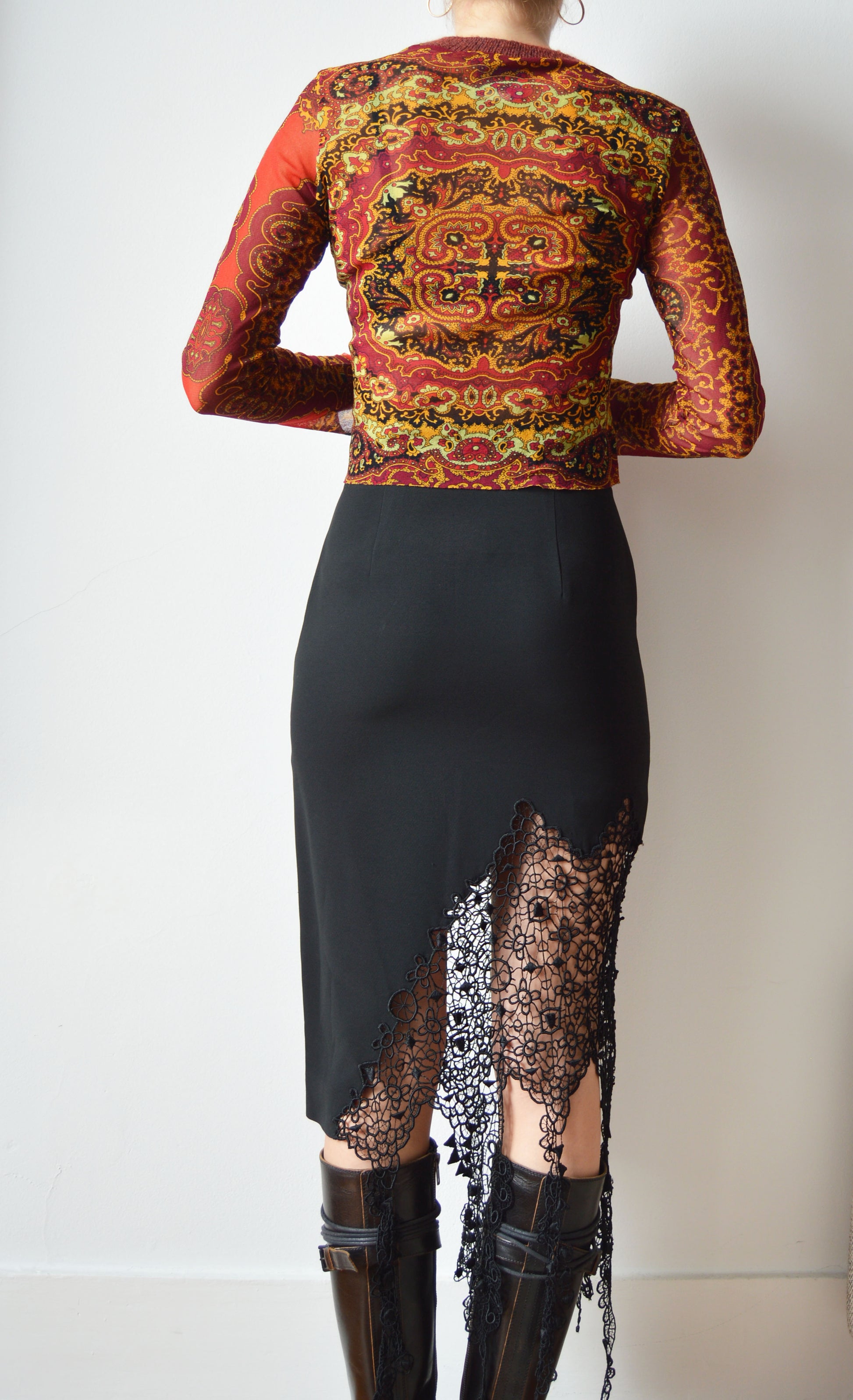 A lovely, cropped Kenzo Jeans mesh long sleeved top with a wool collar. The item has been seen here on a size 40 IT, 5 7" but please refer to the measurements below as there is no size label. There is a lot of stretch to the item. In great condition with no flaws.