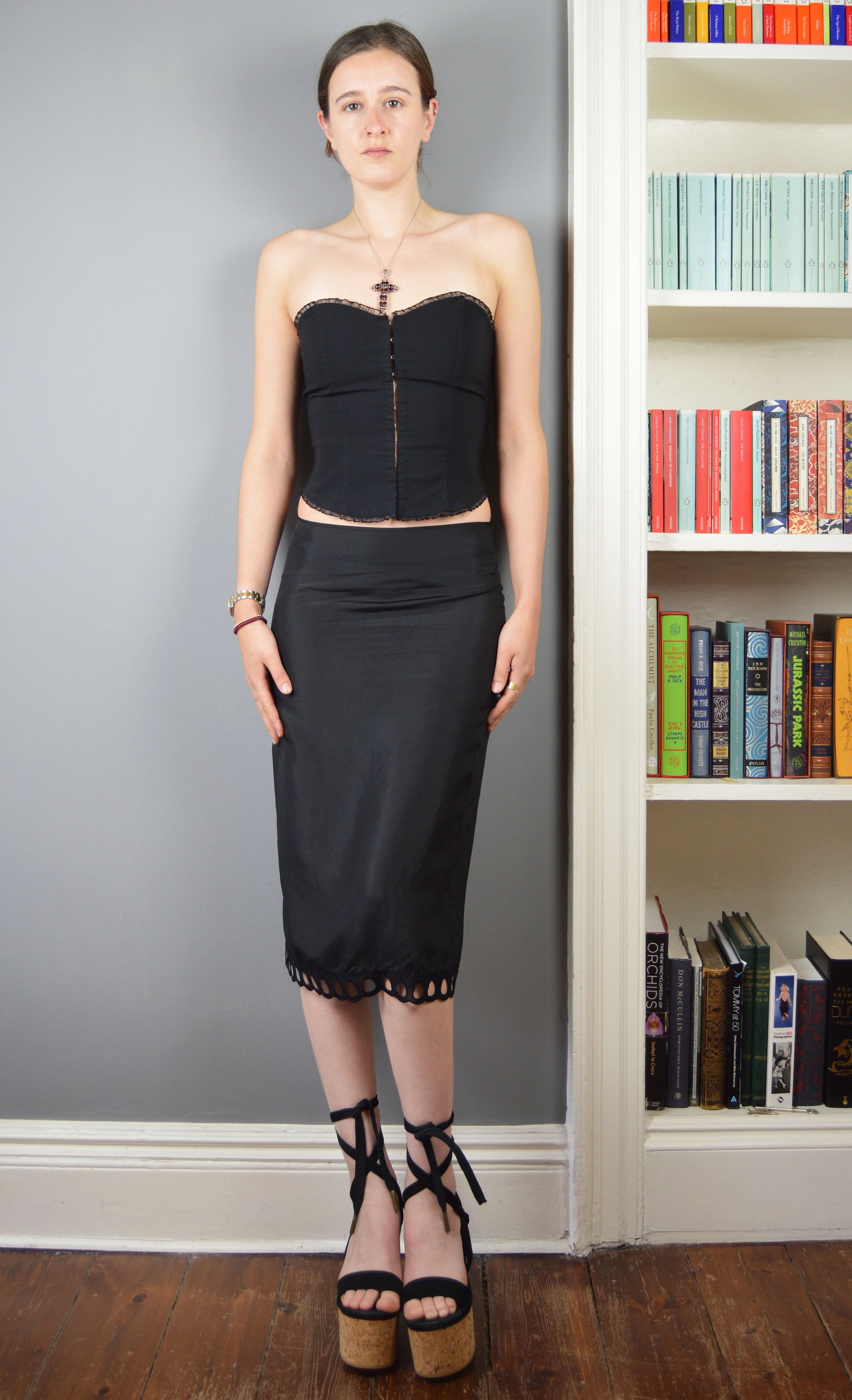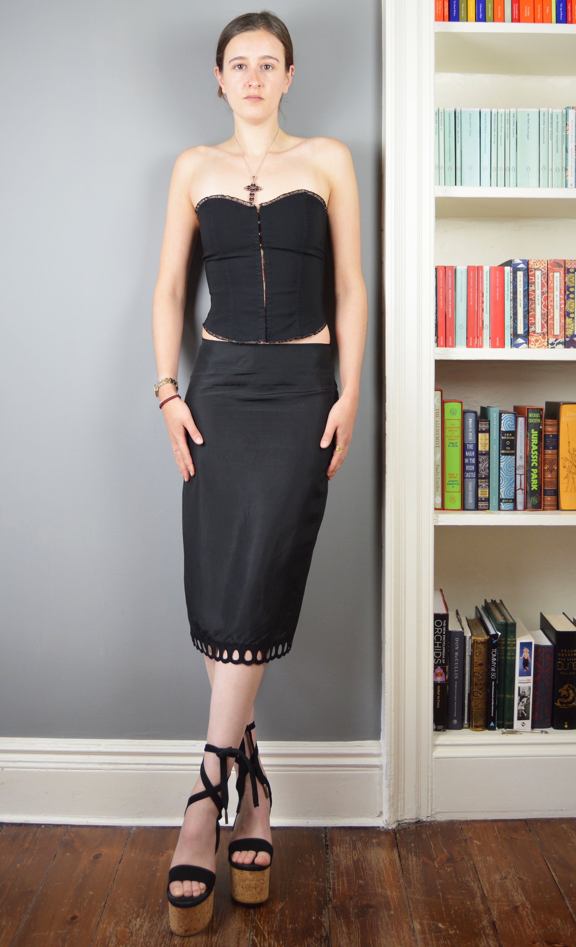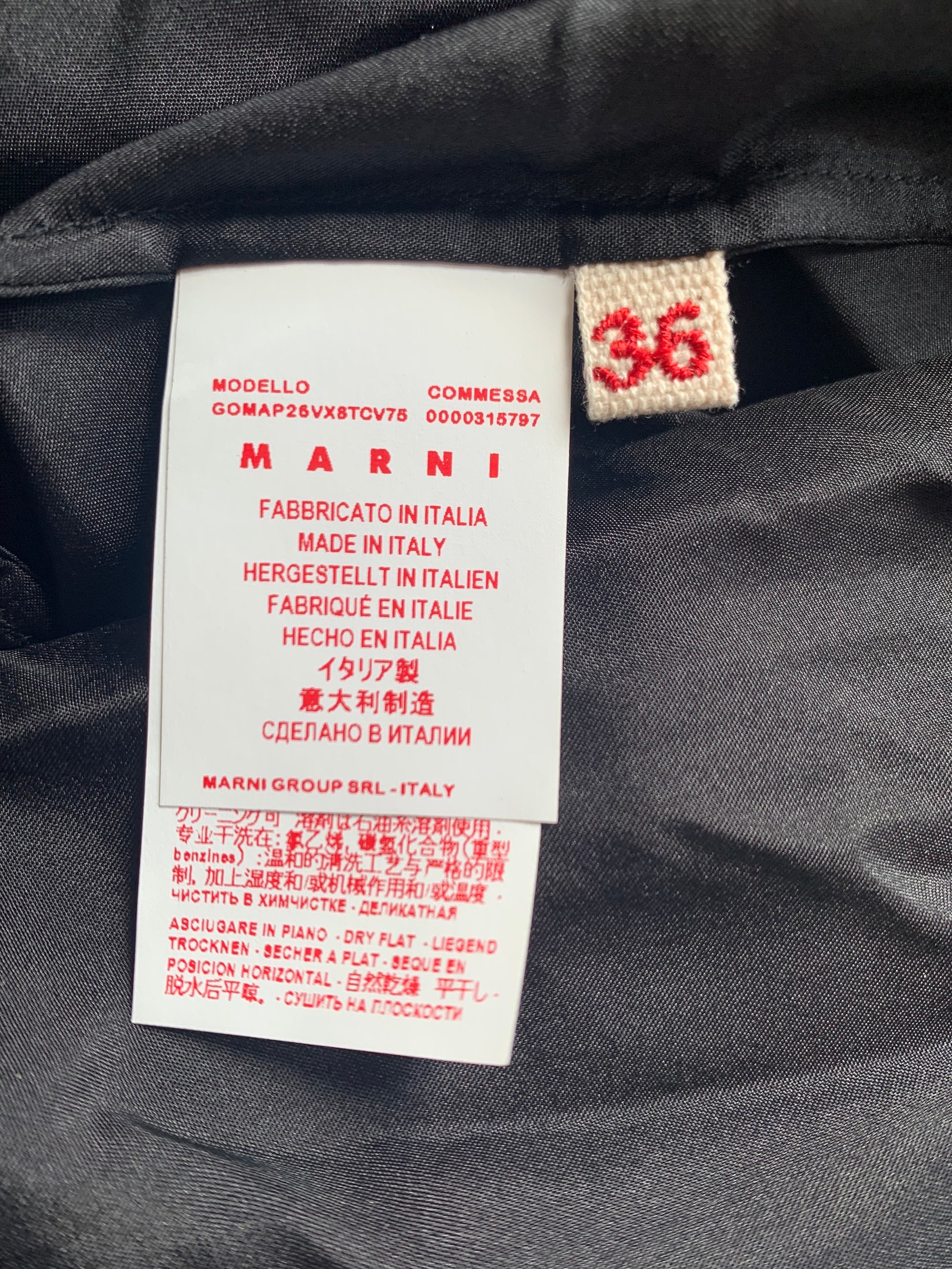 A lovely, black silk skirt from Marni. The size on the label is an IT 36 (4 UK), and the item has been pictured here on a 6/8 UK, 5 7", so it comes up slightly bigger. There are more detailed measurements below. The item is in great condition.
