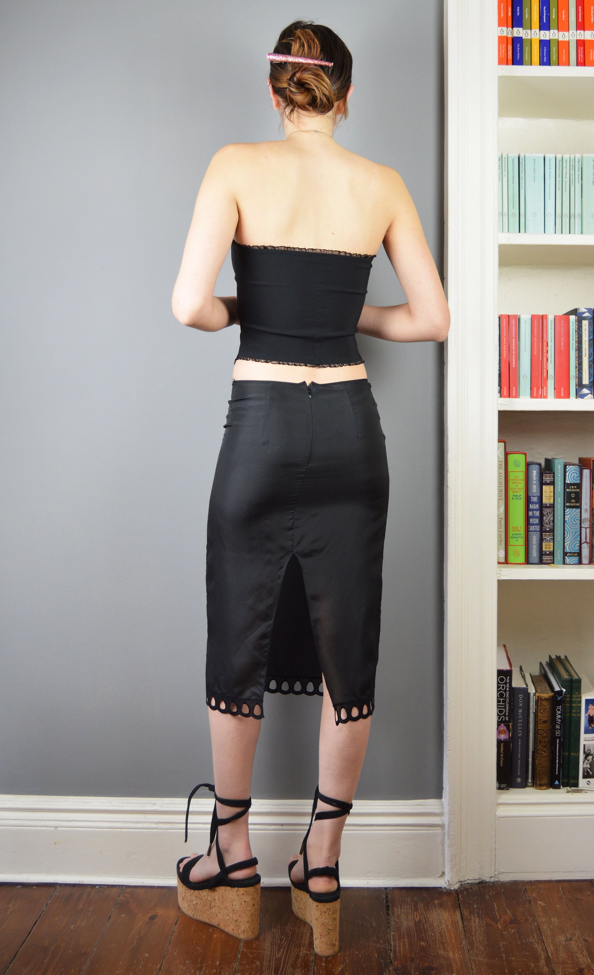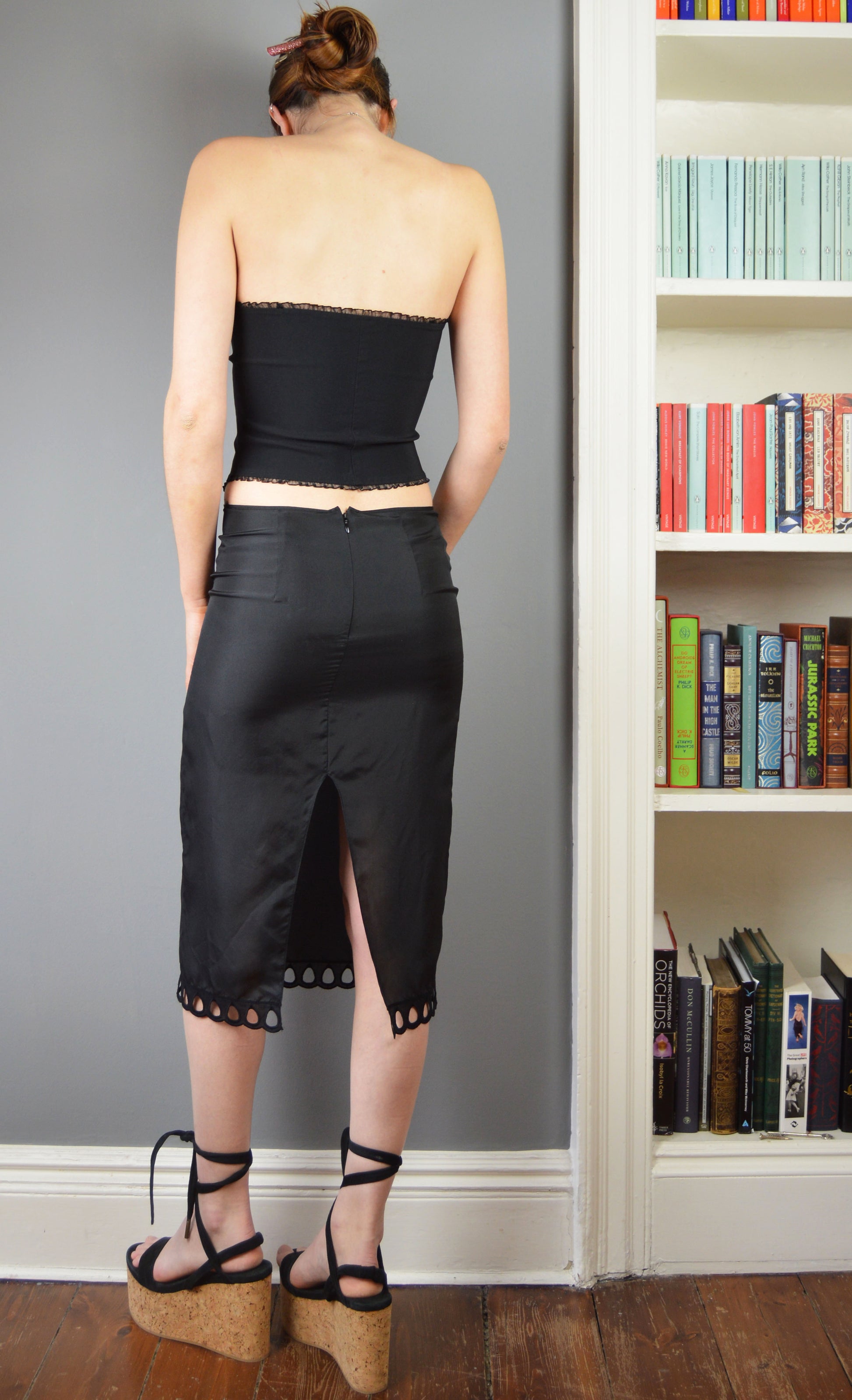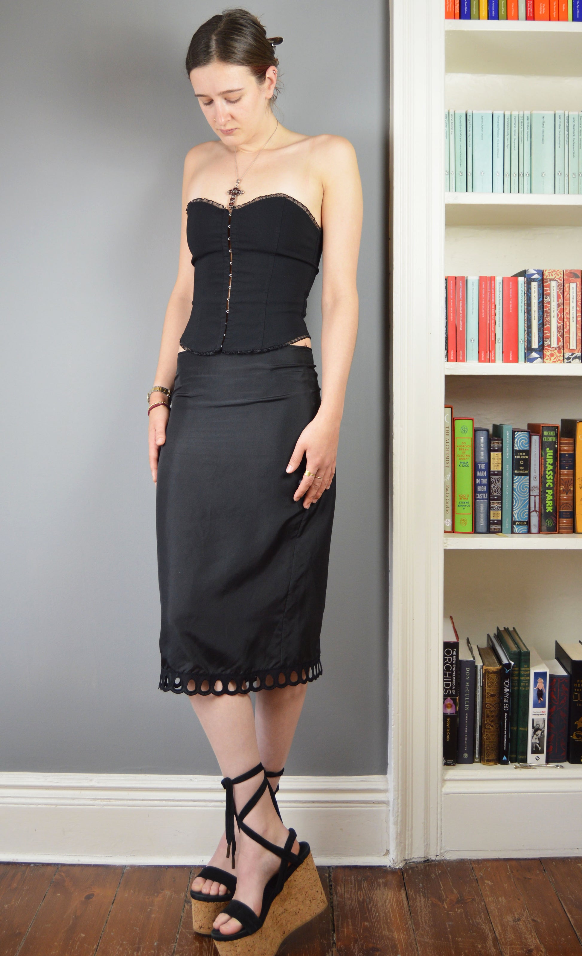 A lovely, black silk skirt from Marni. The size on the label is an IT 36 (4 UK), and the item has been pictured here on a 6/8 UK, 5 7", so it comes up slightly bigger. There are more detailed measurements below. The item is in great condition.