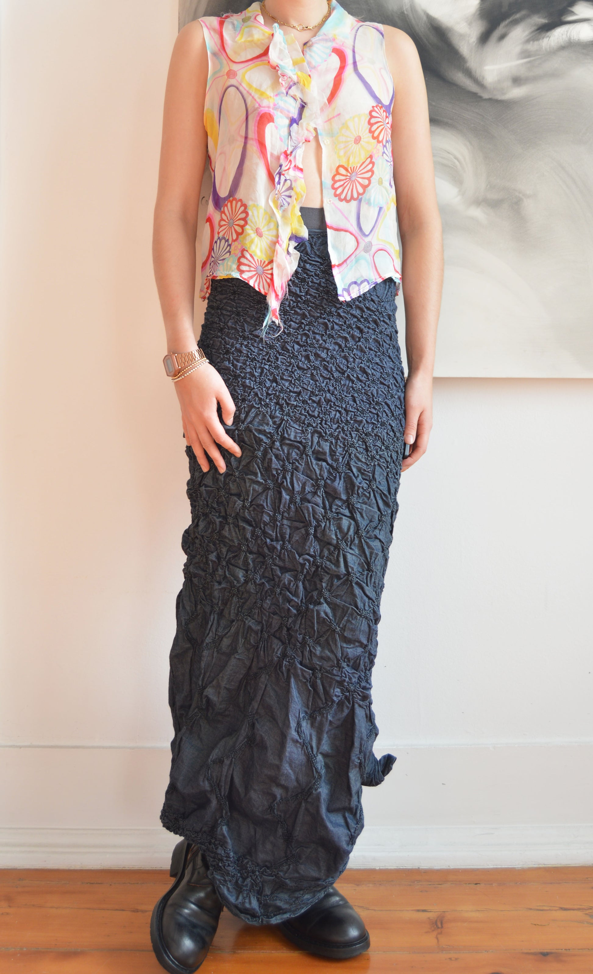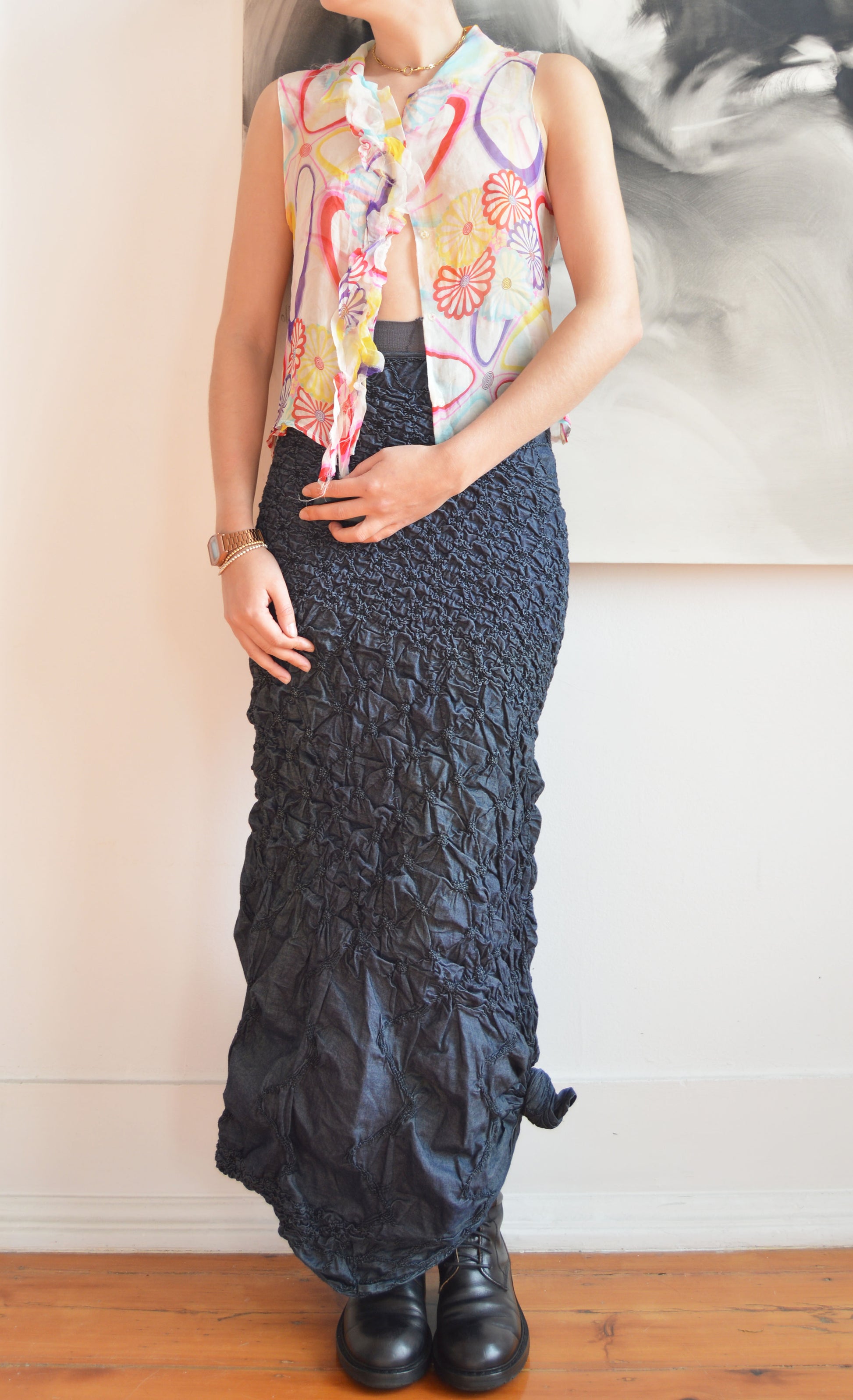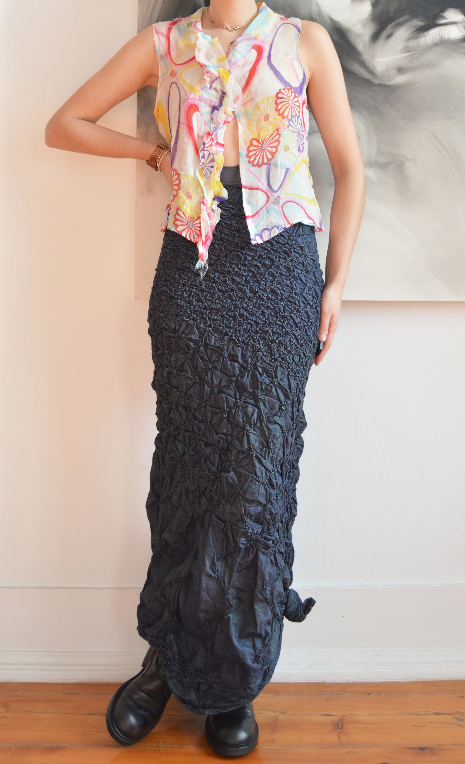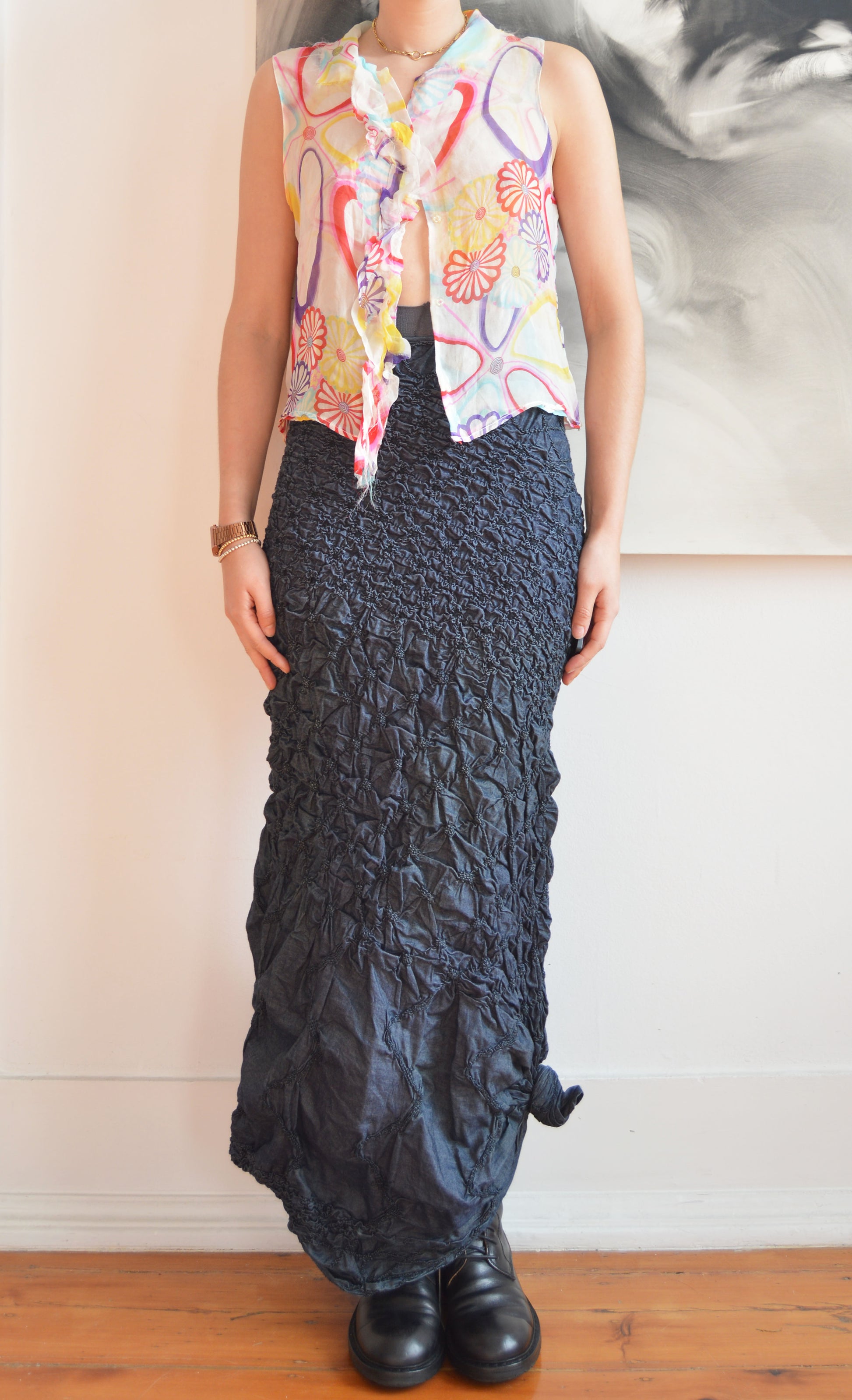 A gorgeous Marni S/S 2000 silk blouse. Unfortunately the brand label is missing but the pattern is well documented on the runway. Otherwise the item is in perfect condition. It has been pictured here on a size 40 IT, 5 7" and the size on the label is a 42 IT.