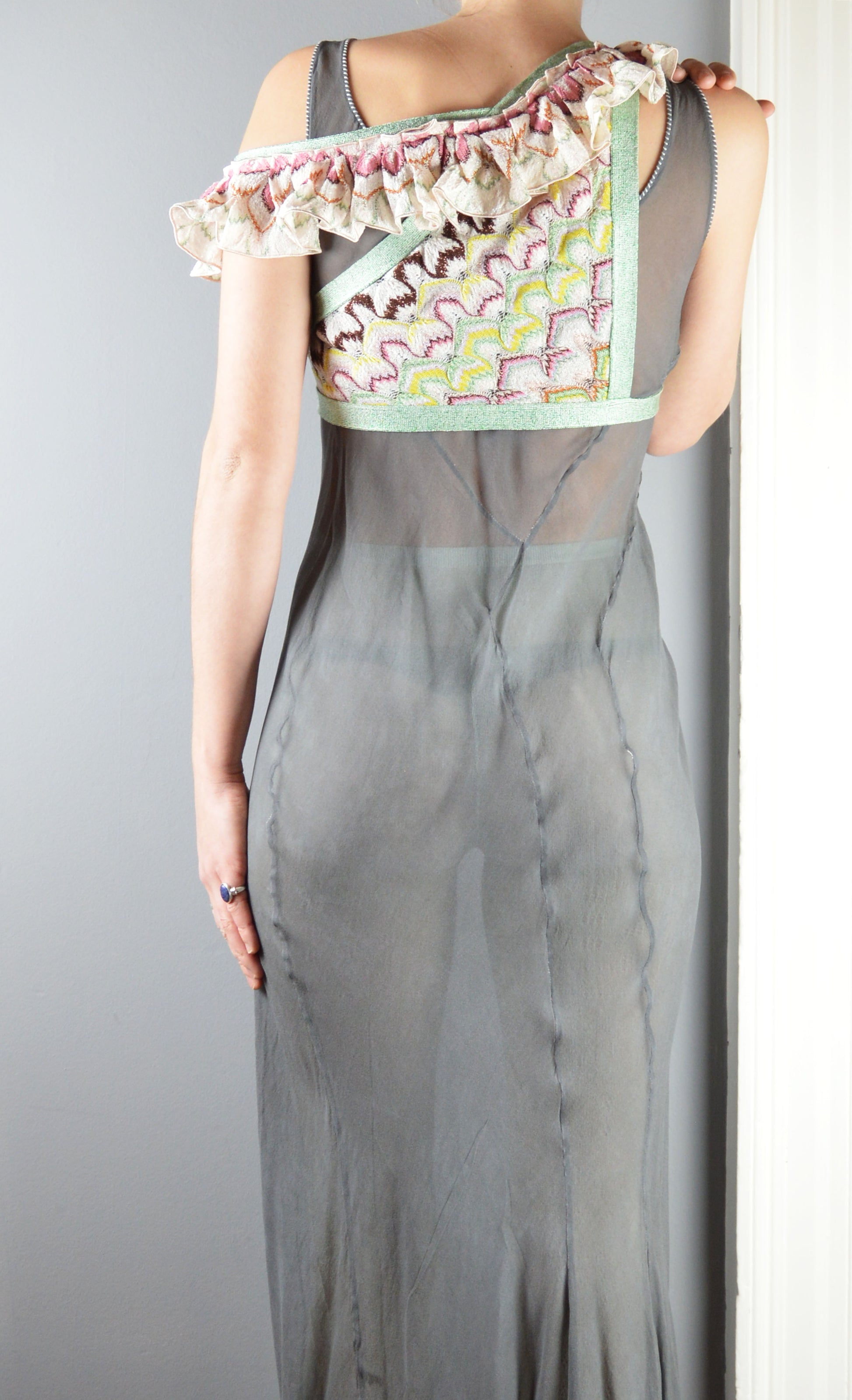 A gorgeous, Missoni crop top with cut out detailing at the side as well as a ruffled off the shoulder strap. The size on the label is a 40 IT (8 UK) and it has been pictured here on a size 6/8 UK, 5 7" and fits very well but please refer to the measurements below for more information. The piece is in perfect condition.