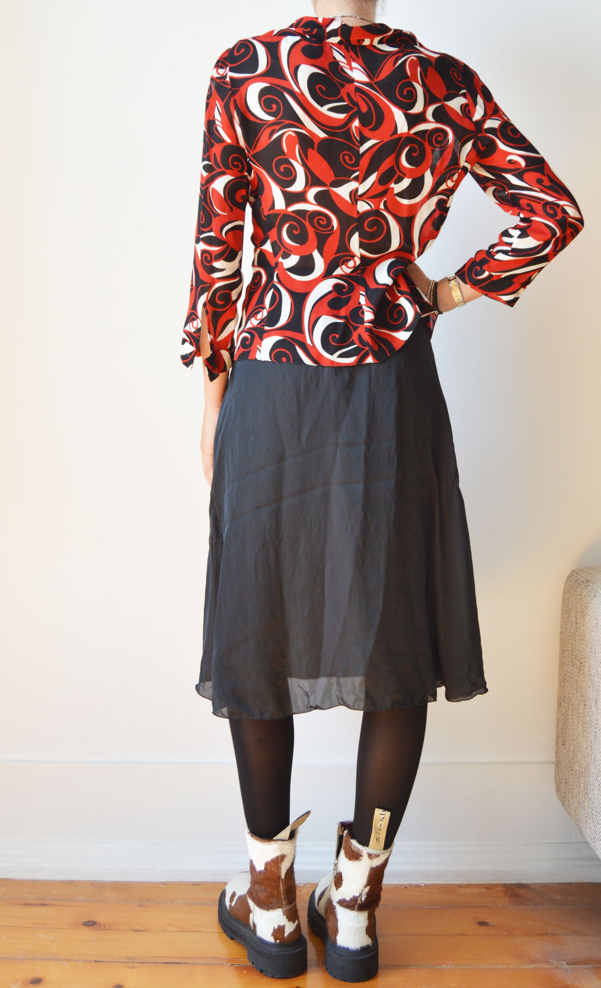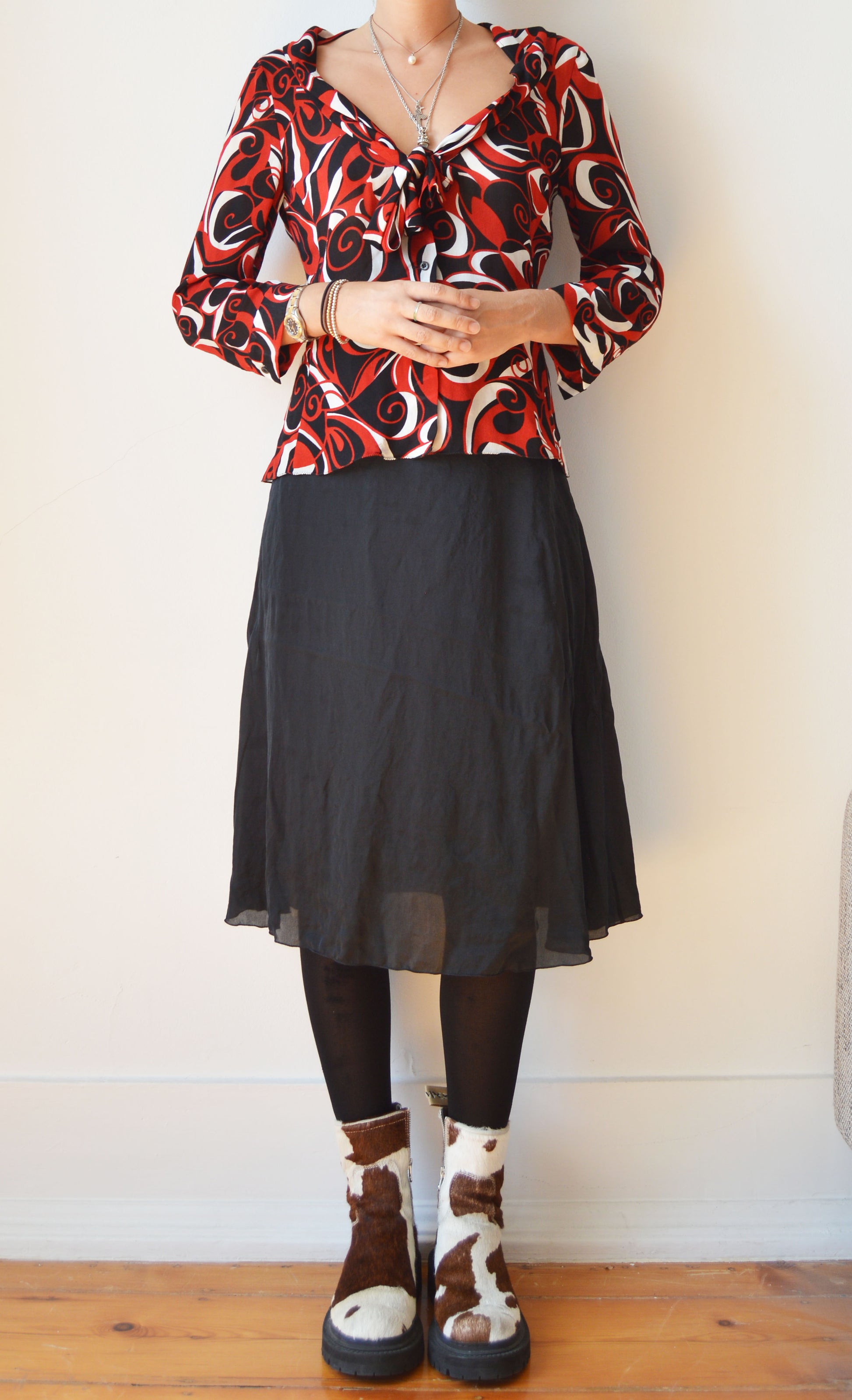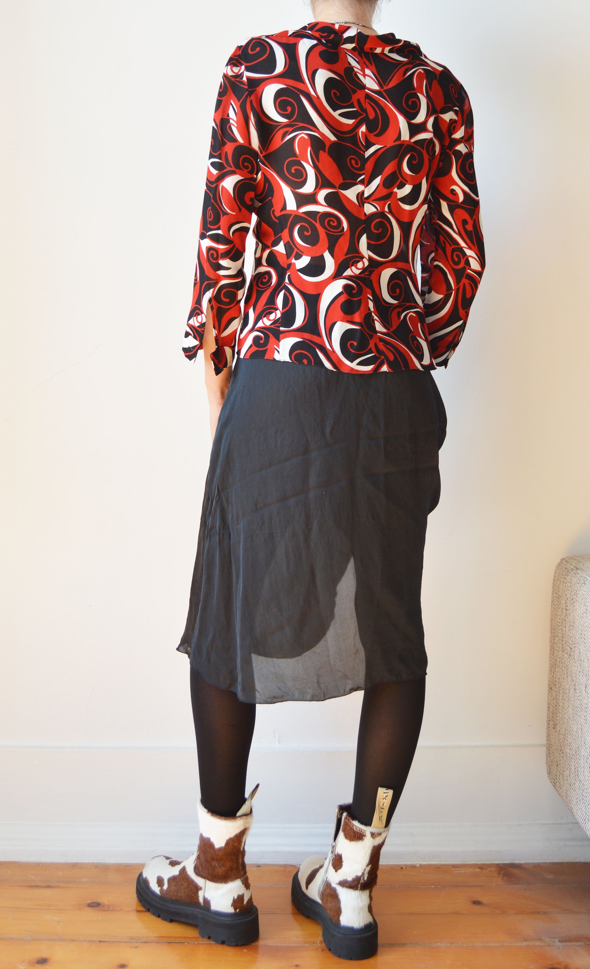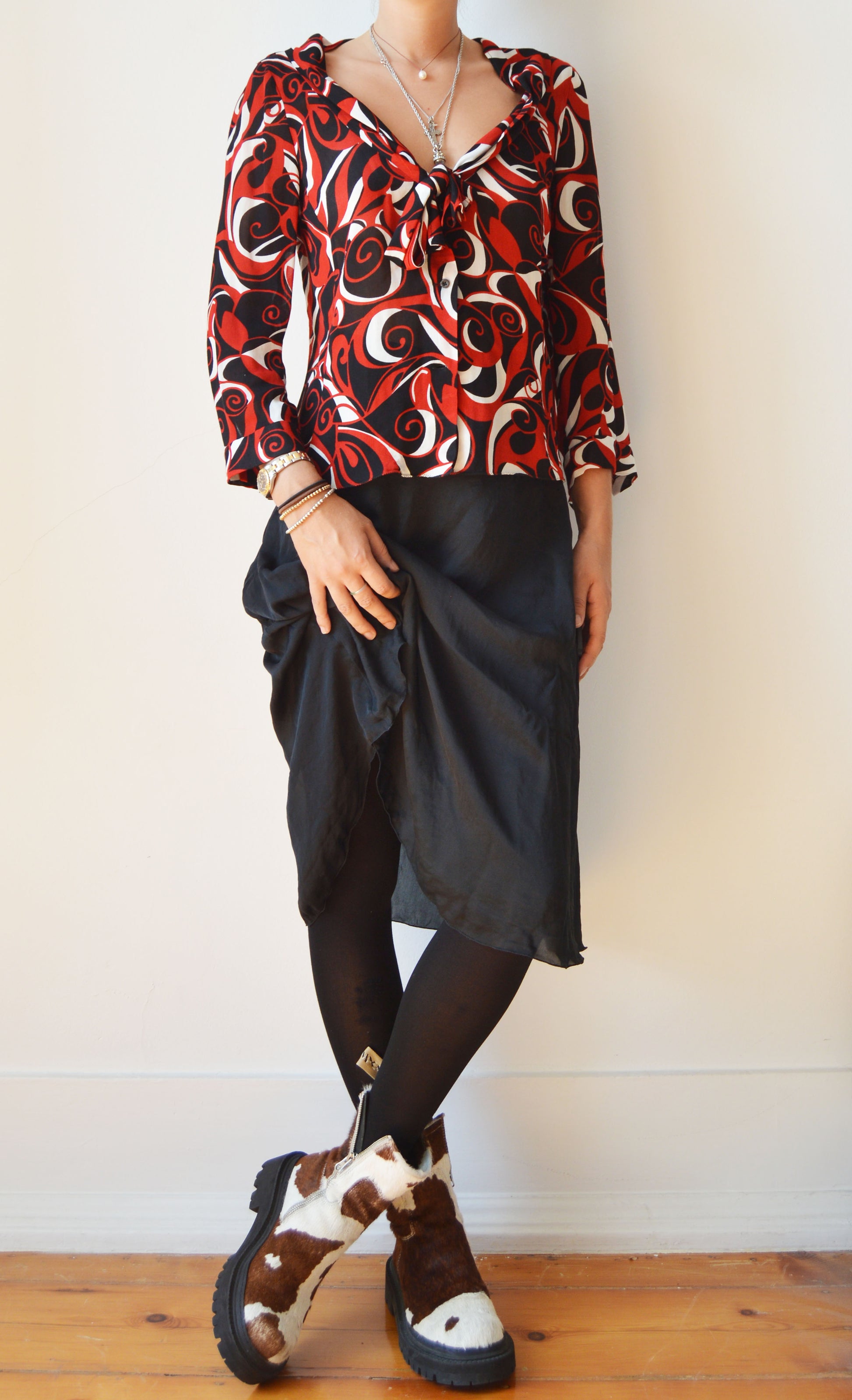 A lovely, vintage Miu Miu blouse from F/W 2000. The same pattern was seen on the runway. The item is an IT 44 (12 UK) and it has been pictured here on a size 6/8 UK, 5 7". In great condition, with no flaws. Please refer to the measurements below for more information.
