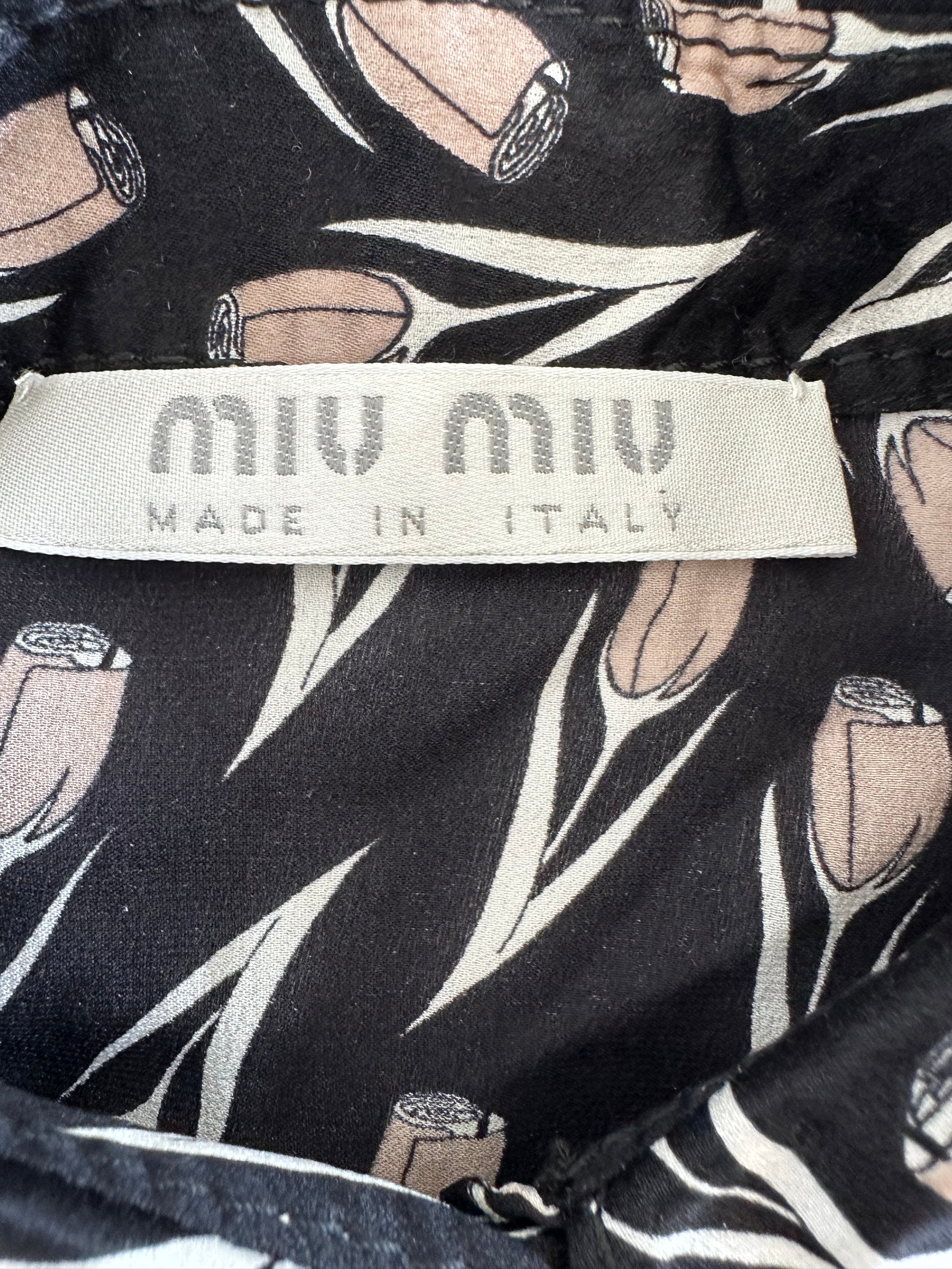 A gorgeous Miu Miu F/W 2000 silk blouse featuring a tulip print. The size on the label is a 42 IT, but it comes up smaller so please refer to the measurements below. The blouse has been pictured here on a size 40 IT, 5 7". In great condition.