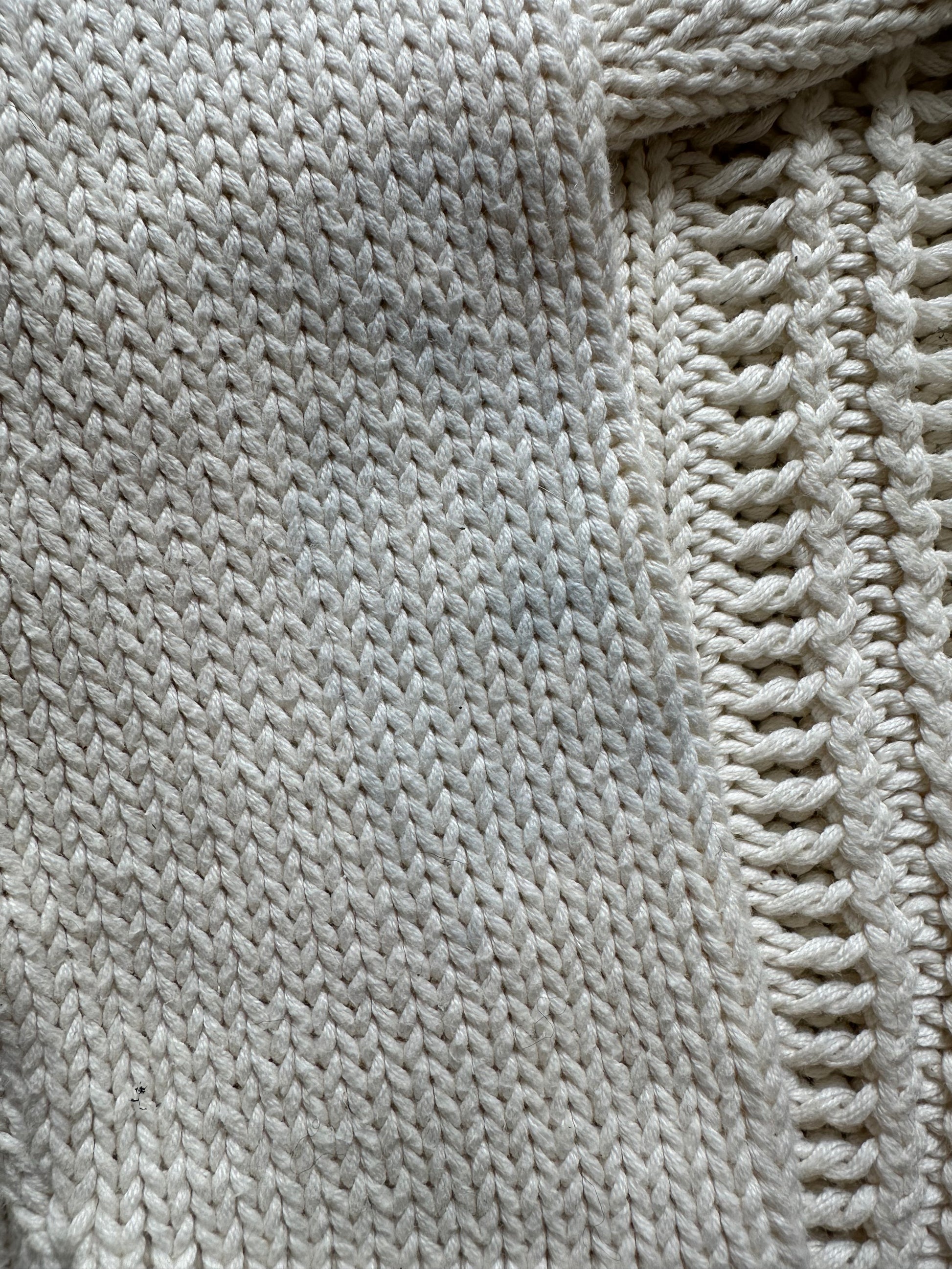 A wonderfully cosy, vintage Moschino jumper in a soft cotton. The size on the label is a M and it has been pictured here on a size 40 IT, 5 7" but please refer to the measurements below for further information. There are a couple of marks (one on the arm and one on the front), which have been pictured otherwise the piece is in good condition.