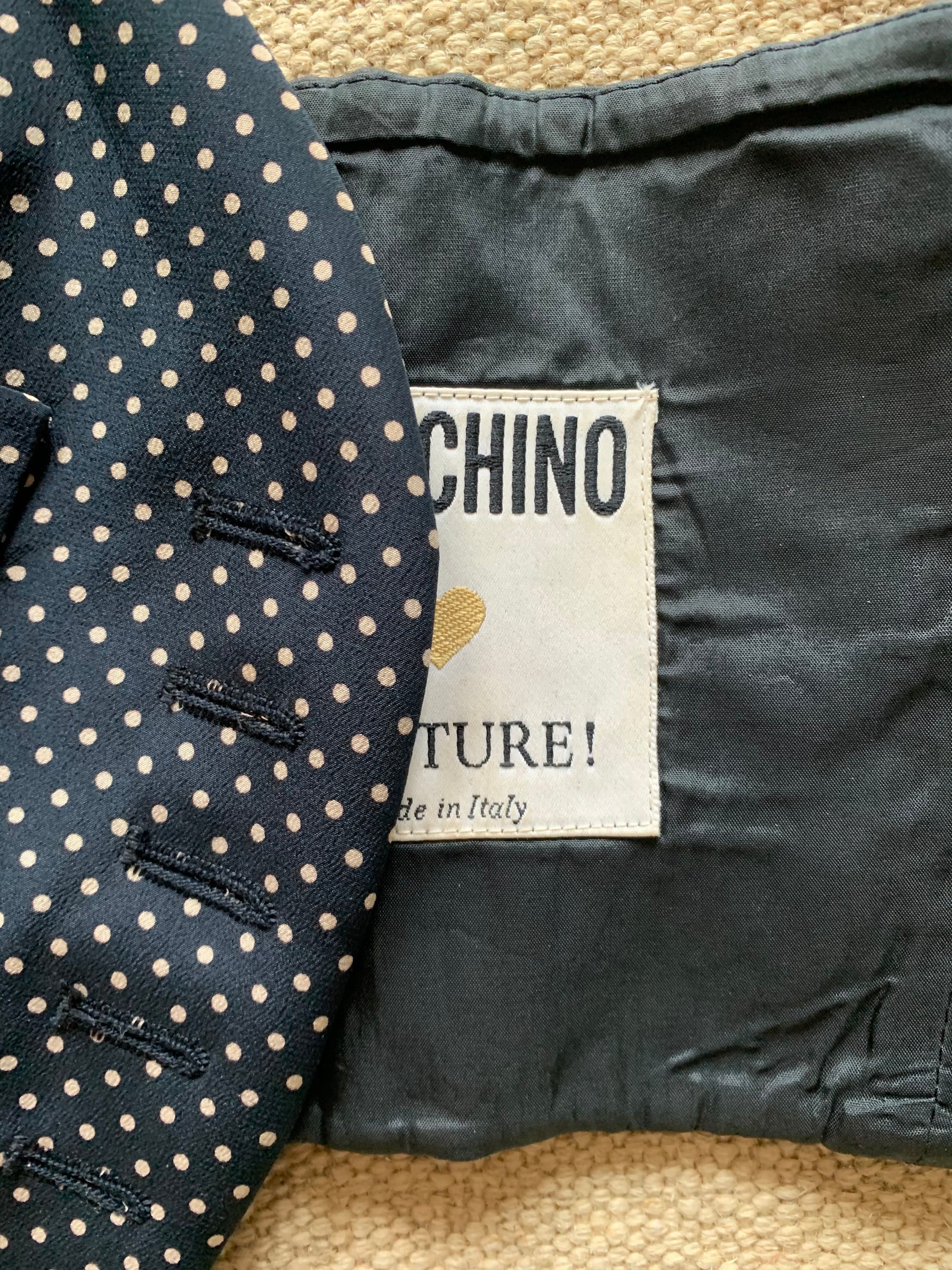Size on label is IT 42 (GB 10), but I would say it comes up smaller. It has been pictured here on a size 8 UK, 5 7". The item unfortunately, has lost all buttons bar one. It is secured using a zip, so the item is still wearable and other buttons could be added. This is what has affected the price.