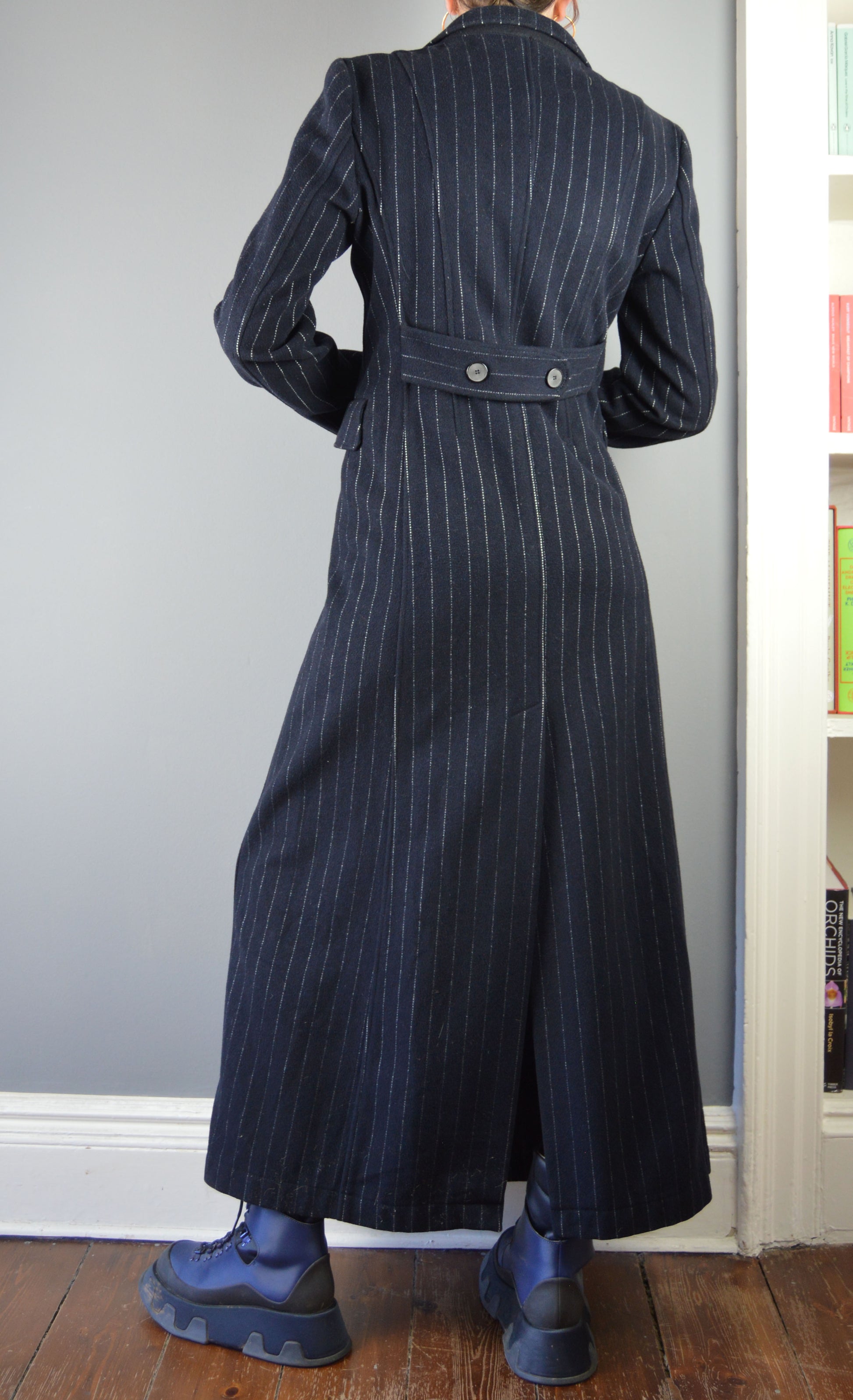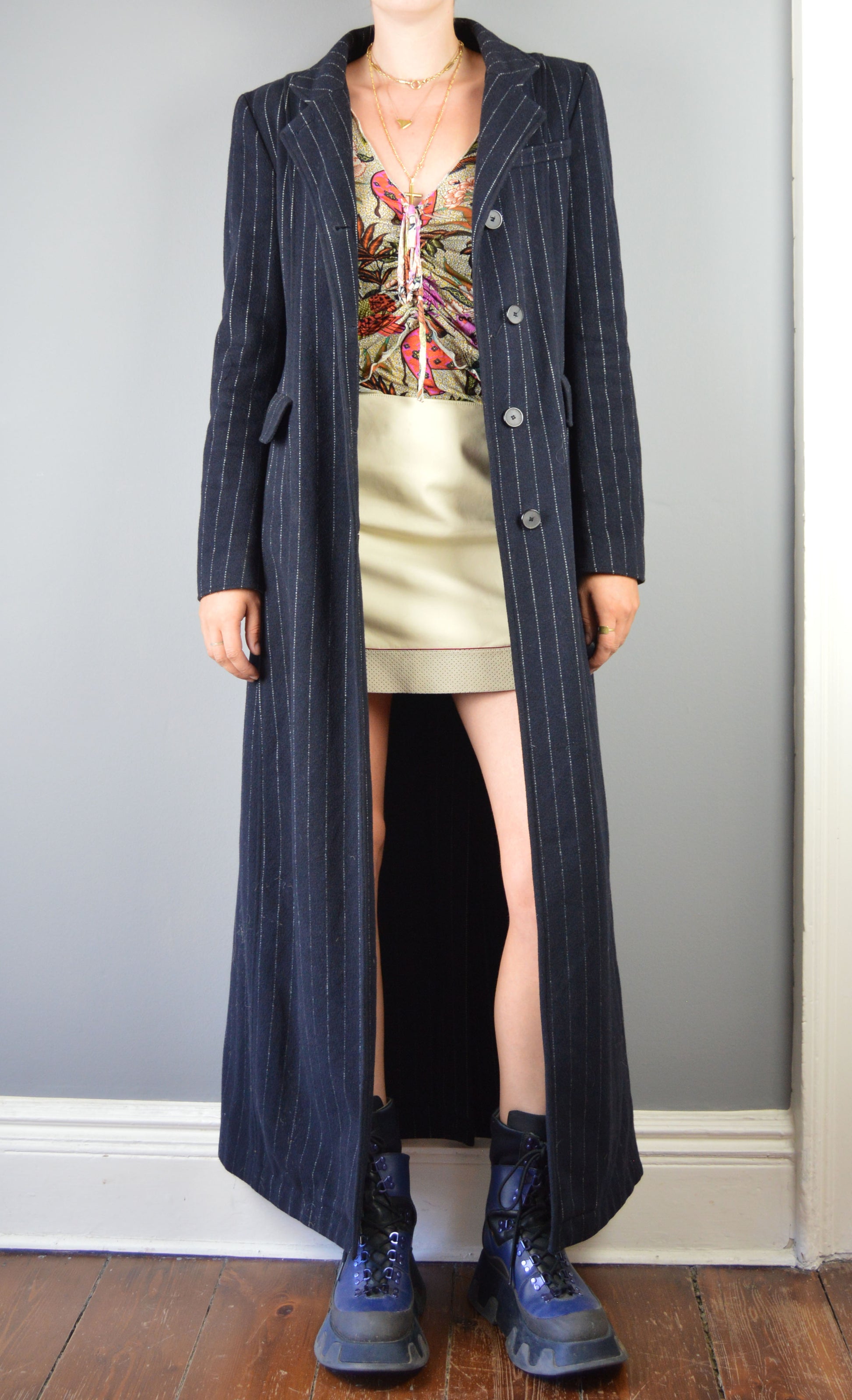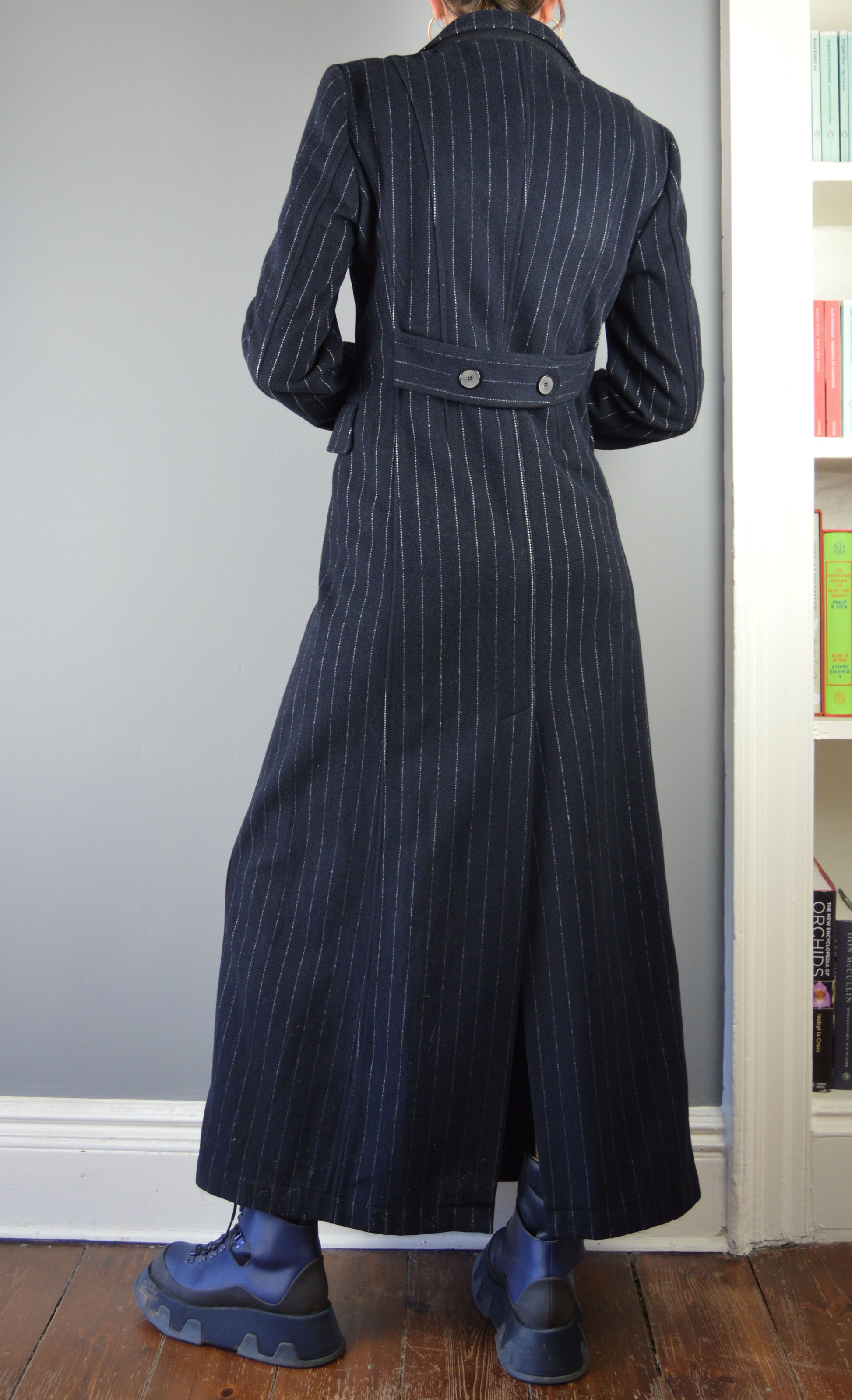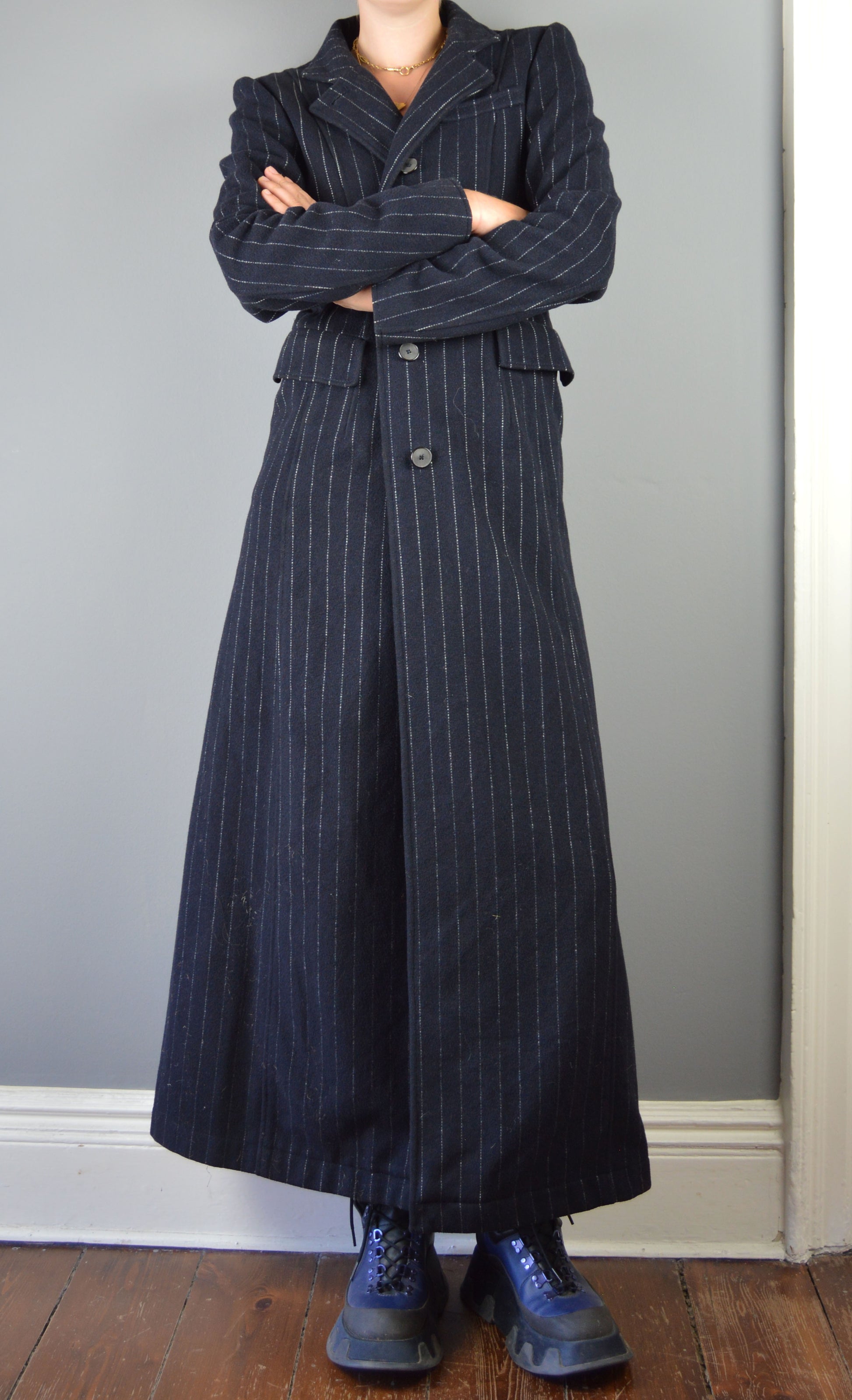 A gorgeous, pinstripe coat by Philosophy di Alberta Ferretti. The size on the label is a 10 UK and it has been pictured here on a size 6/8 UK, 5 7". In overall great condition, with the pockets still stitched up. The only flaw is the slight fading to the pinstripe detailing due to the piece being a vintage item.