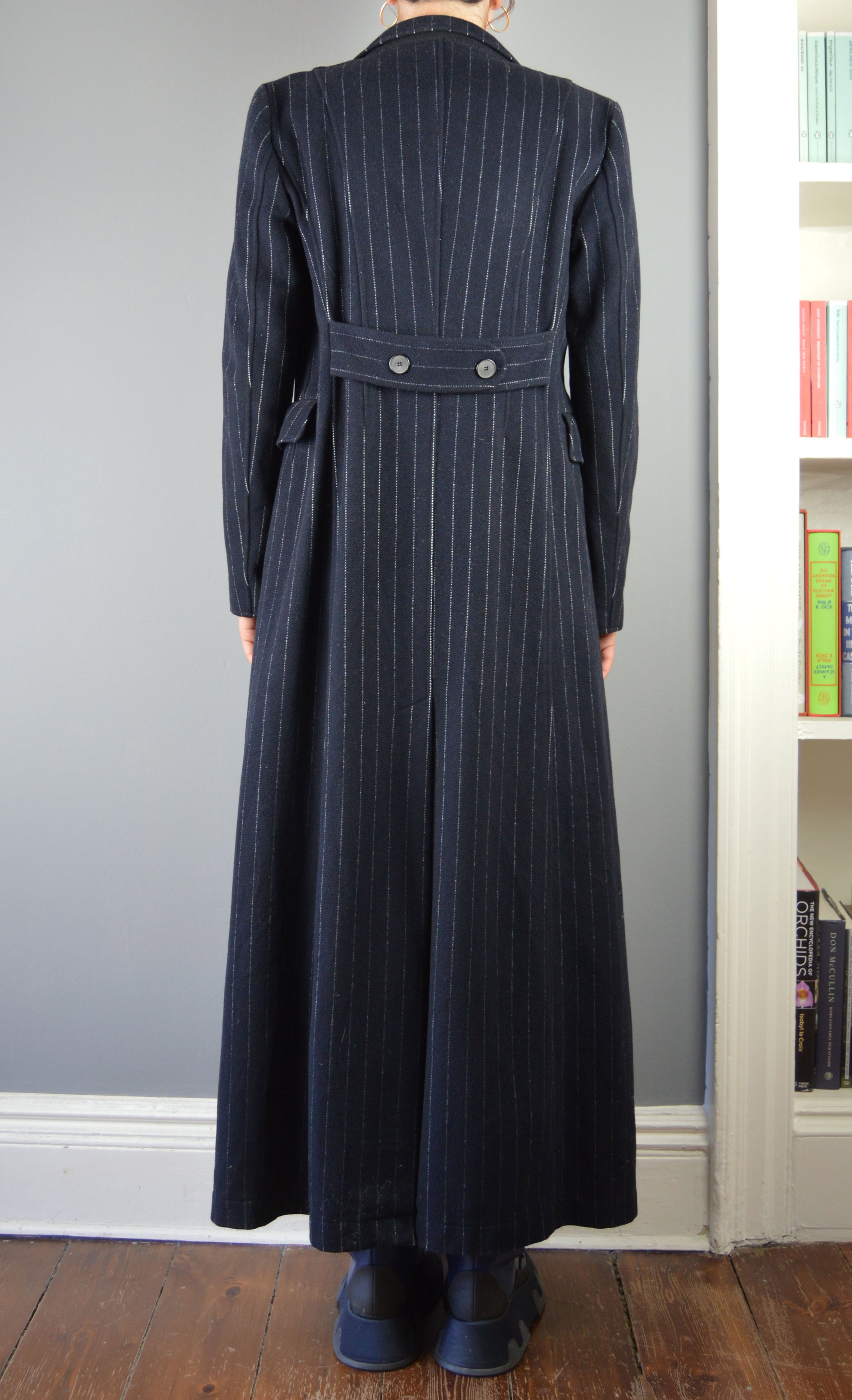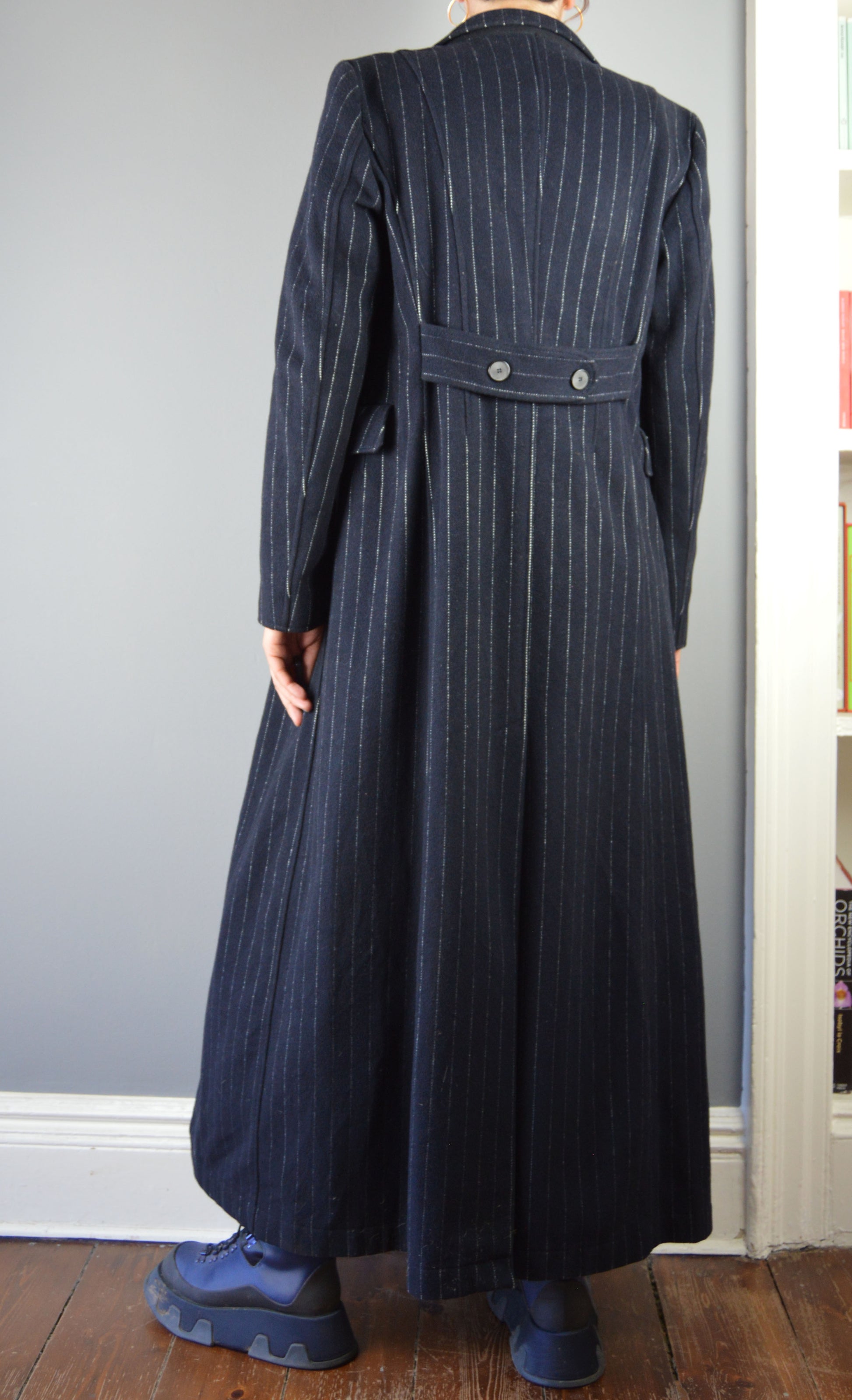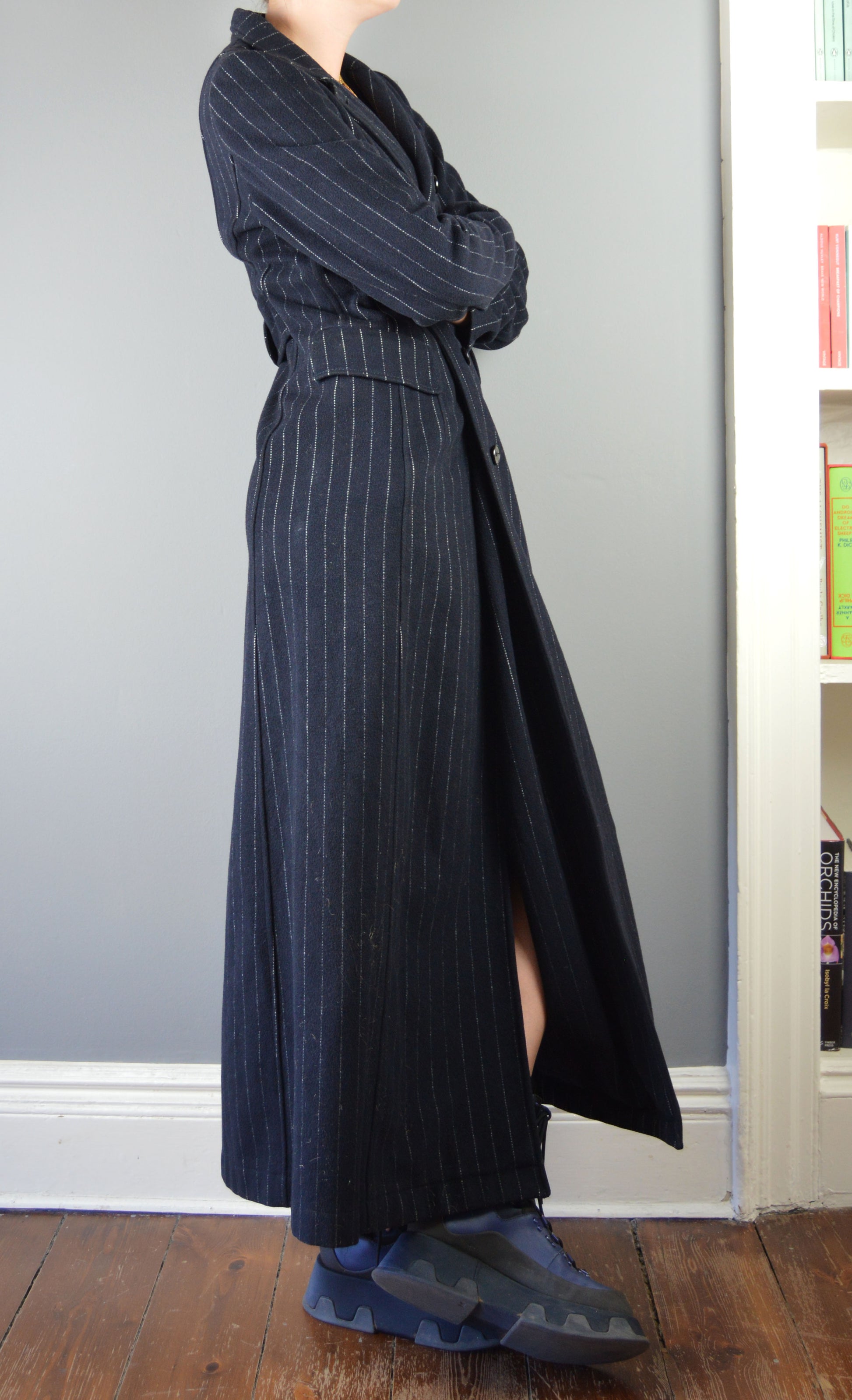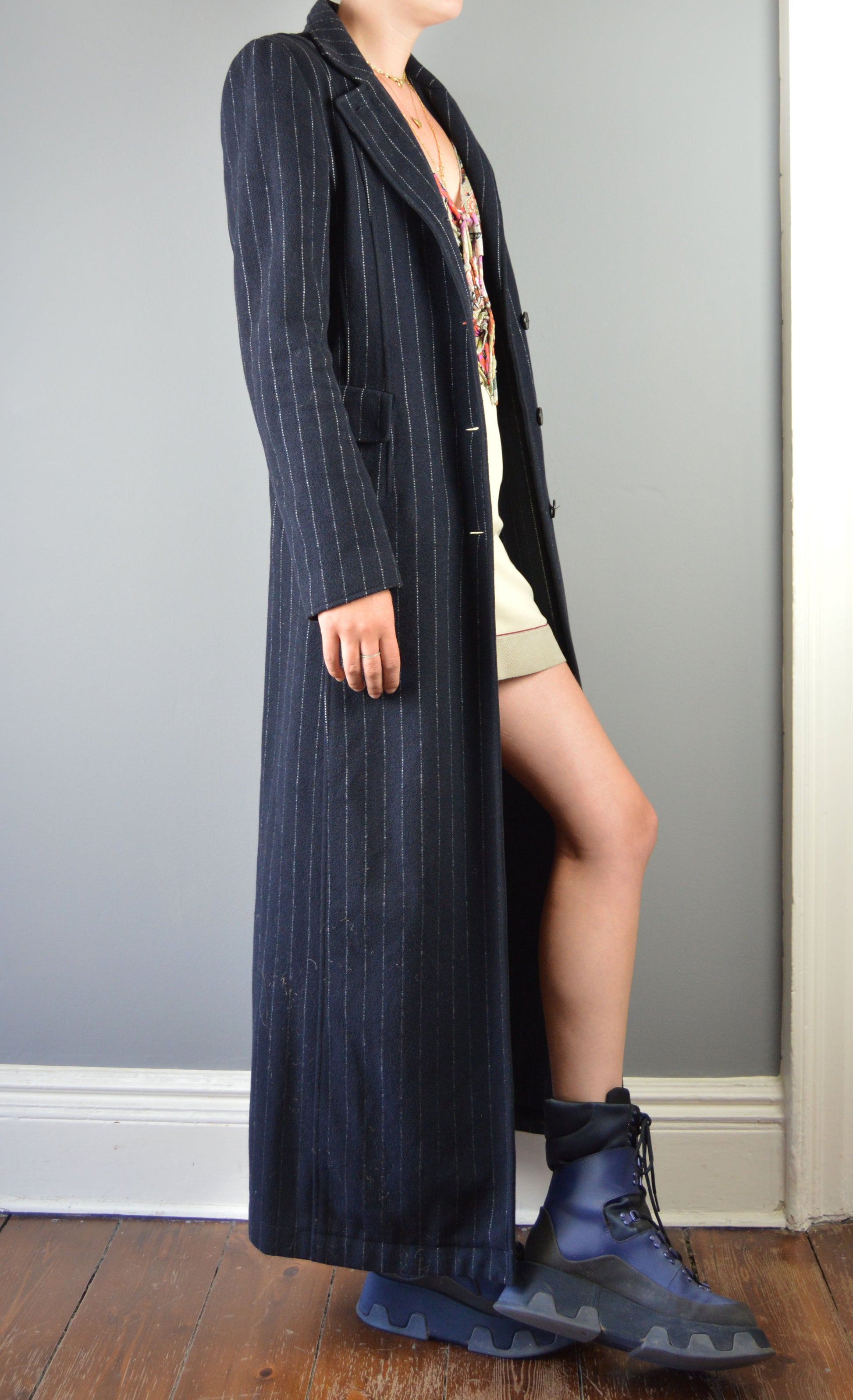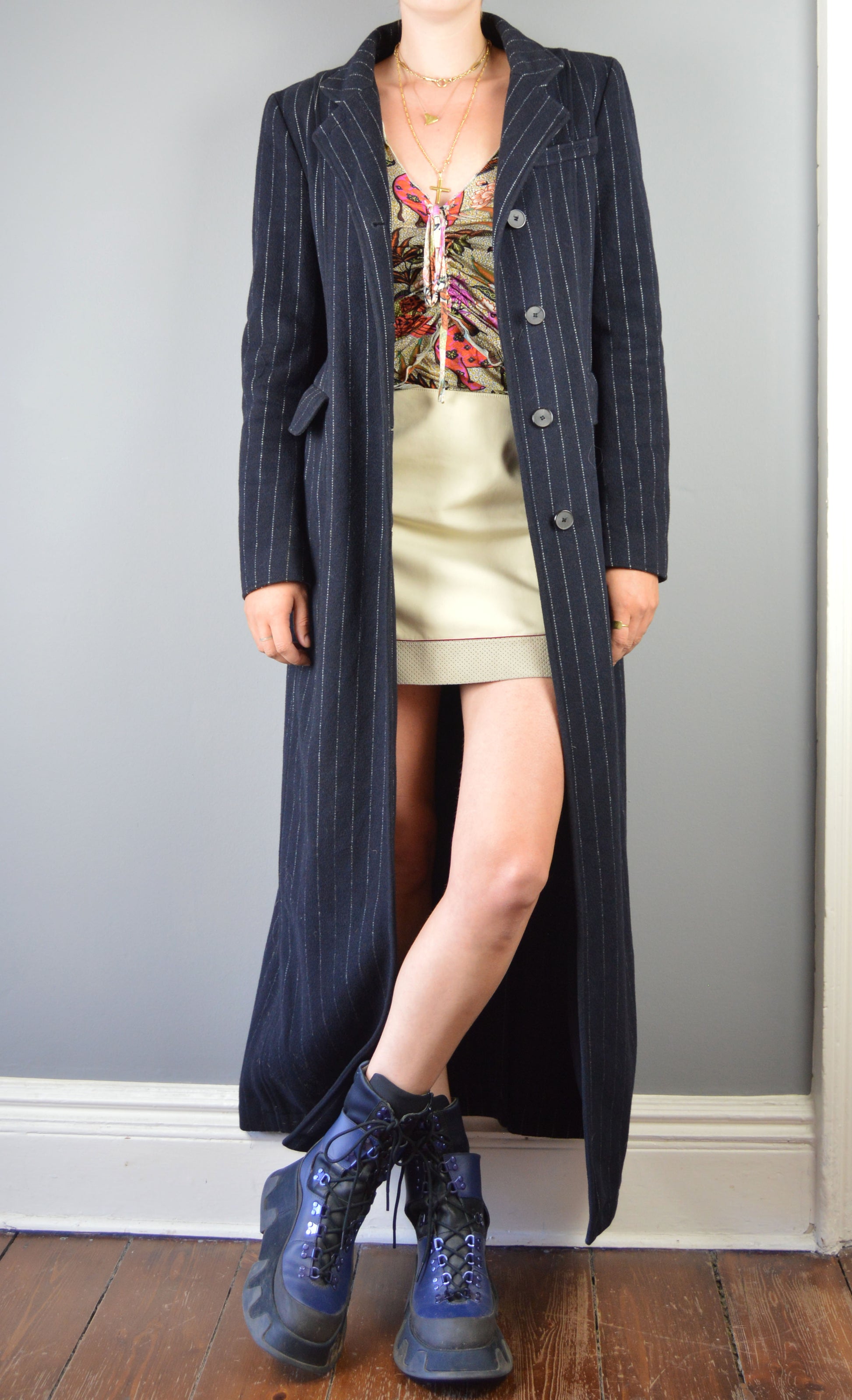 A gorgeous, pinstripe coat by Philosophy di Alberta Ferretti. The size on the label is a 10 UK and it has been pictured here on a size 6/8 UK, 5 7". In overall great condition, with the pockets still stitched up. The only flaw is the slight fading to the pinstripe detailing due to the piece being a vintage item.