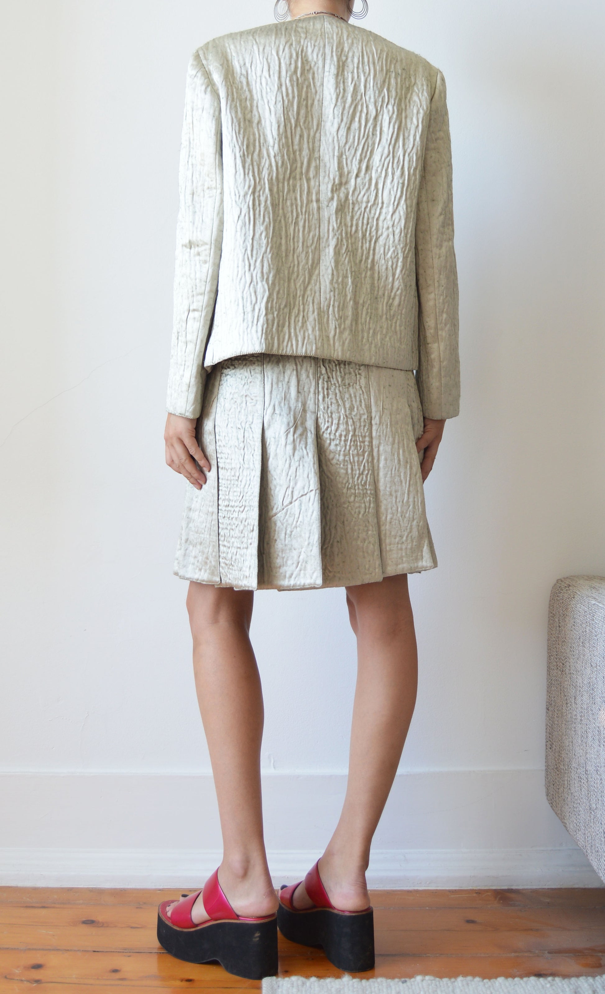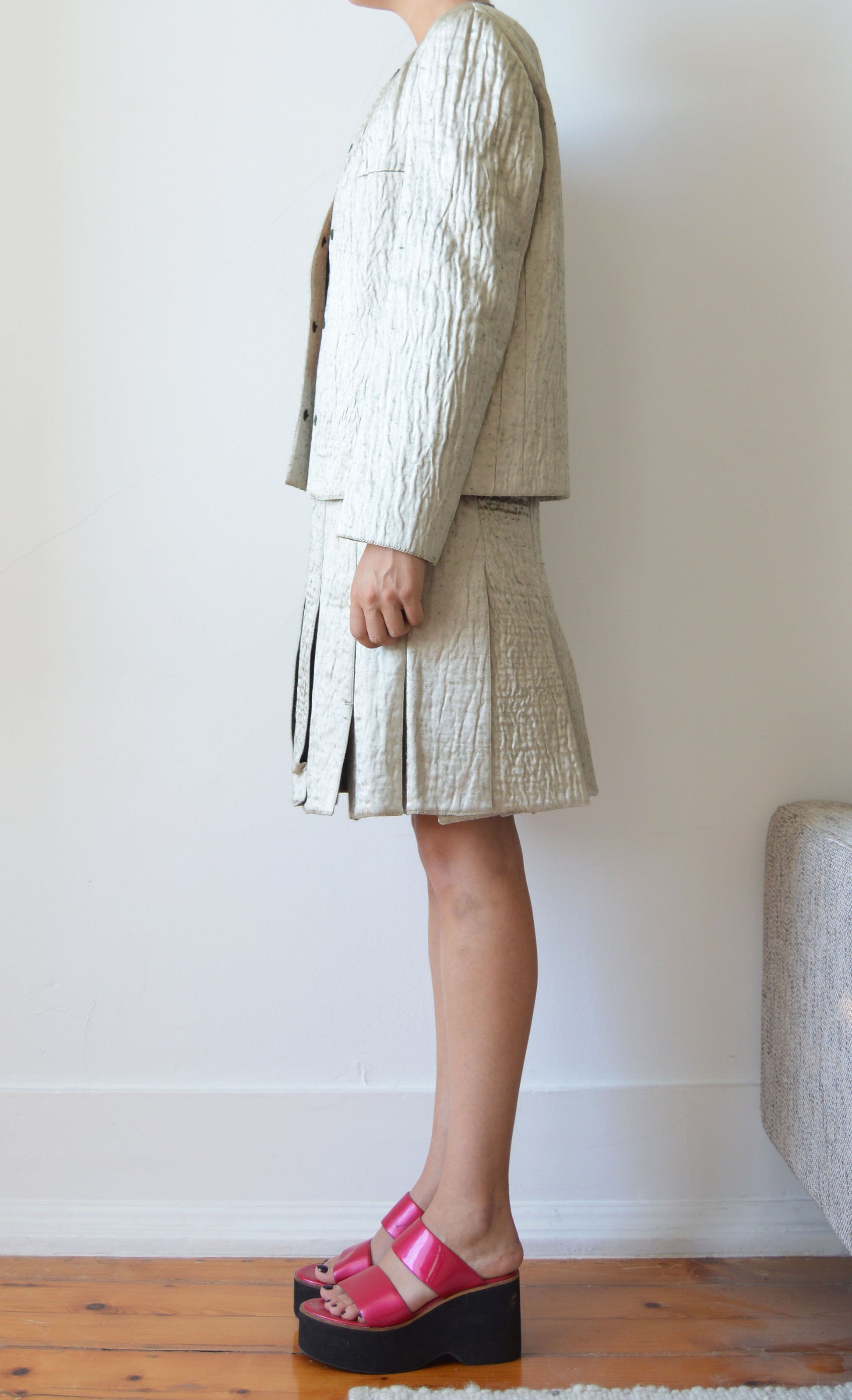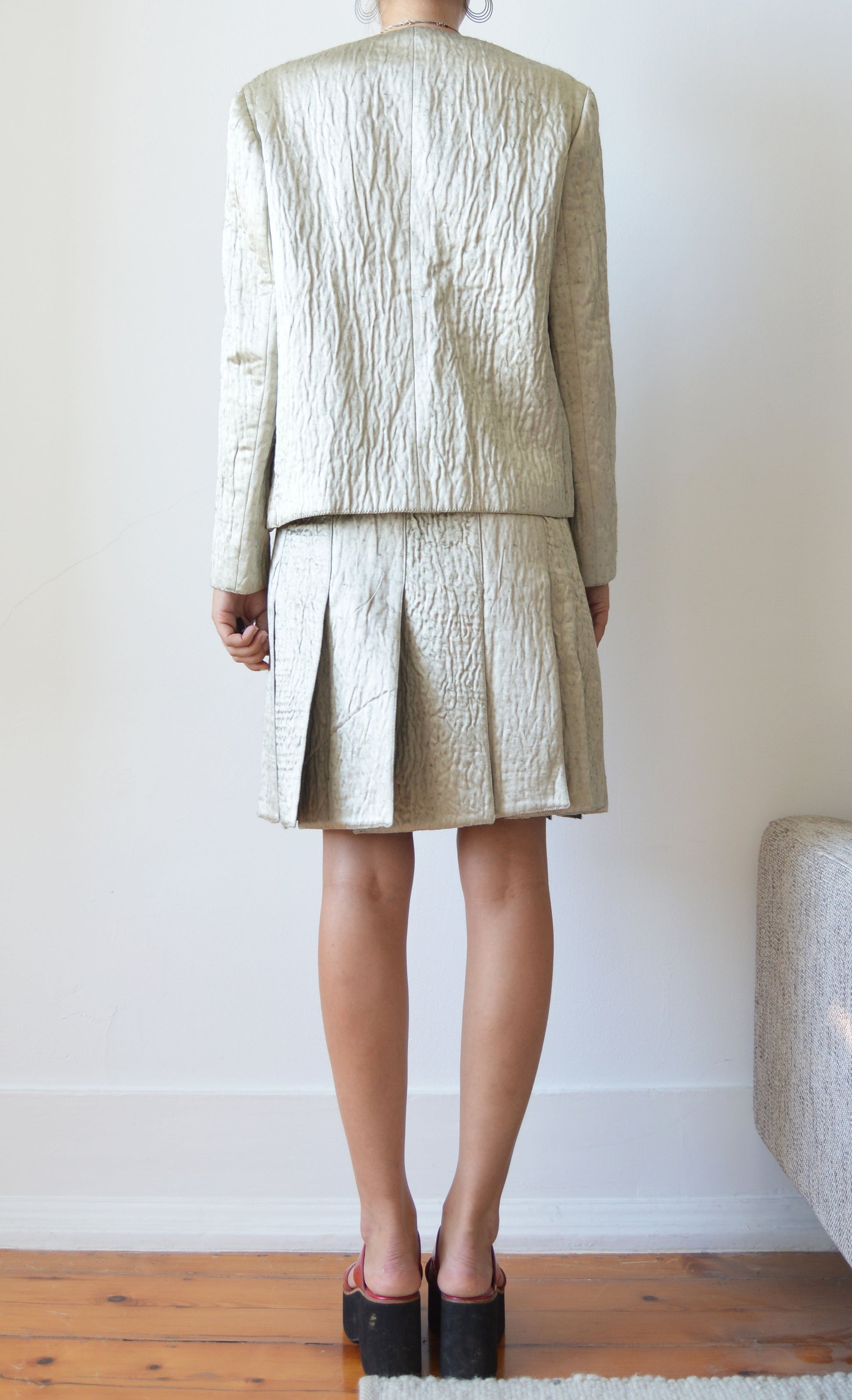 The most stunning Prada velvet suit from the F/W 1998 collection. The suit comprises of a jacket with a skirt. It is in great condition, with a label still on the jacket. There appears to be a little glue by one of the poppers, which is not noticeable at all and the Prada label on the jacket has lost one stitch, which can easily be remedied. It is a size 42 IT and has been pictured here on a 40 IT, 5 7". Please refer to the measurements below for more information.