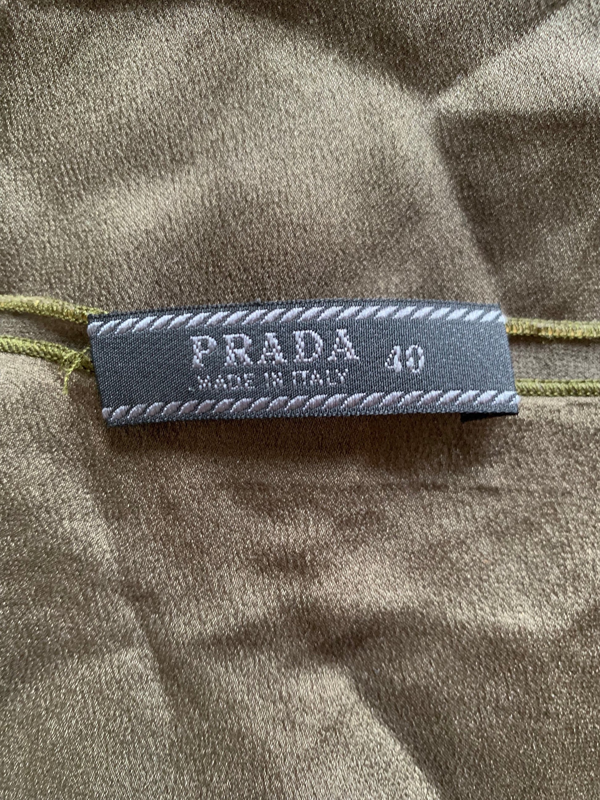 A truly stunning, silk skirt in a lovely green hue with reflective plastic detailing at the hem. The skirt is in good condition with one hanging loop being detached by it can be re-fixed and some plastic detailing has been fixed (a photo has been added). The size on the label is an IT 40 (8 UK), and the skirt has been pictured here on a size 6/8 UK, 5 7". Please refer to the measurements below for more information.