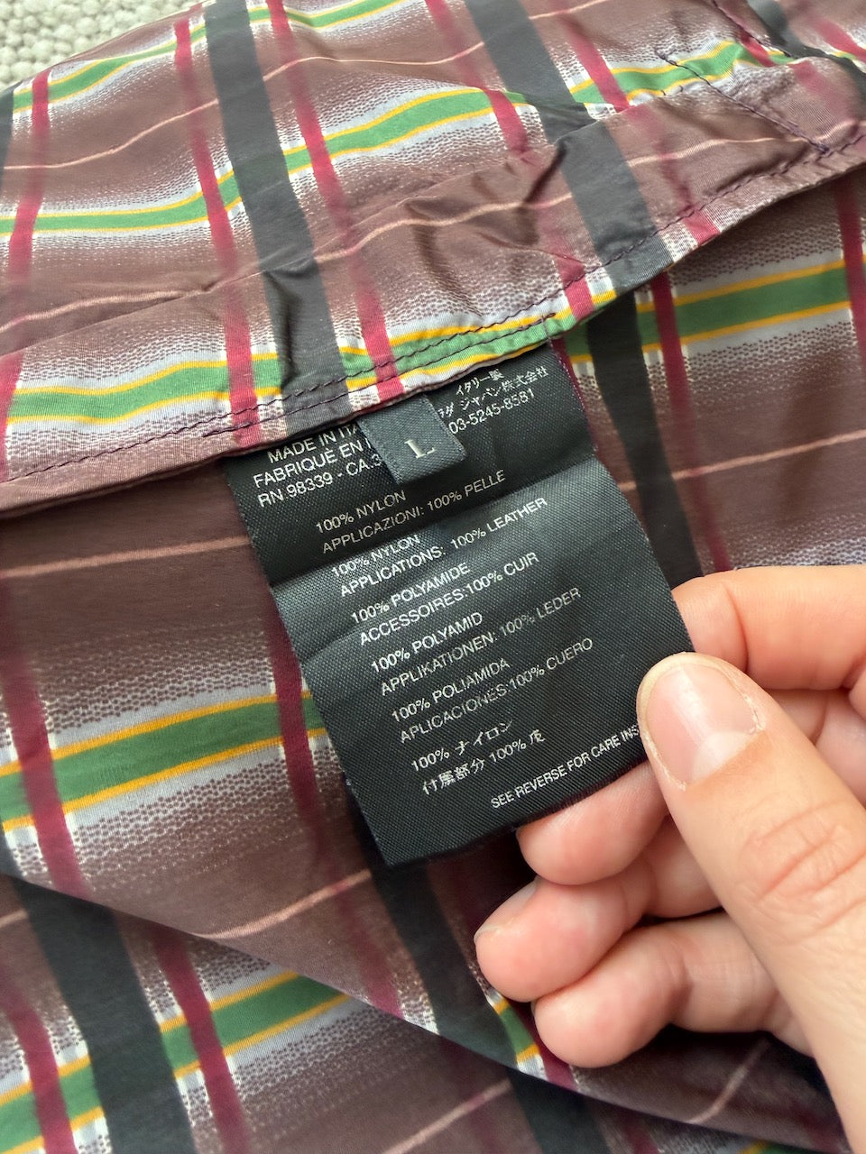 A very cool, vintage Prada S/S 2004 plaid trench coat. The size on the label is a L and it has been pictured here on a size 40 IT, 5 7". In great condition overall with just a couple of small holes near the hem on the back, which are not noticeable at all. The jacket features a zip up pocket on the back within which you can fold the jacket. There are two belt loops but unfortunately no belt.