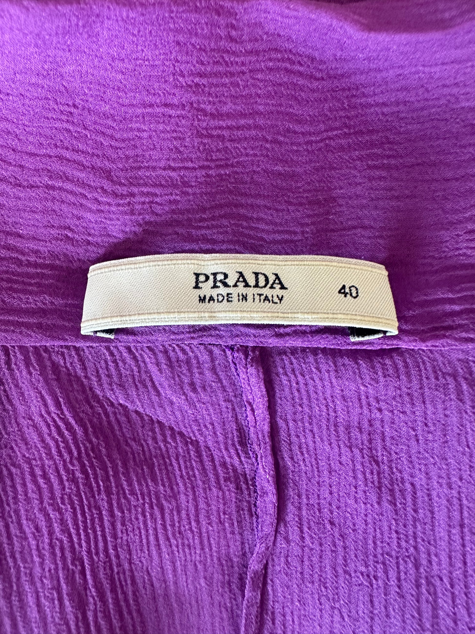 A stunning Prada purple silk blouse with gorgeous layered sleeves. The size on the label is a 40 IT and it has been pictured here on a size 40 IT, 5 7" but please refer to the measurements below for further information. The blouse is in great condition apart from two barely perceptible snags that have been pictured.