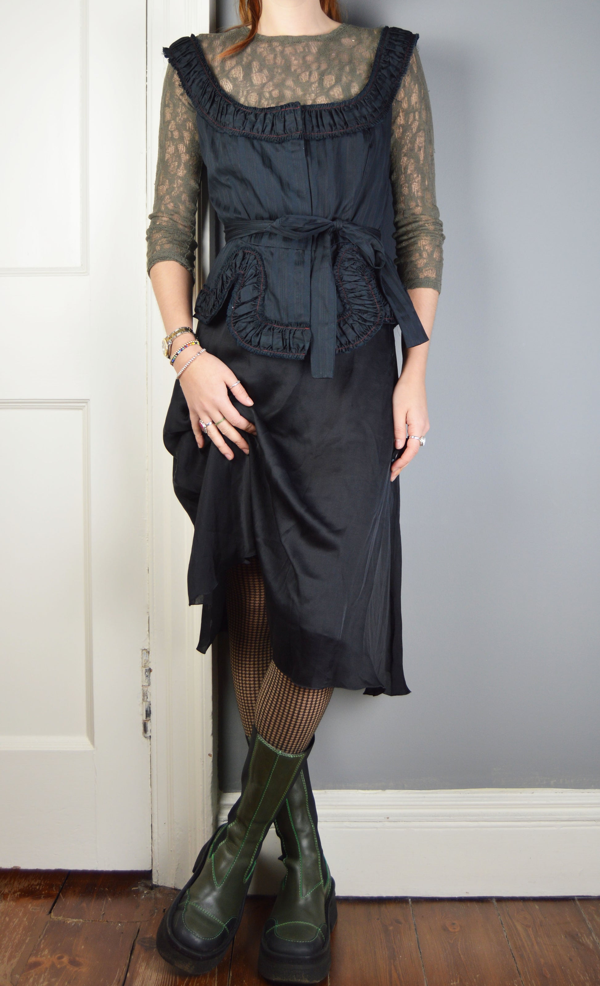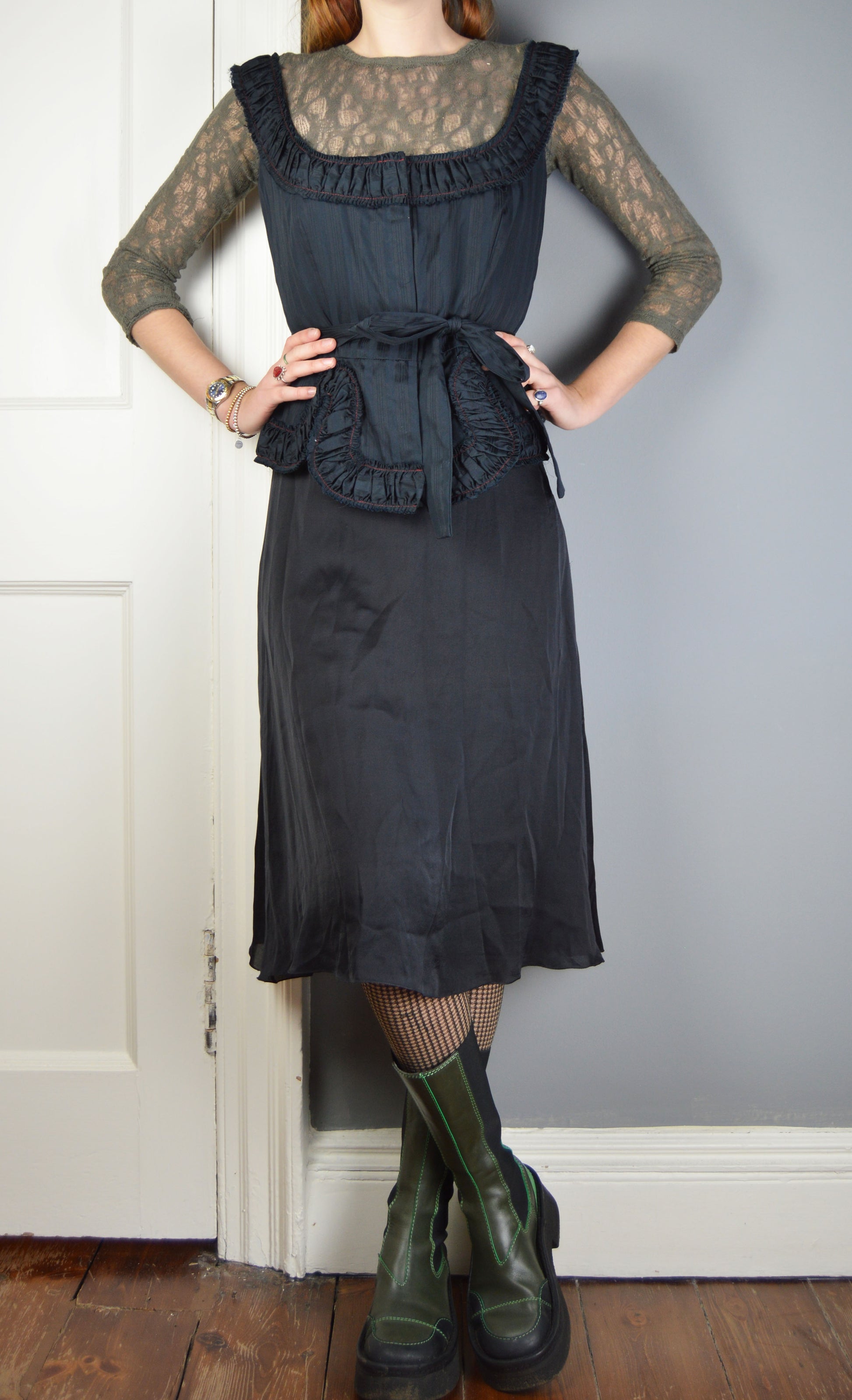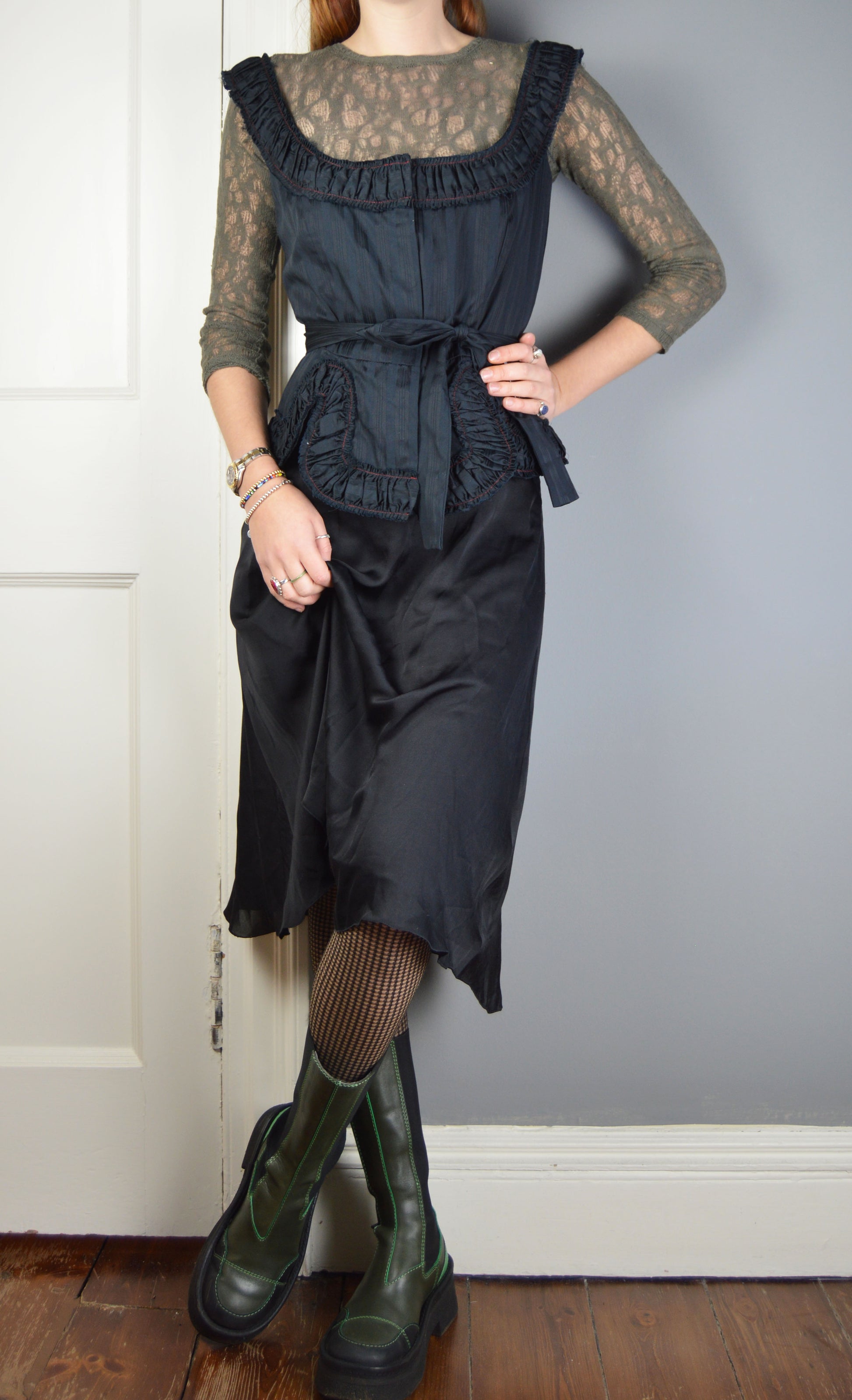 An absolutely gorgeous corset/bustier from Vivienne Westwood's Anglomania line. The size on the label is a 42 IT (10 UK) and it has been pictured here on a size 6/8 UK, 5 7". Please refer to the measurements below for more information. The item is in good condition, but please be aware that the frilling has loose threads on it, which I believe to be part of the design but please refer to the last image for a closer look.